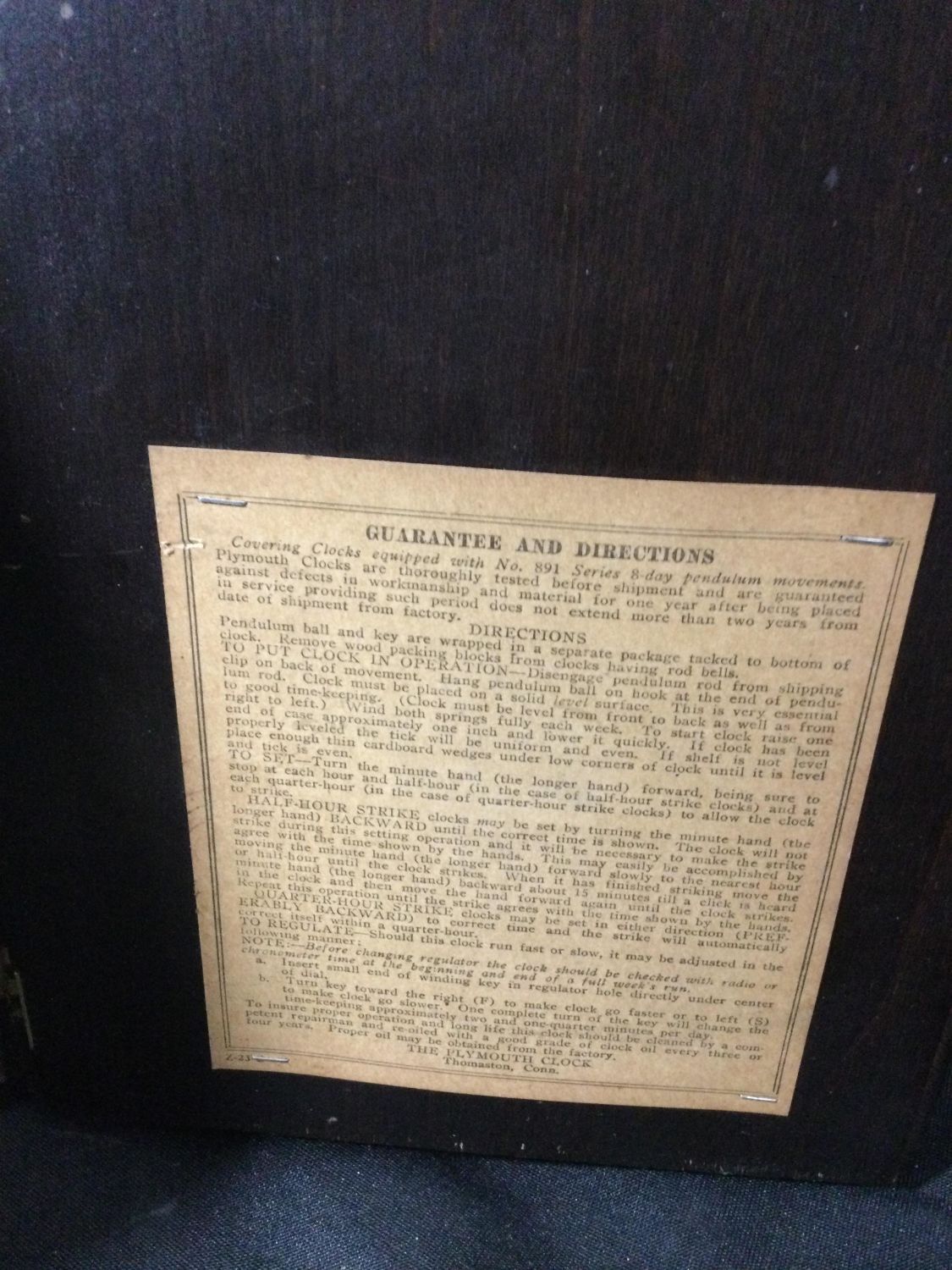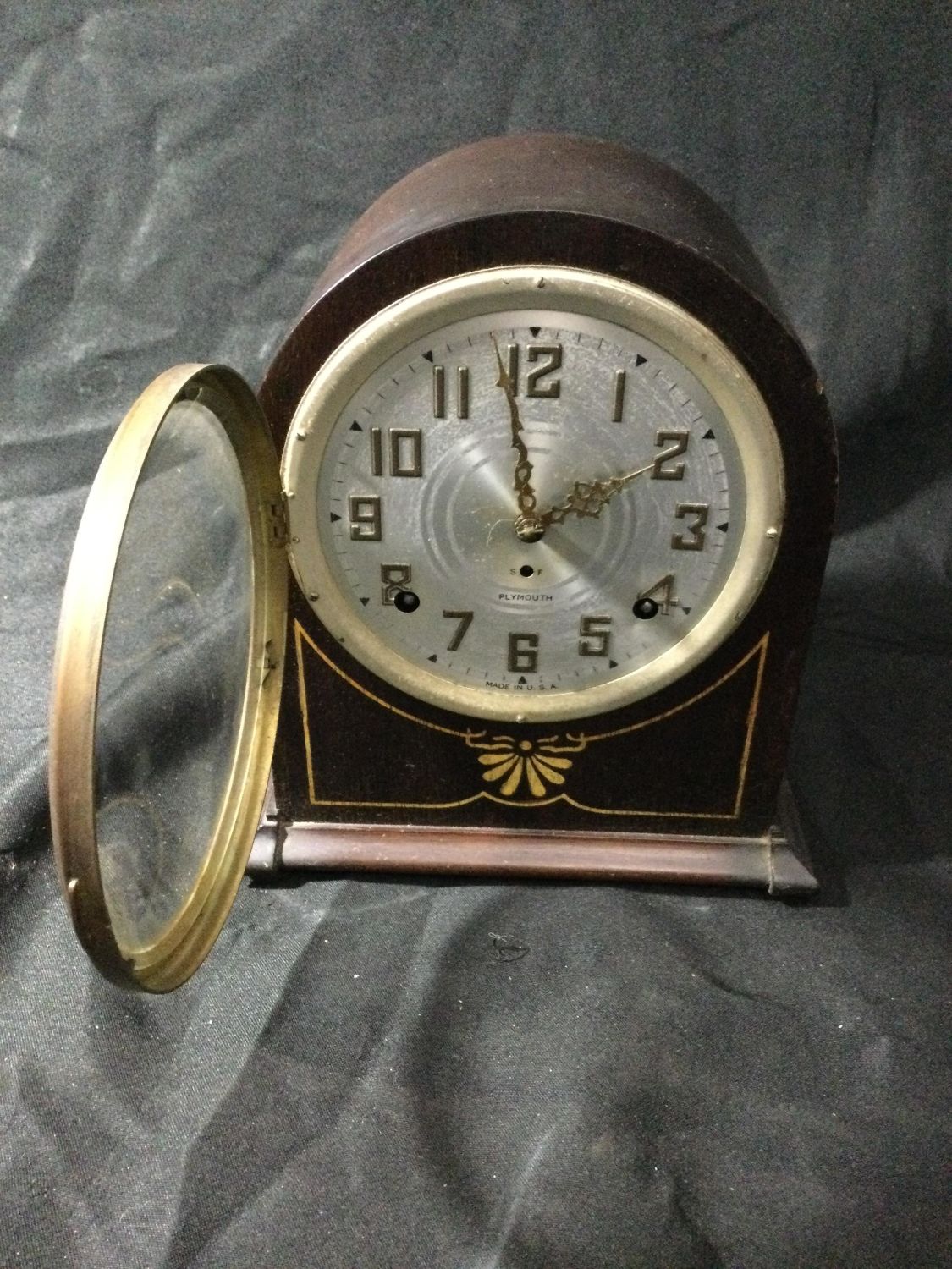 Lot 125: Plymouth Wood & Brass Mantle Clock