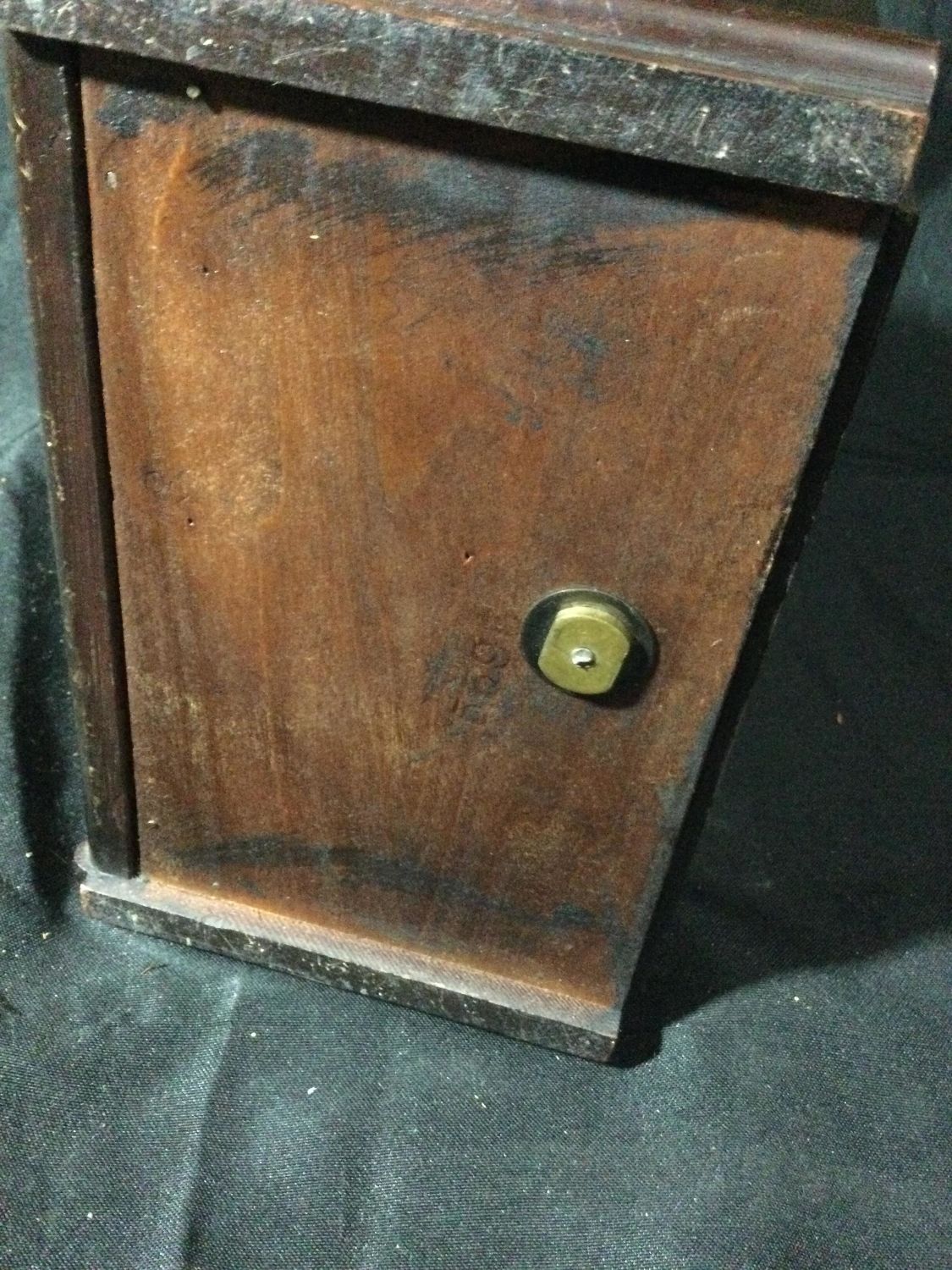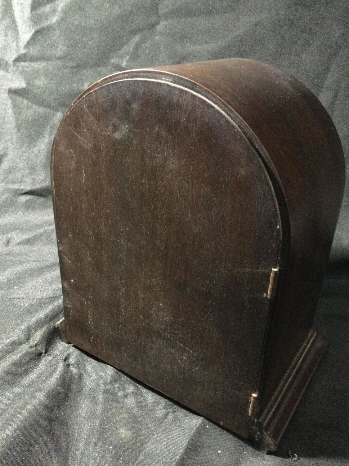 Measures 9 1/2 inches tall 8 1/2 inches wide and 5 inches deep access door in the back need some TLC