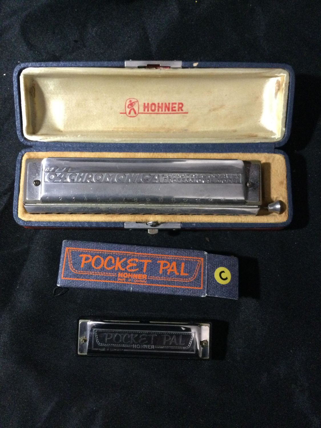 the 64 CHROMONIC a professional model by M.hohner In Germany and a pocket pal by HOHner,CHROMONICA in case other in box