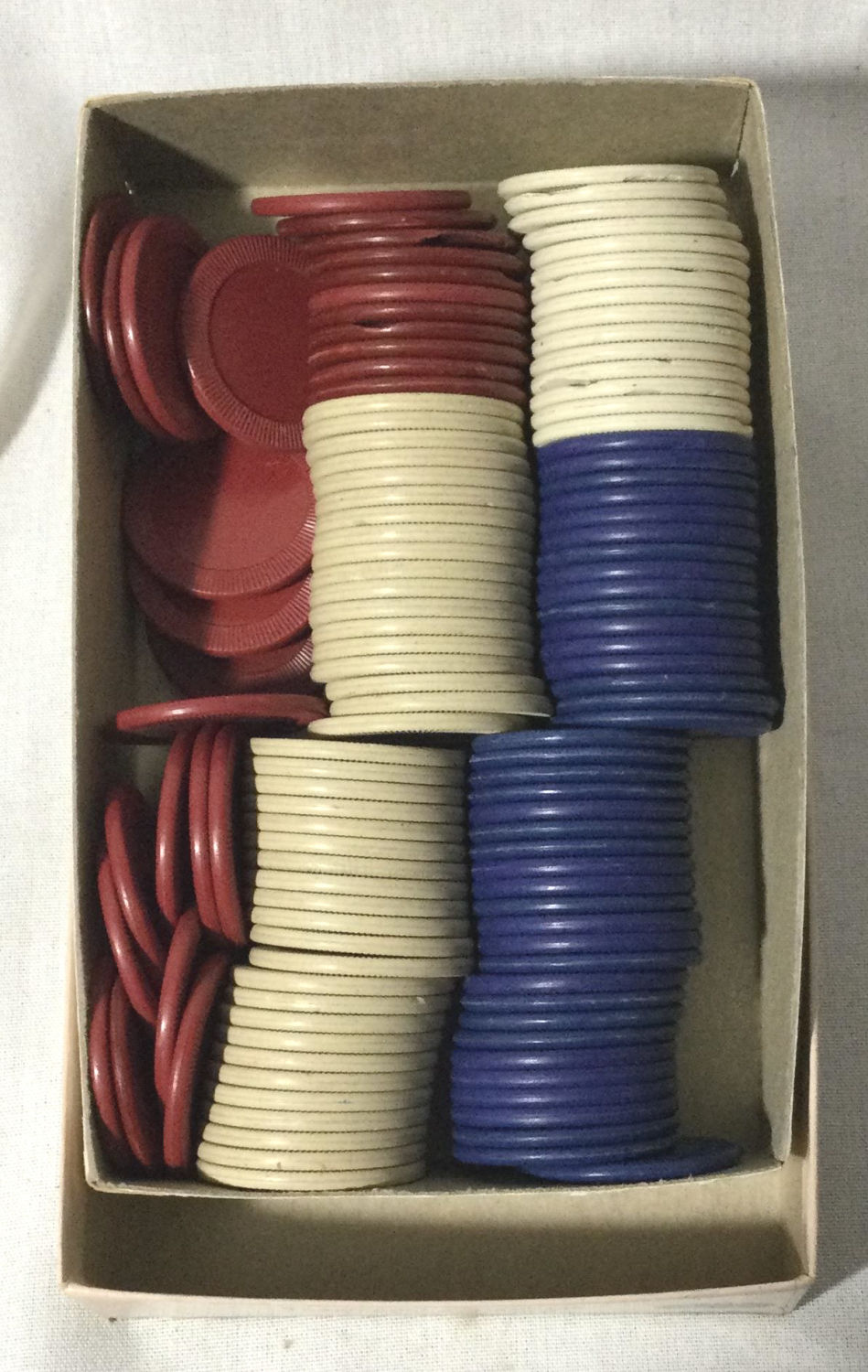 Lot 15: Vintage Poker Chips- red white blue and off-white