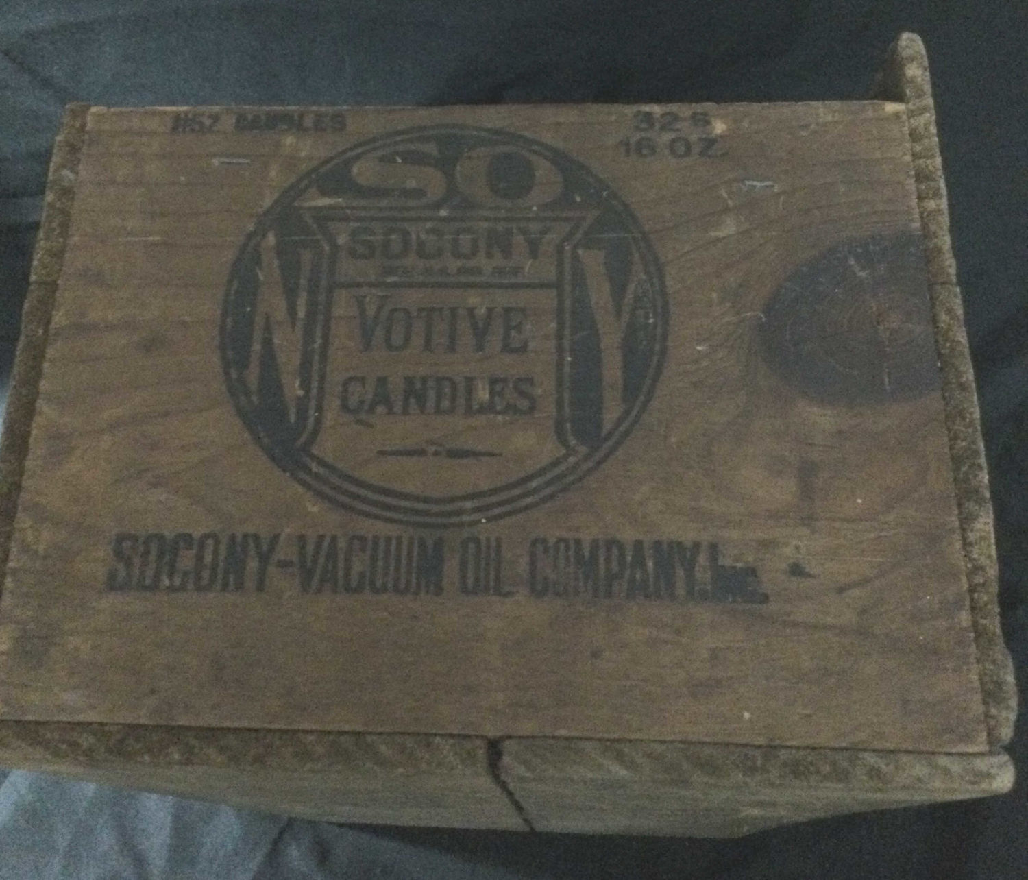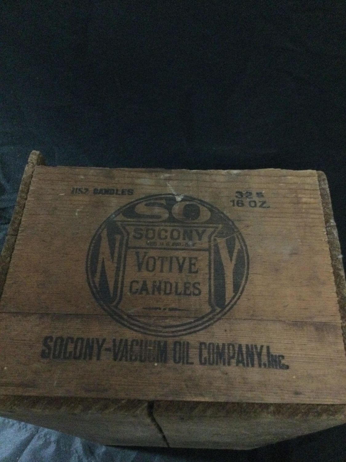 with graphics from the SD Cony vacuum oil company it held votive candles measures 21 1/2 x 9 x 11 inches