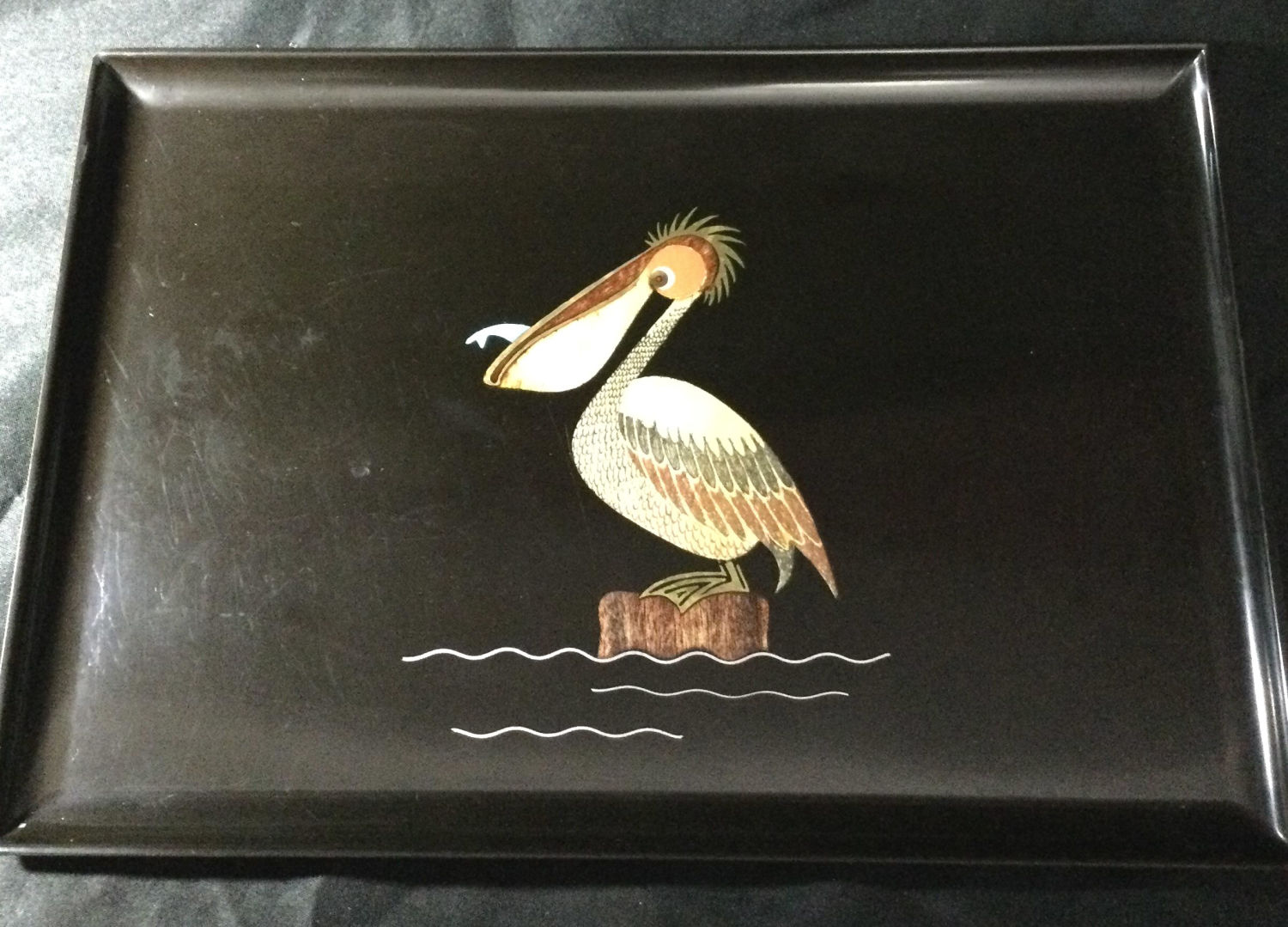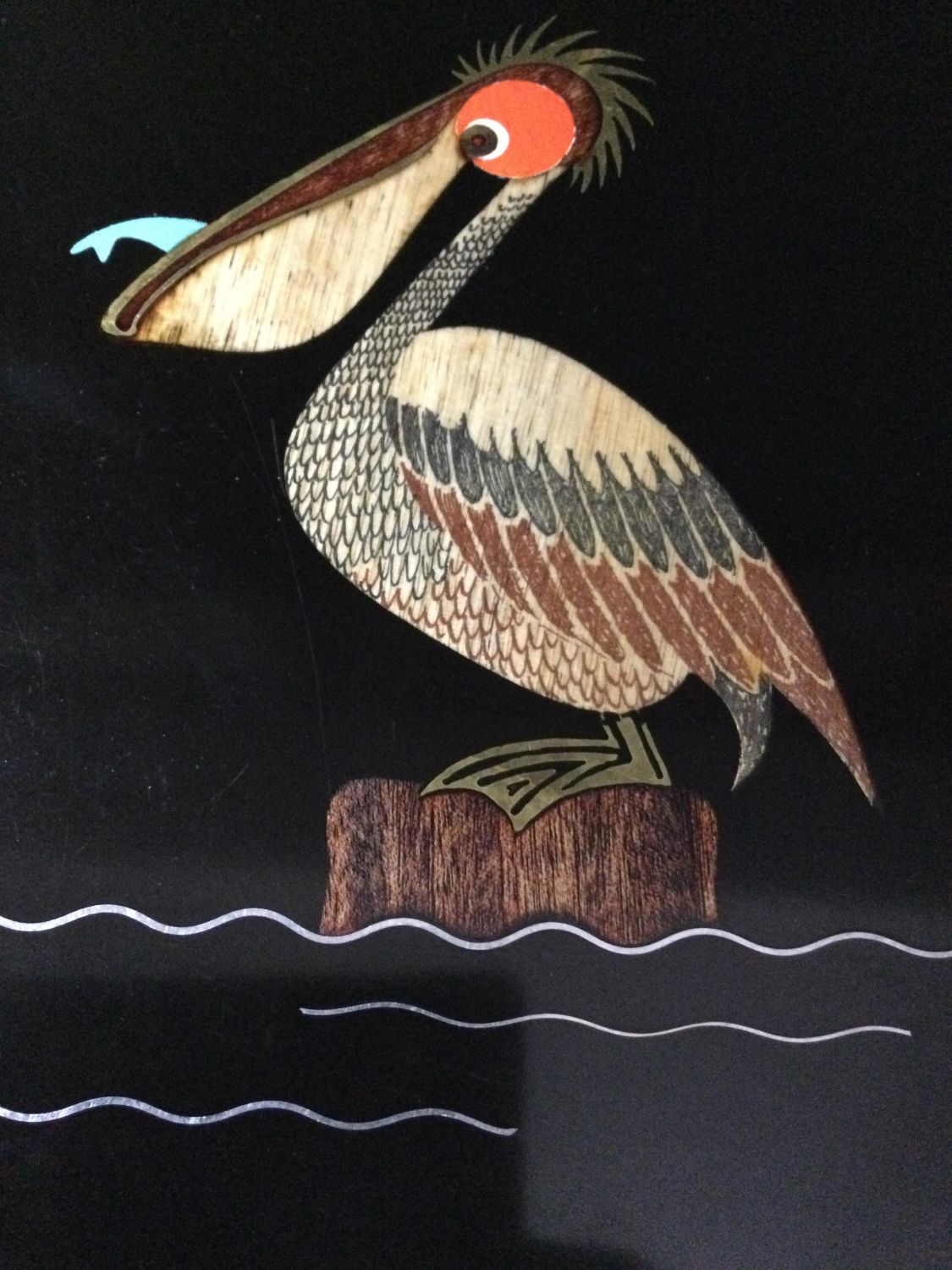 pelican eating fish measures 18 x 12 1/2 very sharp looking