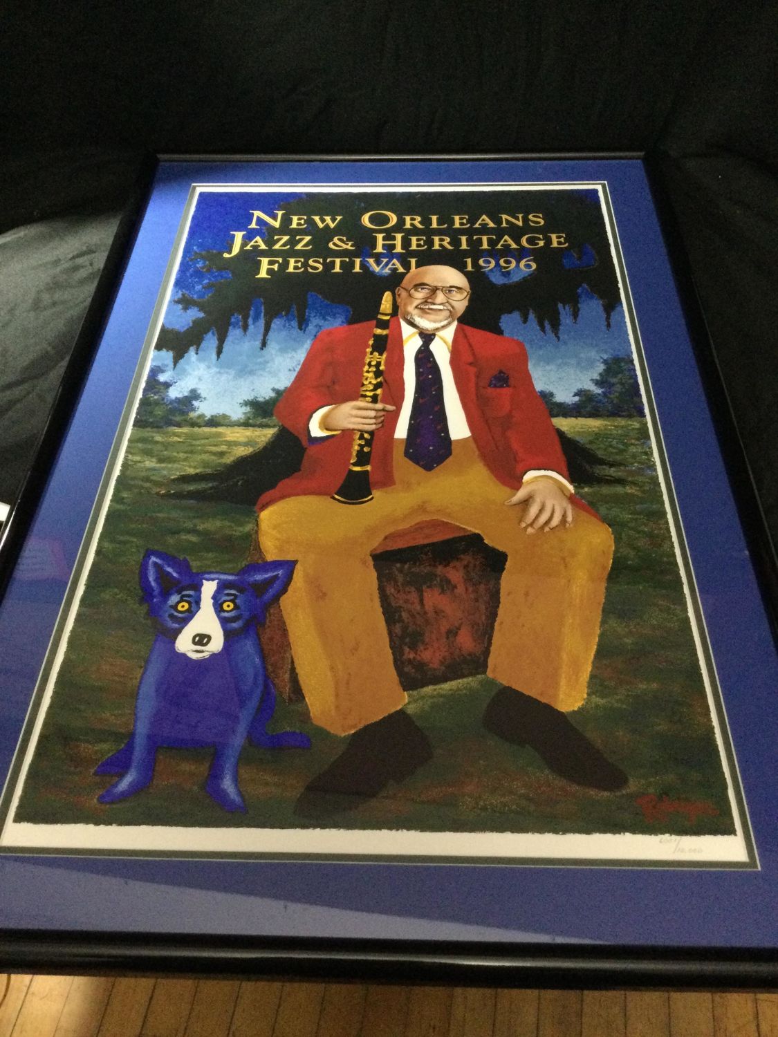 Jazz & heritage festival 1996 plastic frame with glass measures 26 3/4 40 1/2 inches