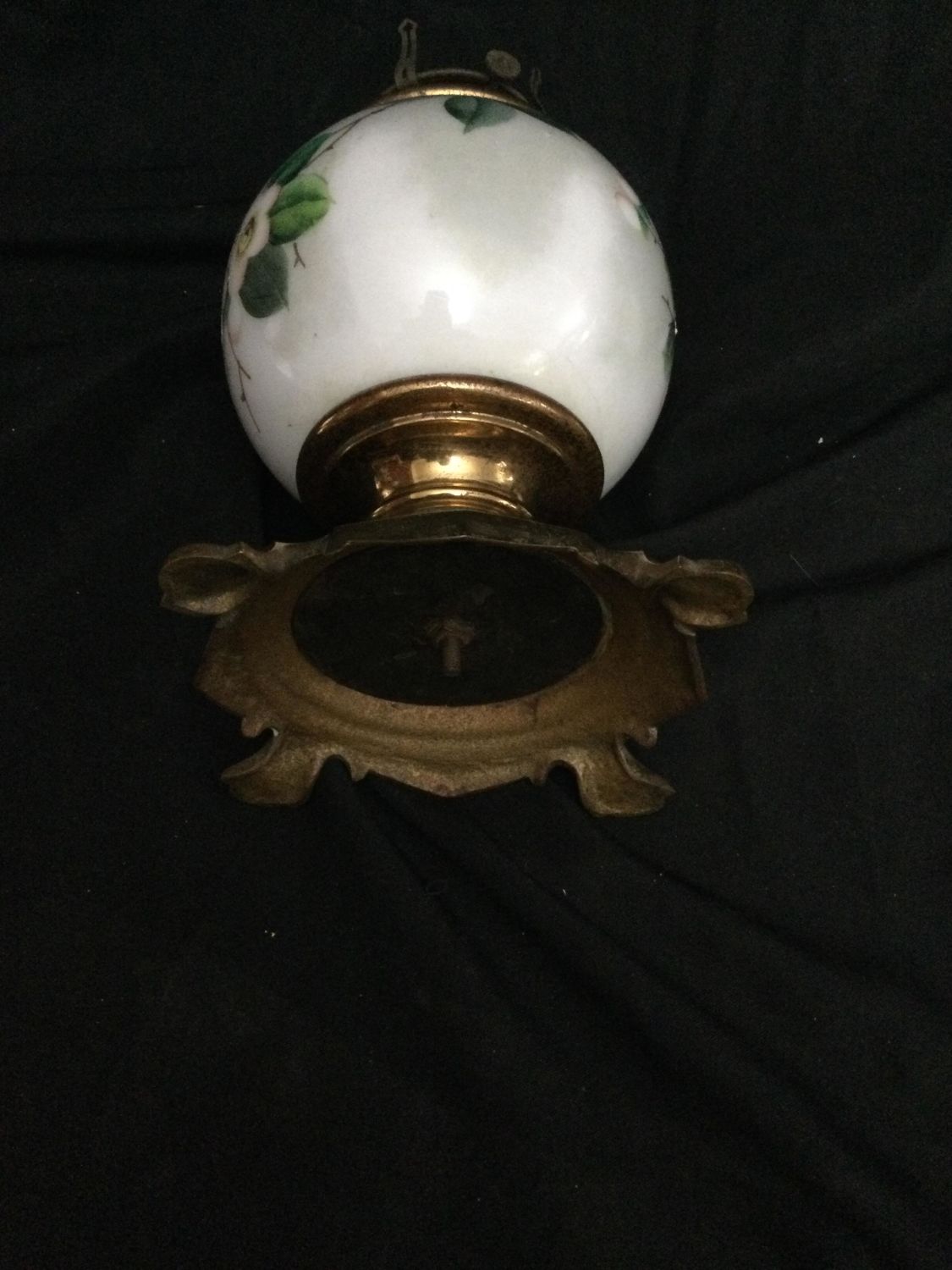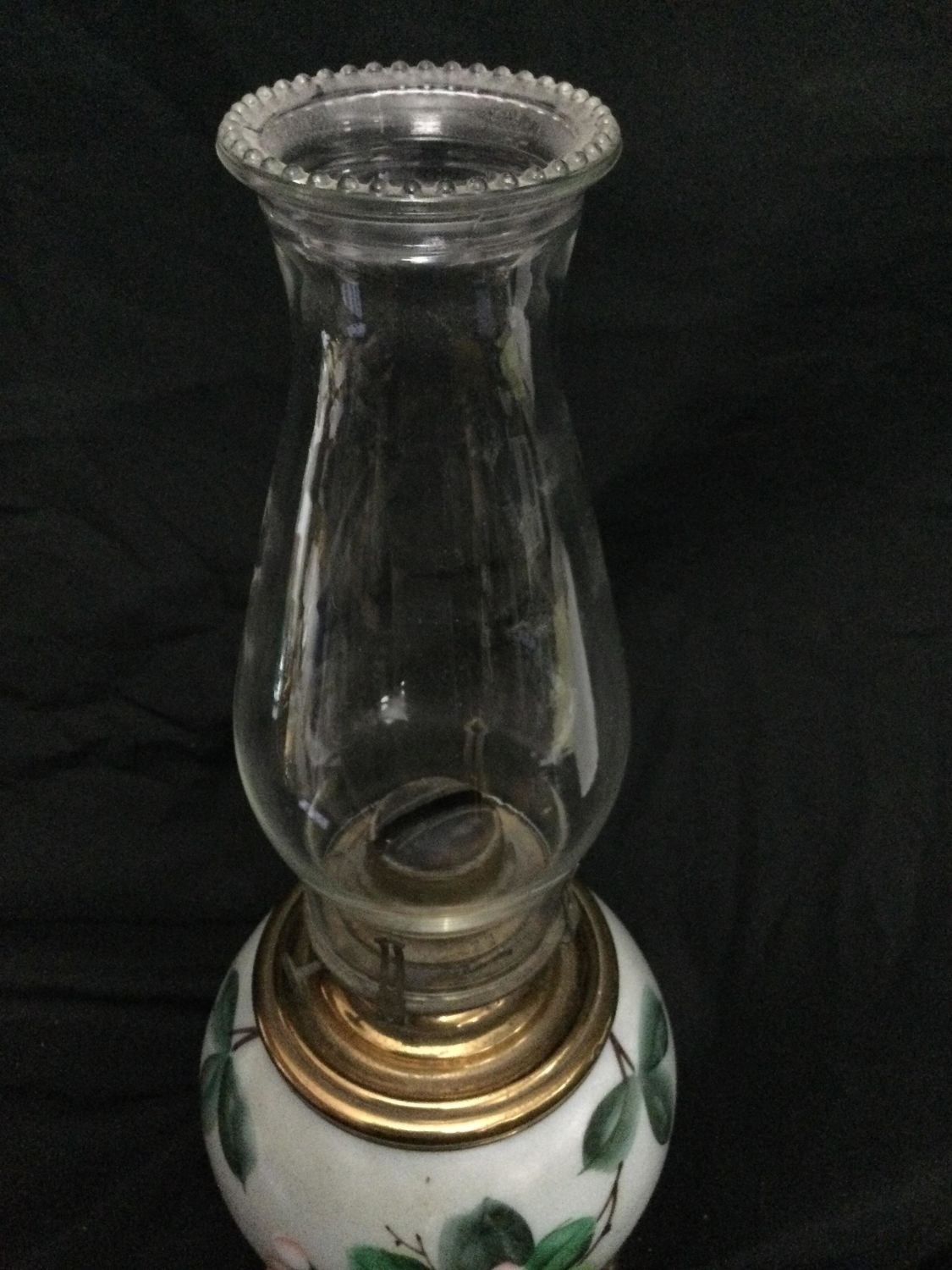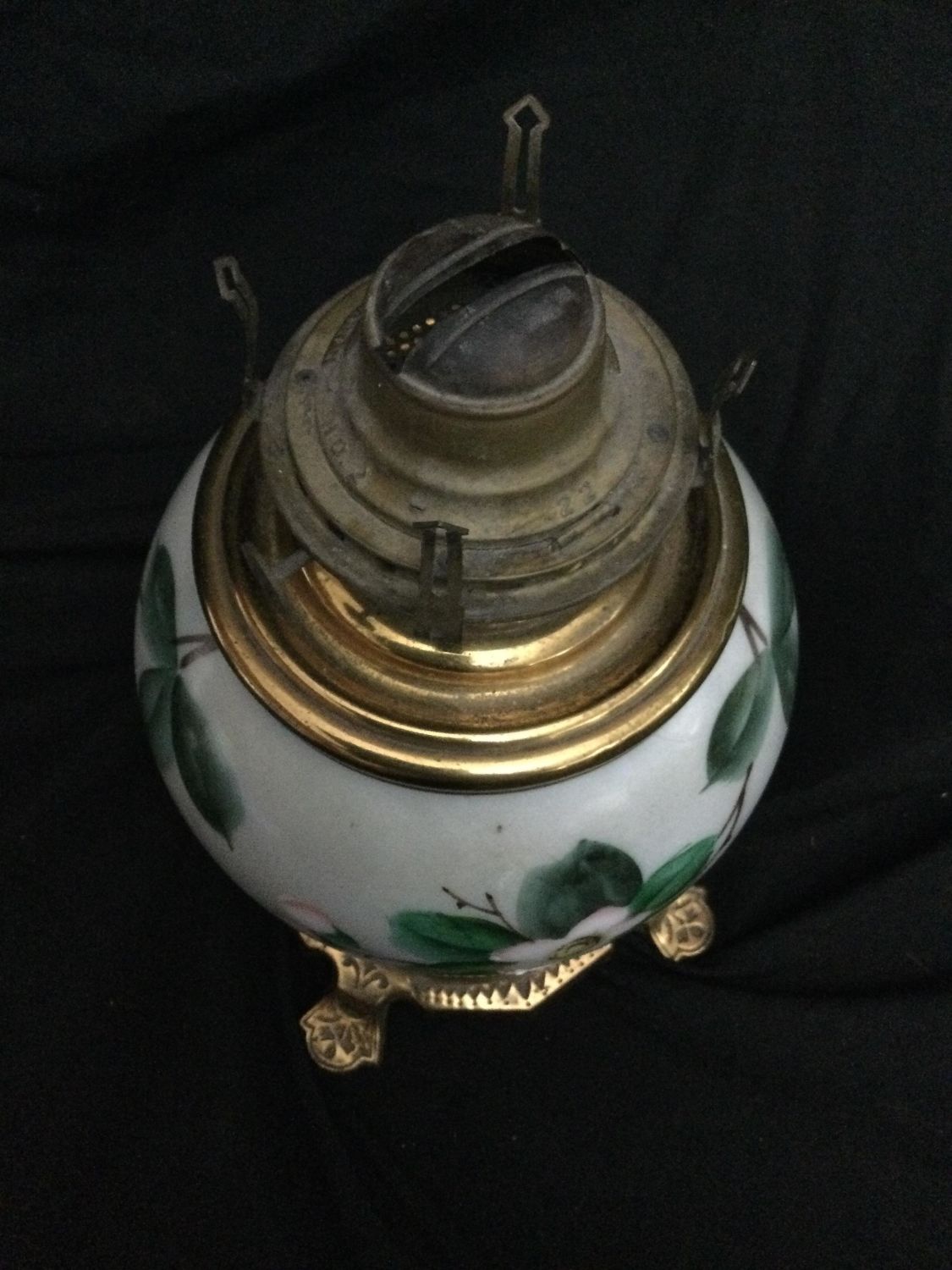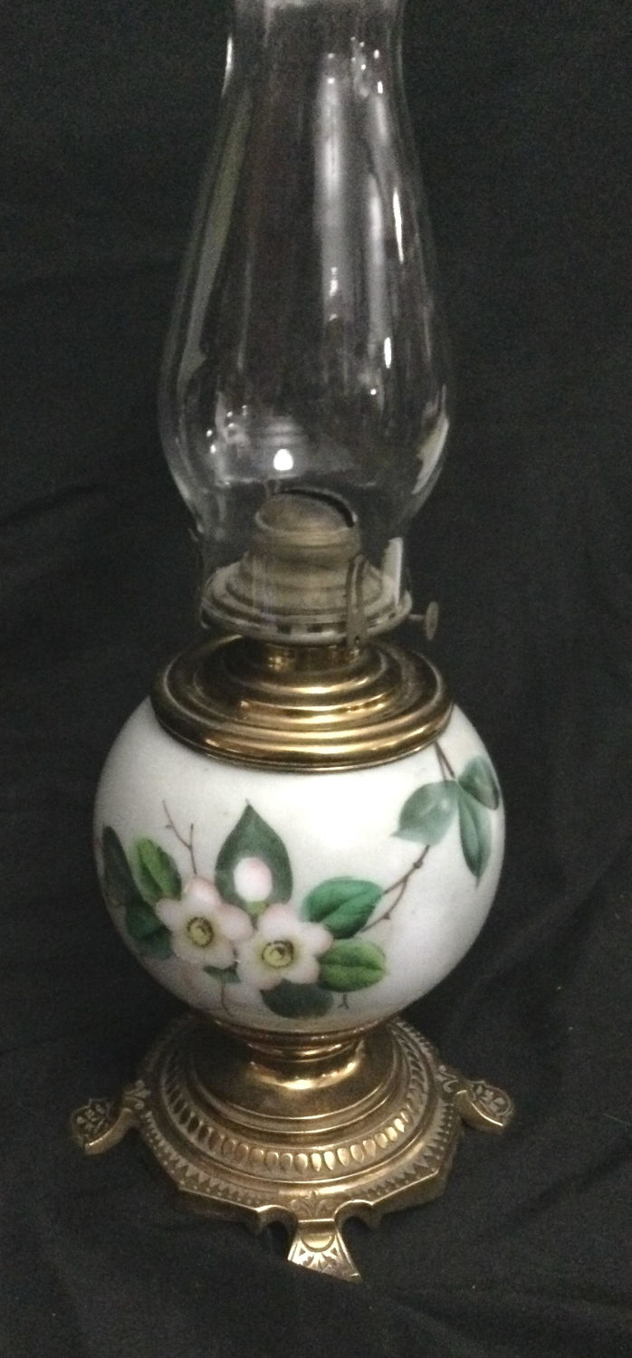 Lot 184: Vintage Hand Painted Brass and Glass Oil Lamp