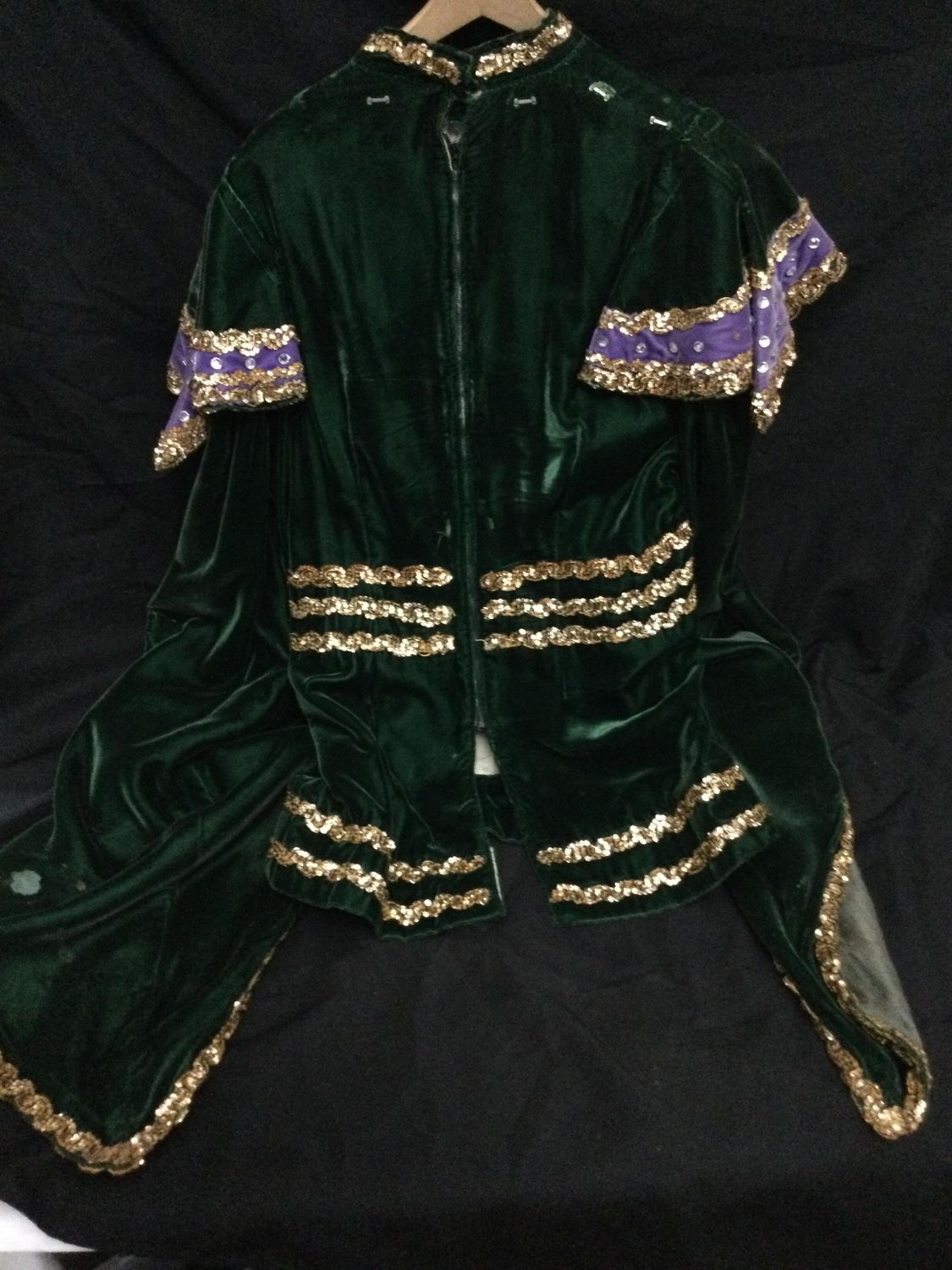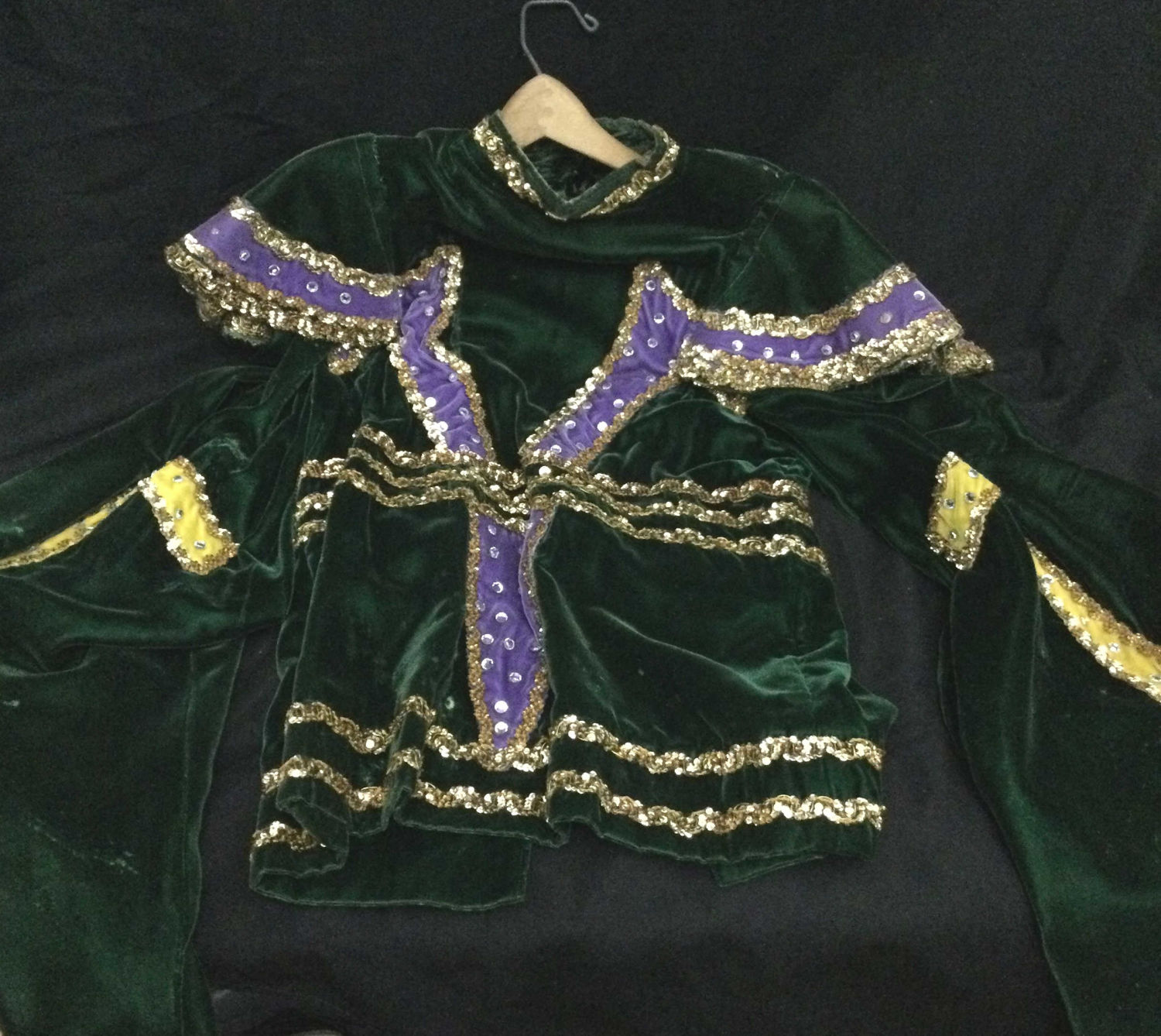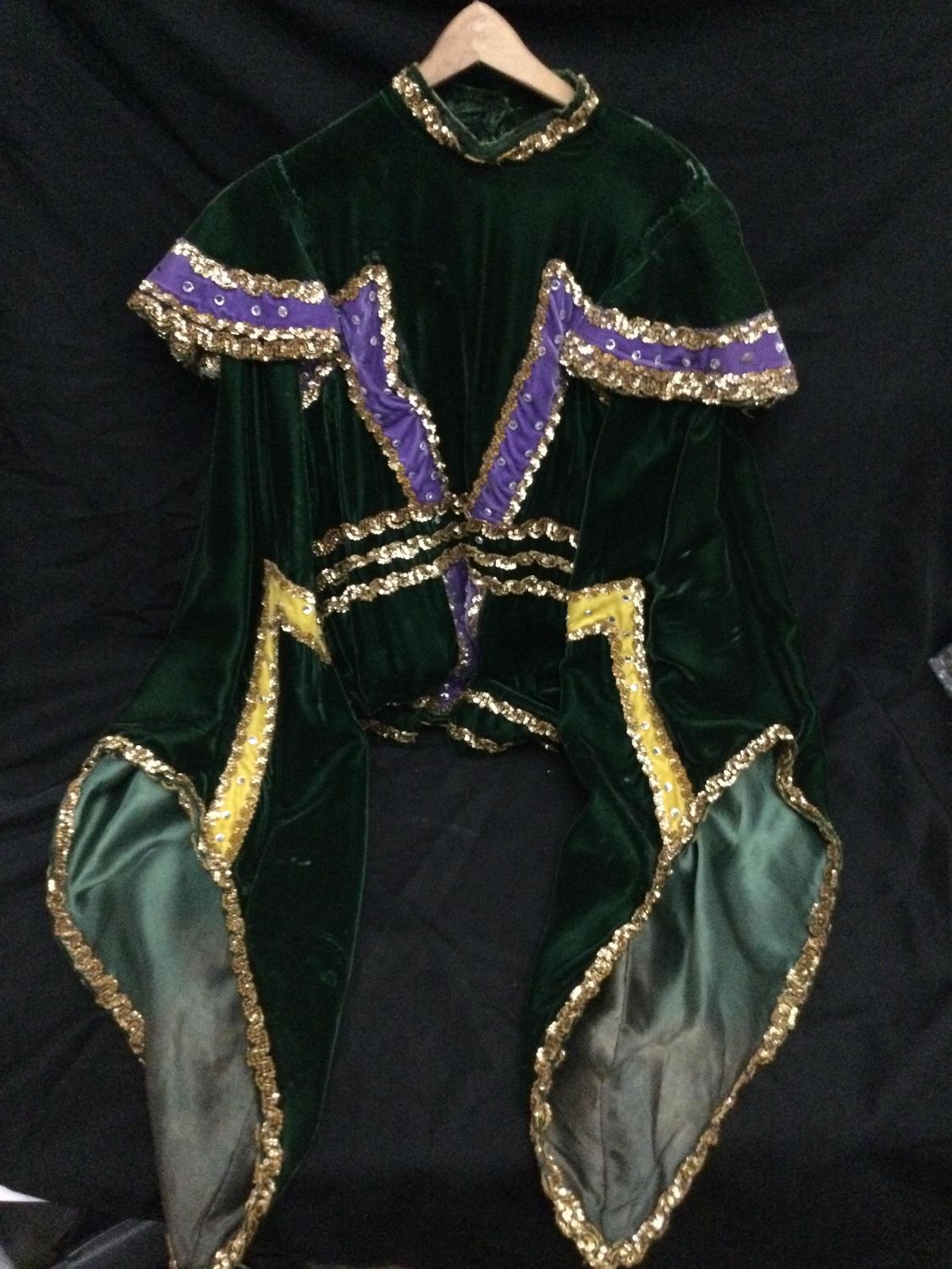 bling Mardi Gras outfit adult size, includes top with billowy sleeves and cape