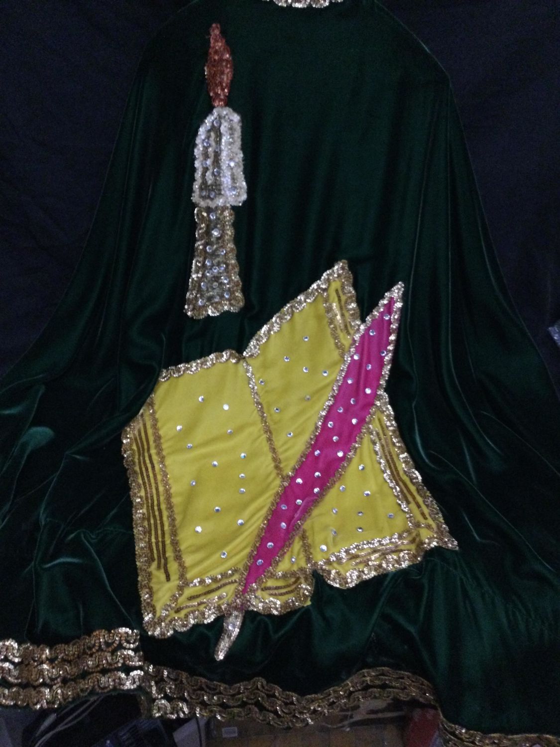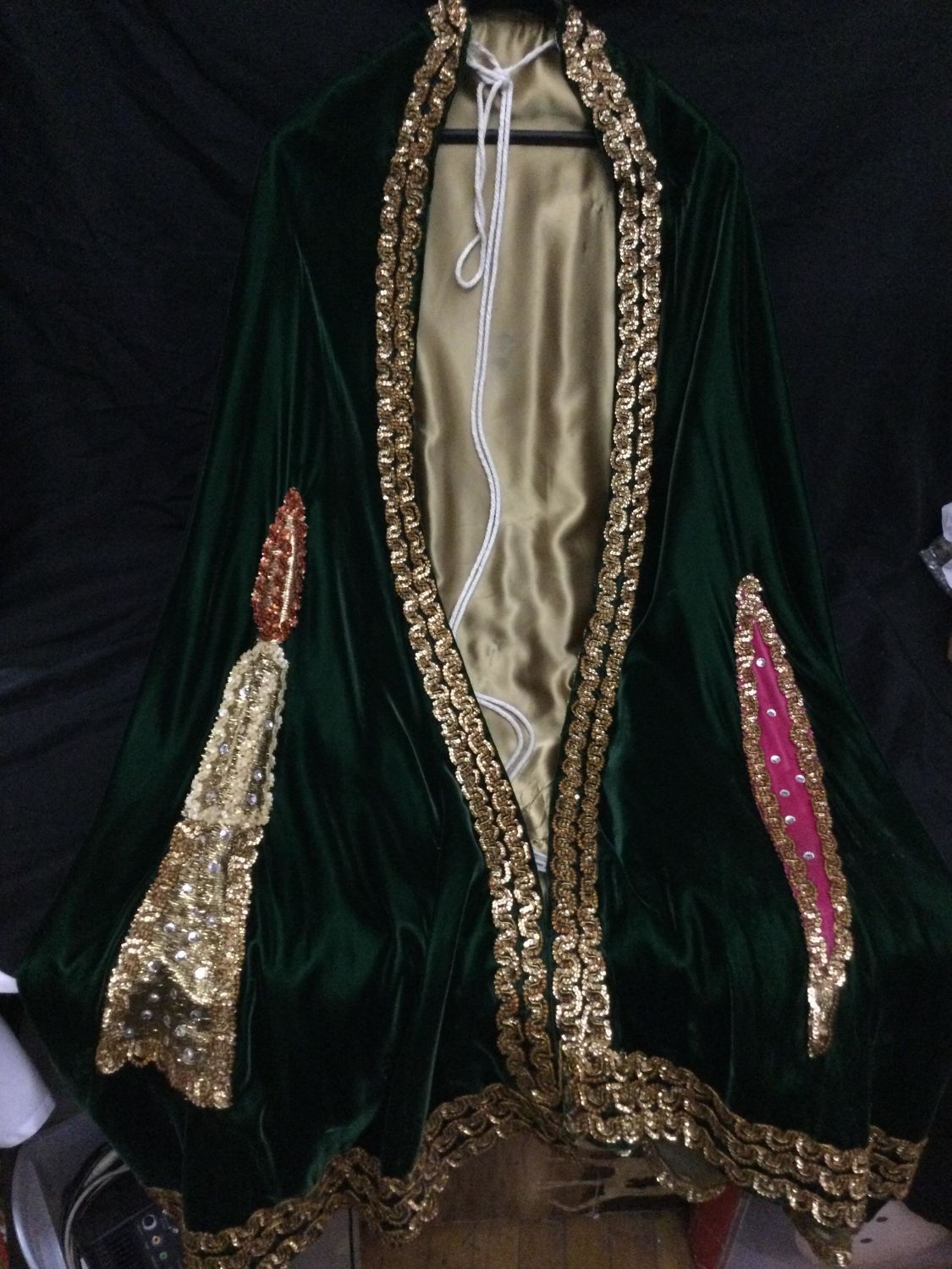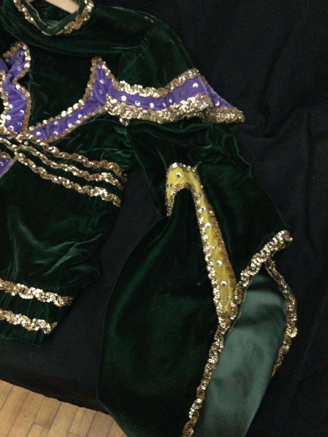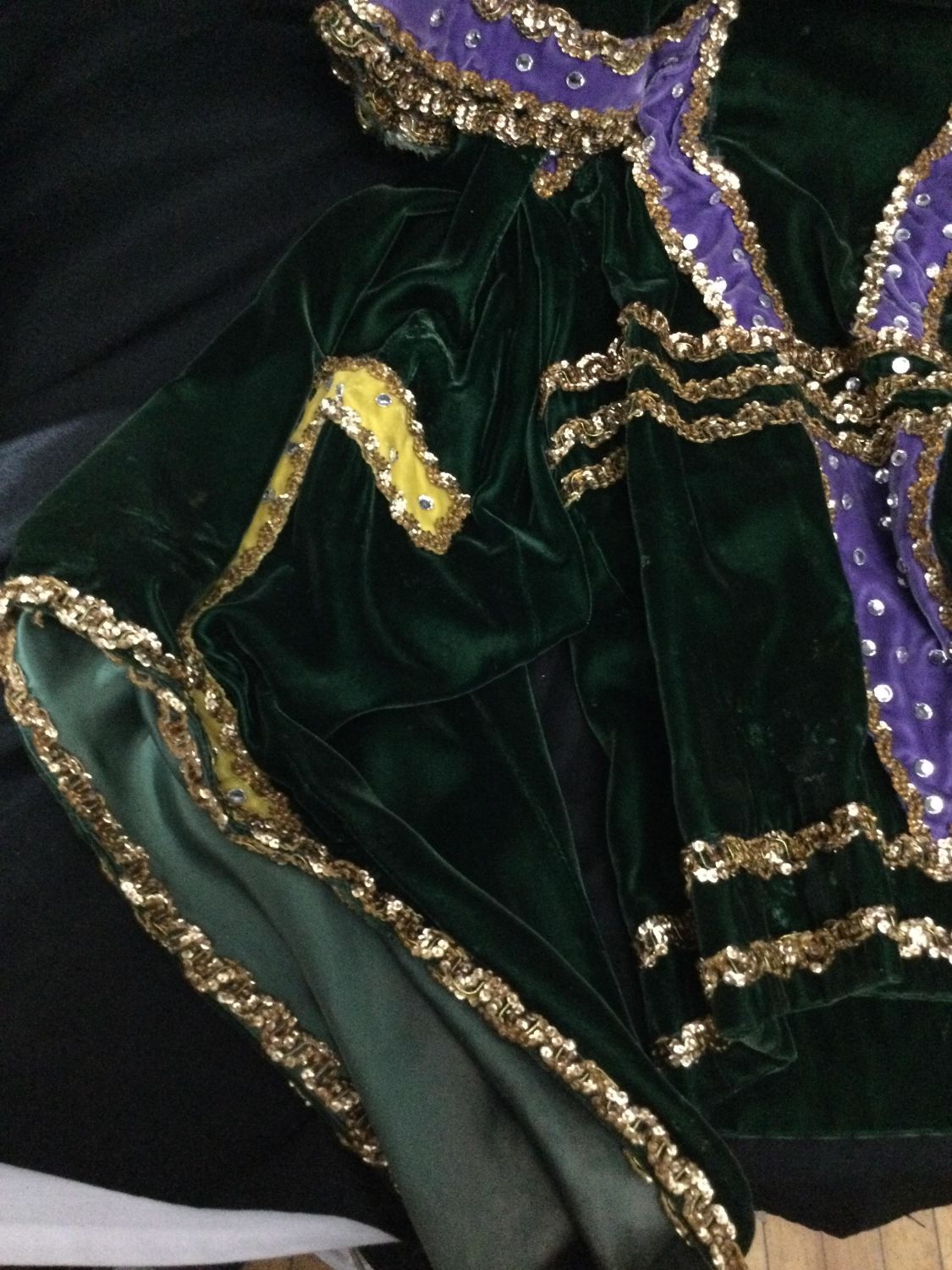 bling Mardi Gras outfit adult size, includes top with billowy sleeves and cape