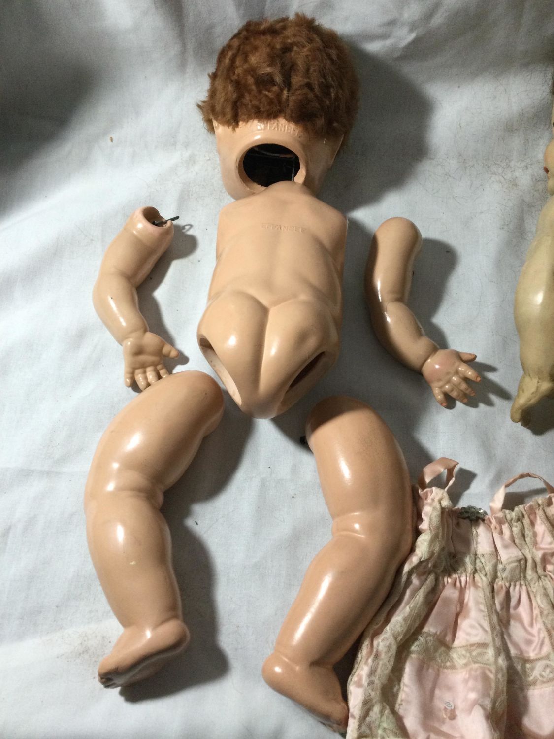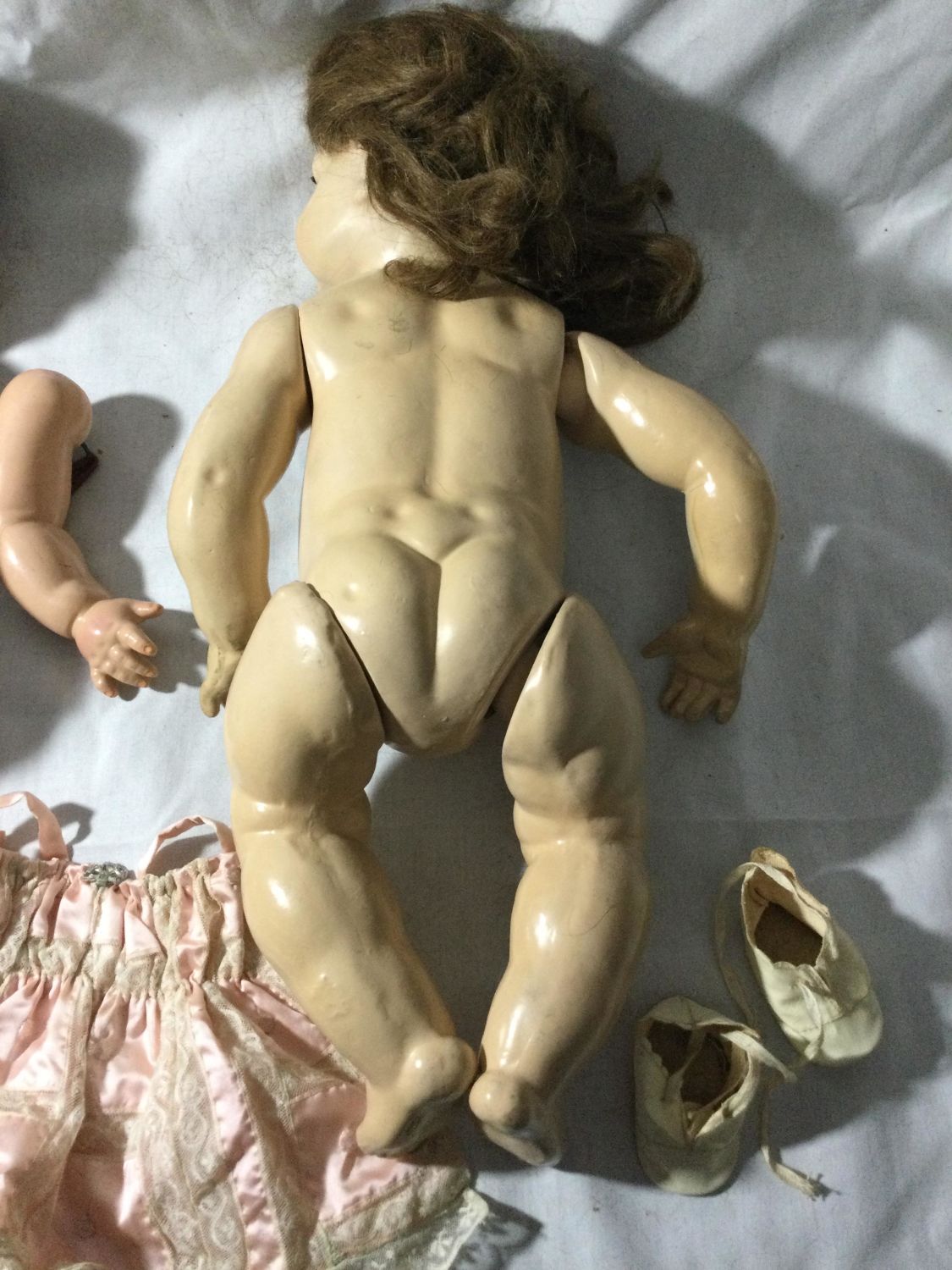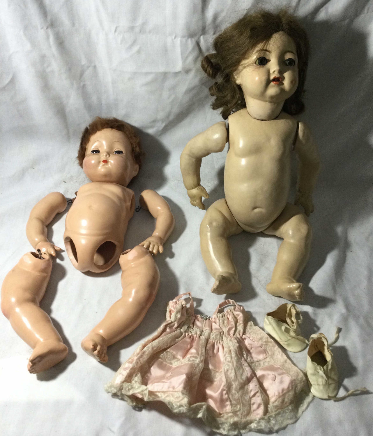 One not complete all pieces not together.Incomplete doll is marked EFFENBEE eyes open and close, each measures appr. 22 inches
