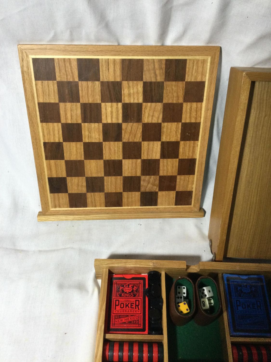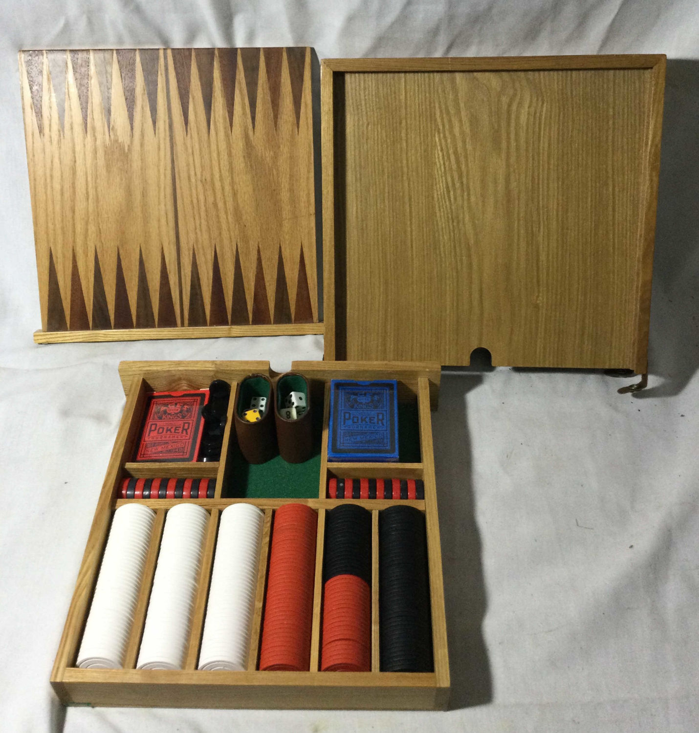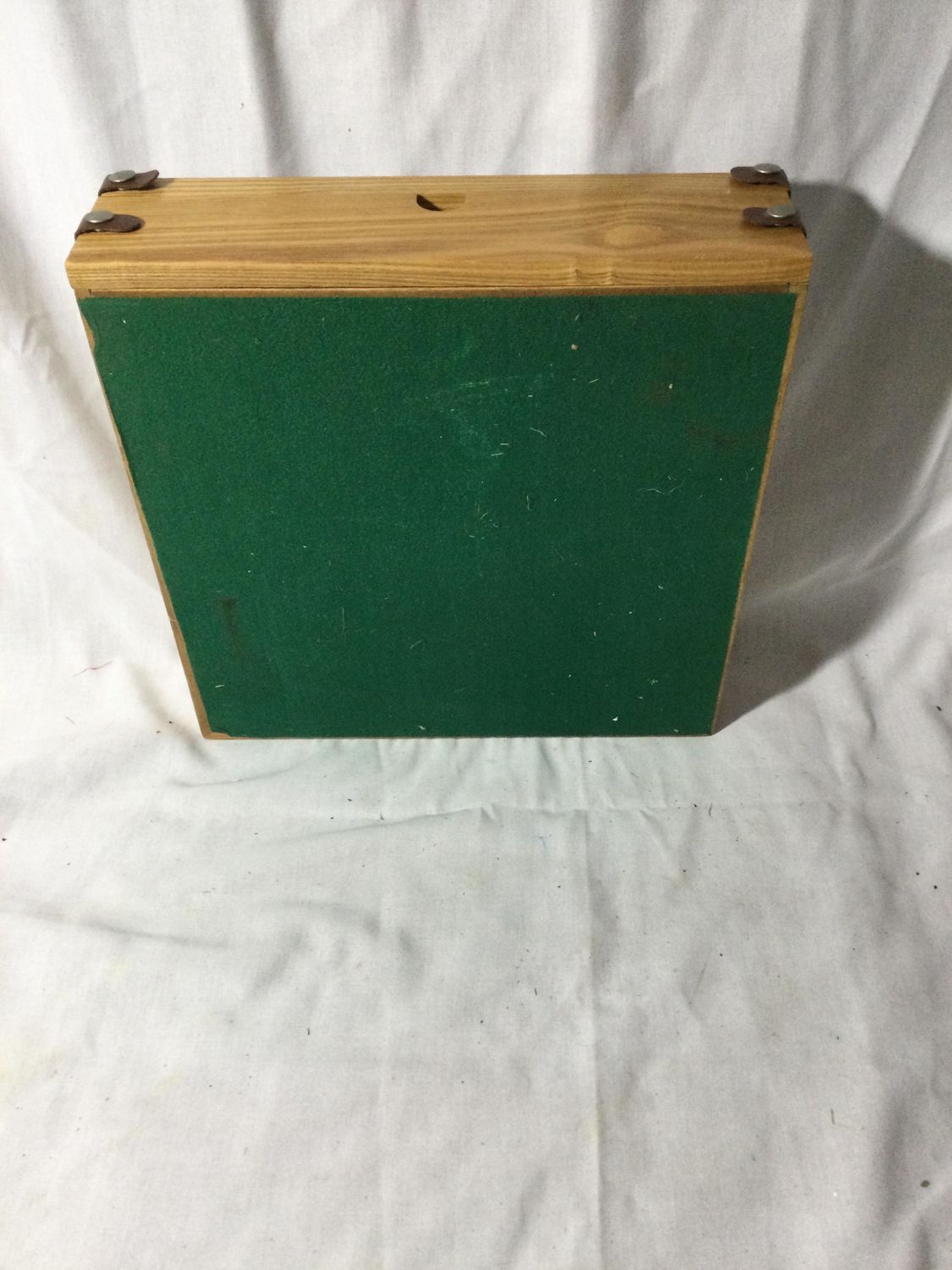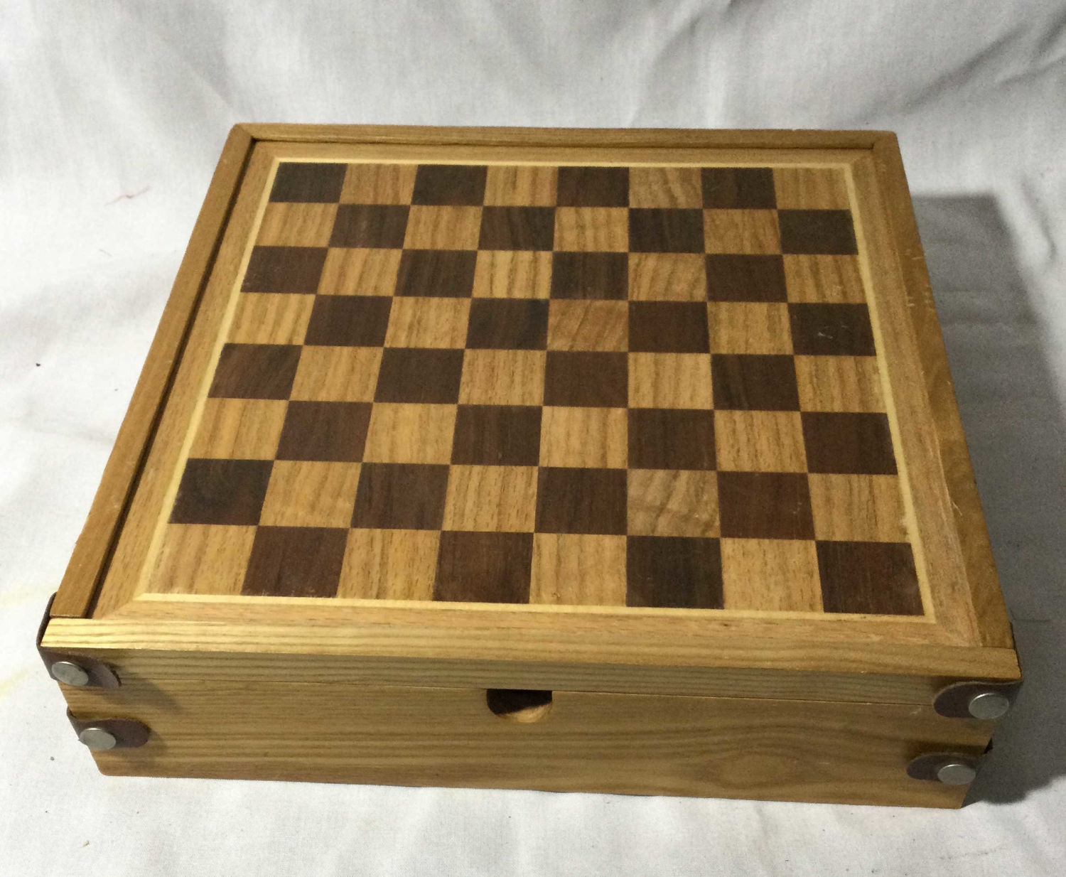 a nice wooden case measures 12 1/2 x 12 1/2 inches