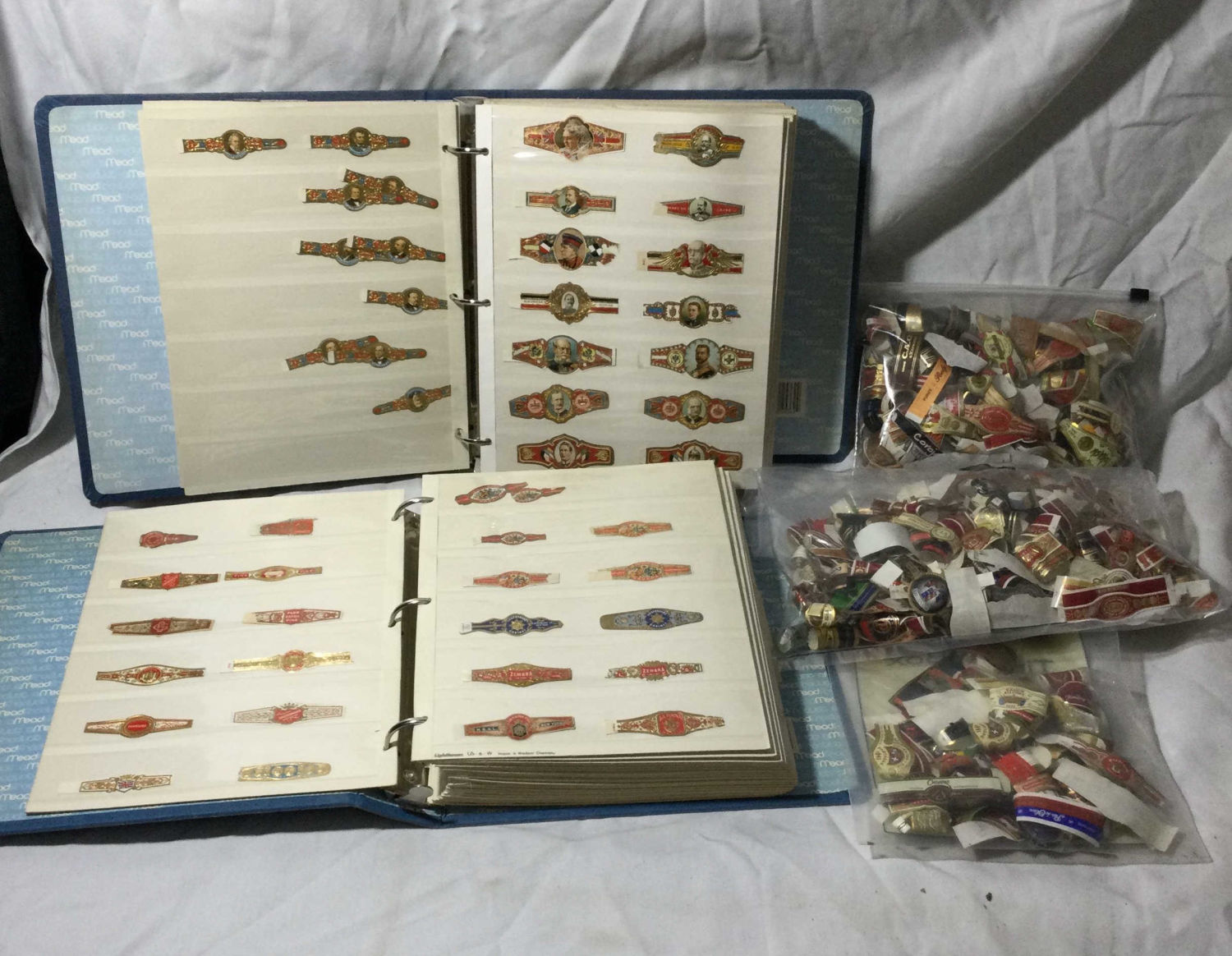 two notebooks and three bags full of at least 500 cigar bands