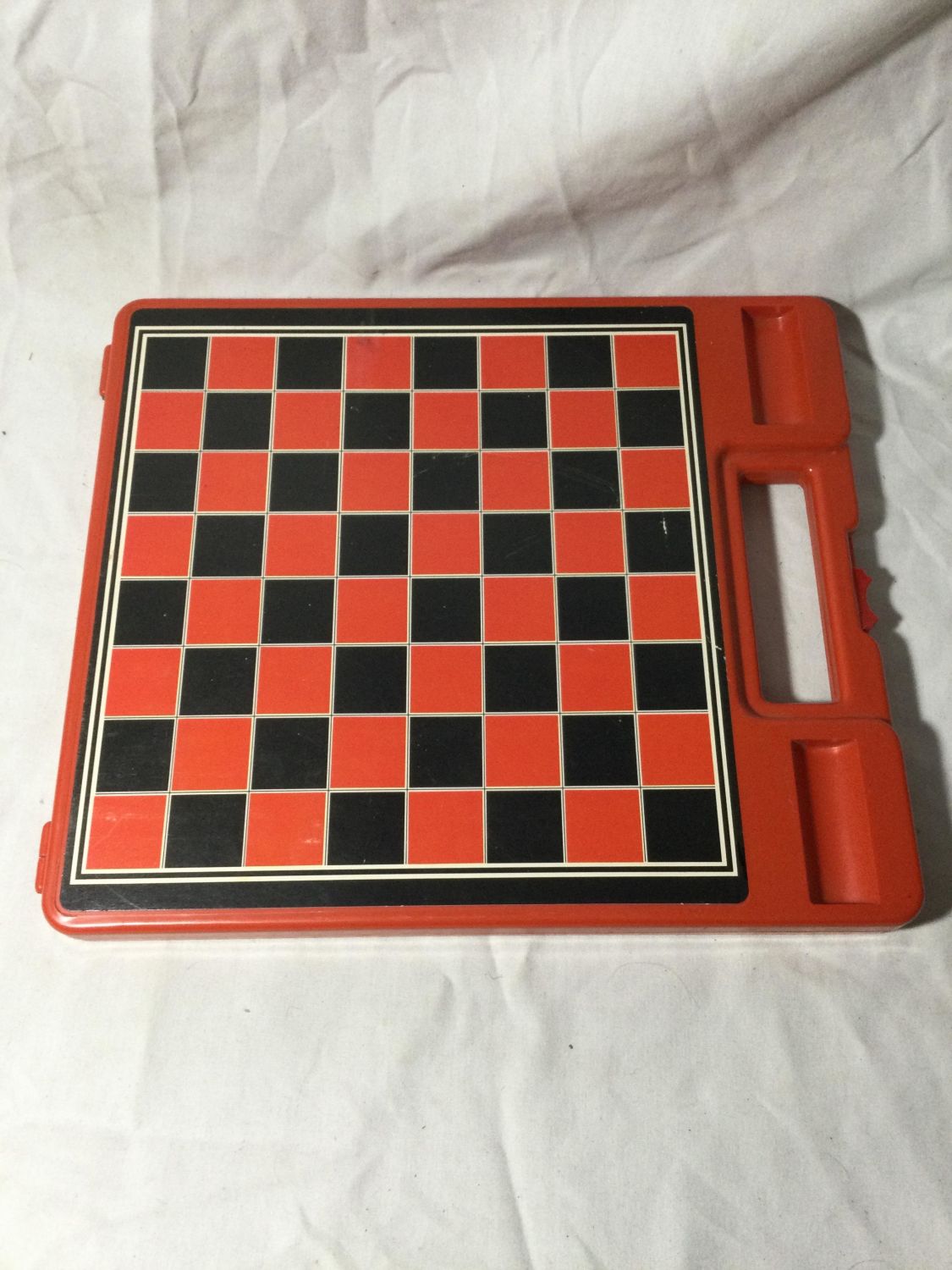Plastic carry case measures 14 1/2 x 12 3/4 inches