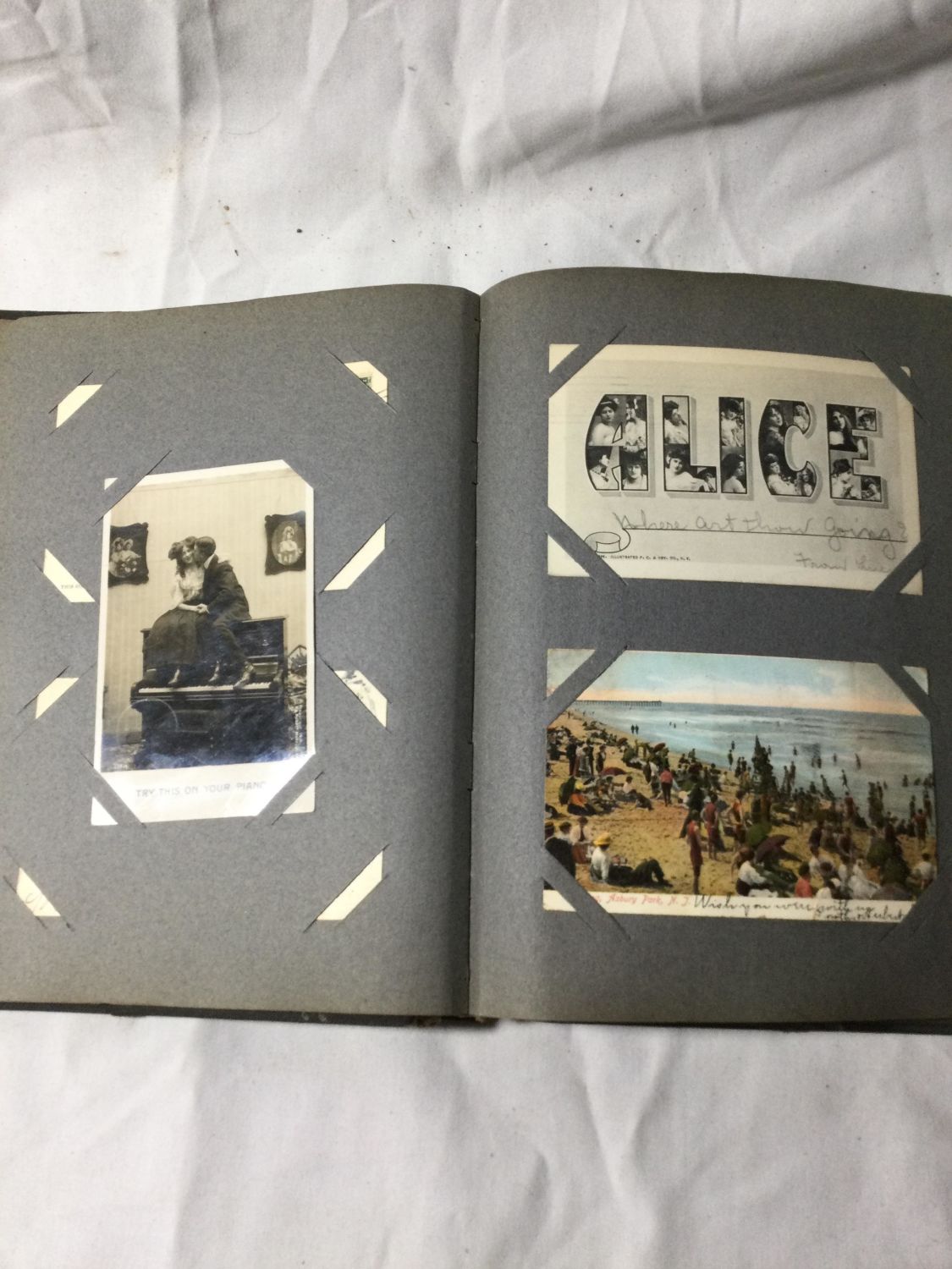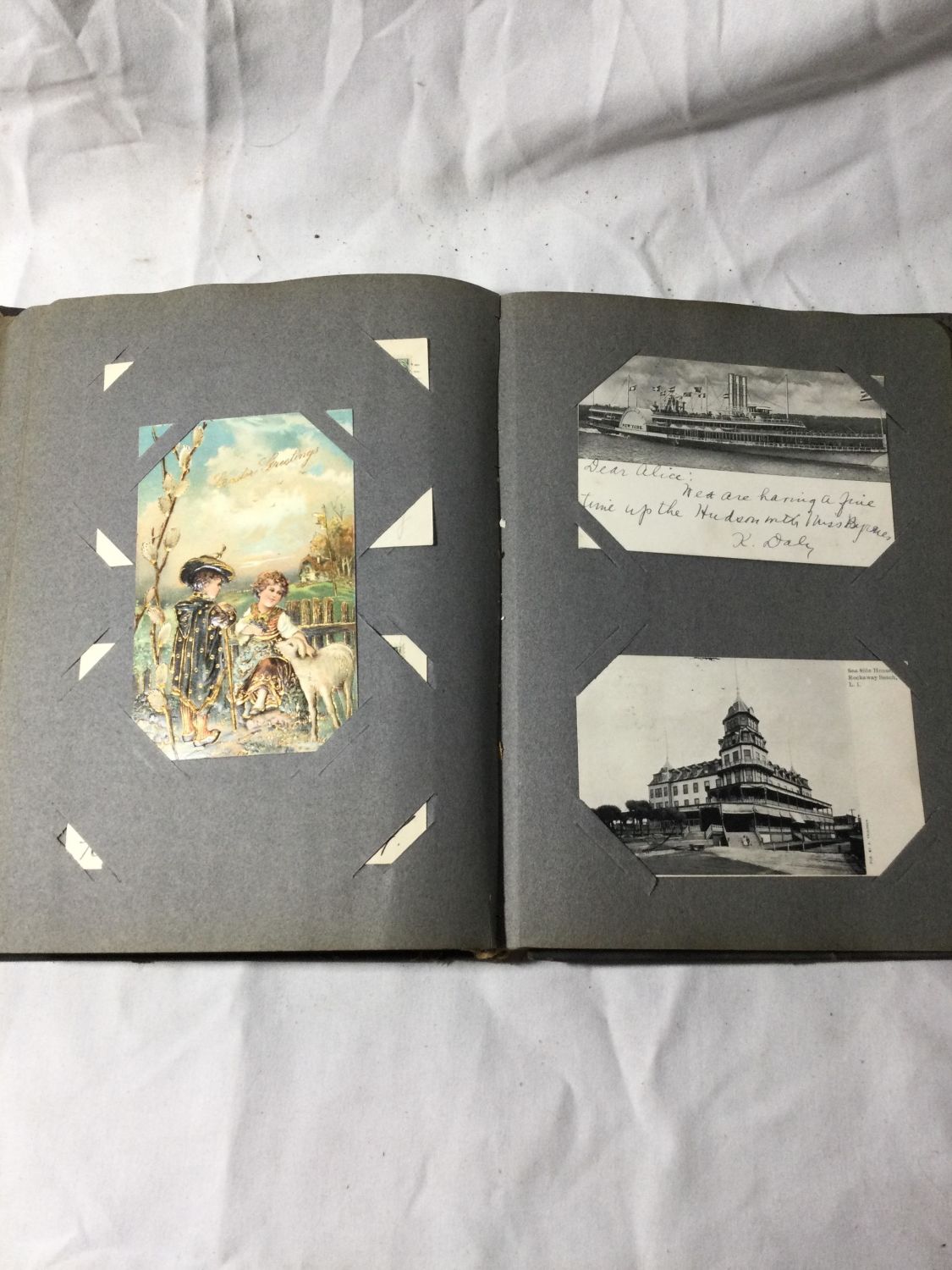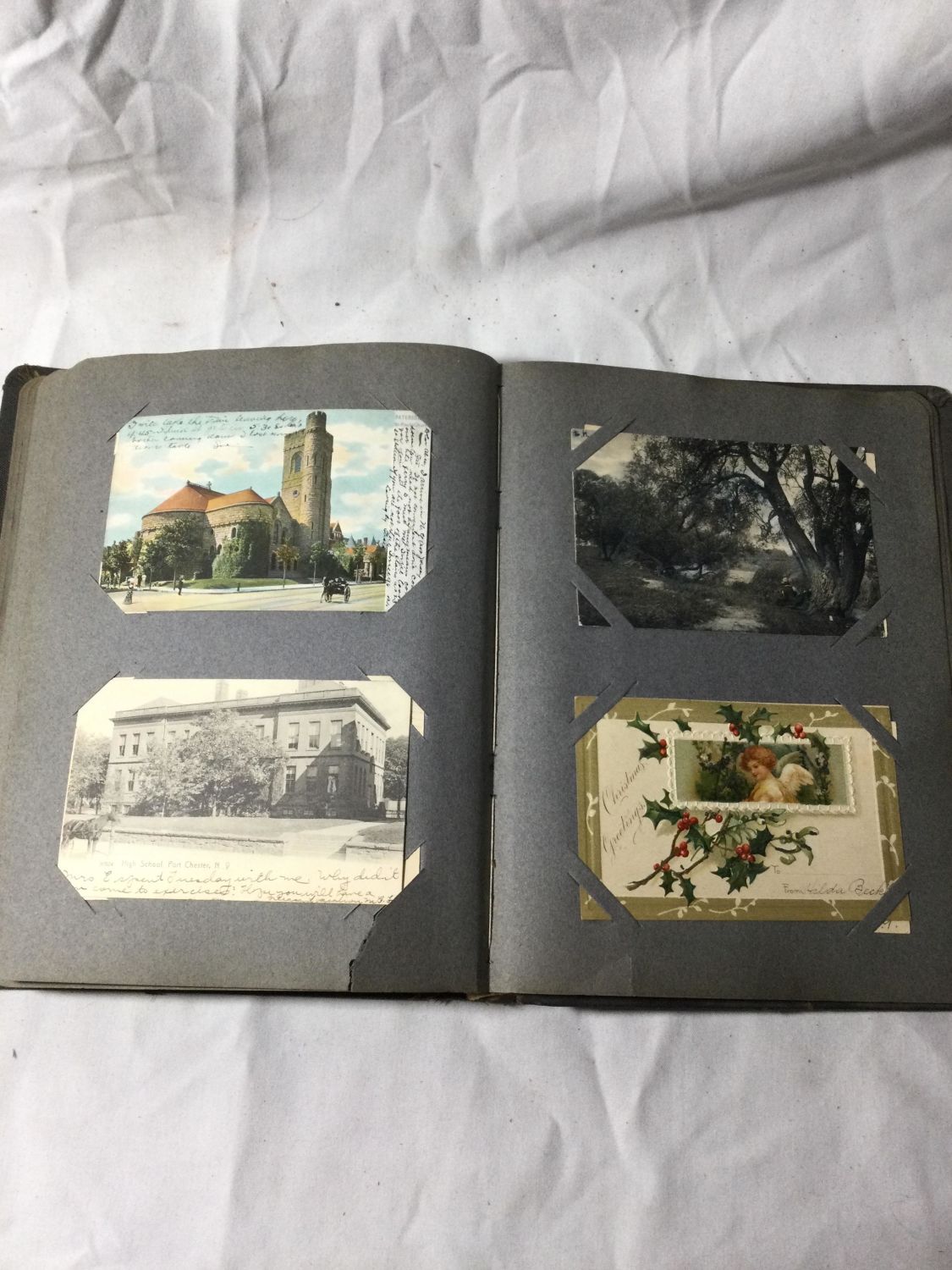 Over 300 color and black and white postcards in two albums and many loose in a box