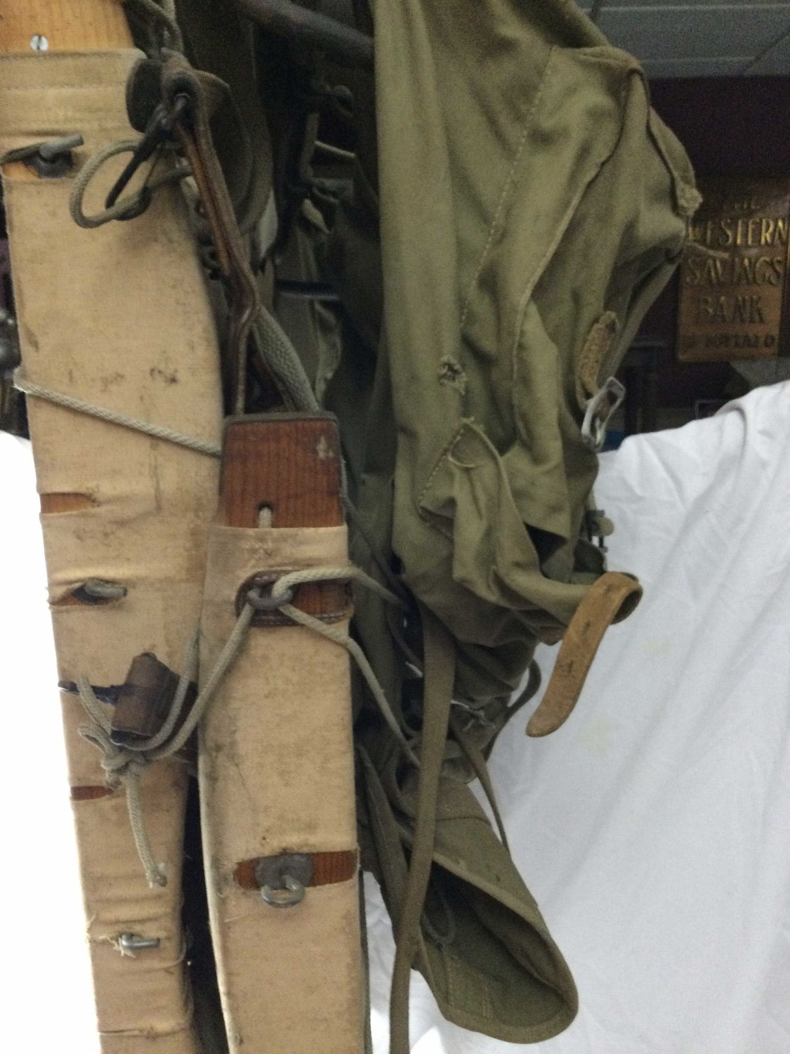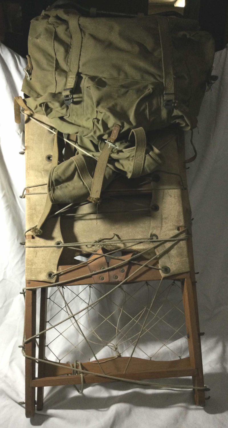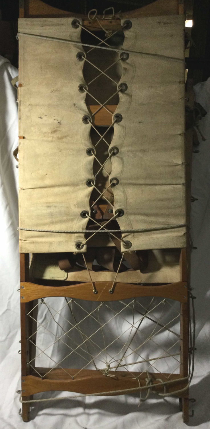 measures 43 x 17 inchees, wood, canvas and rope construction