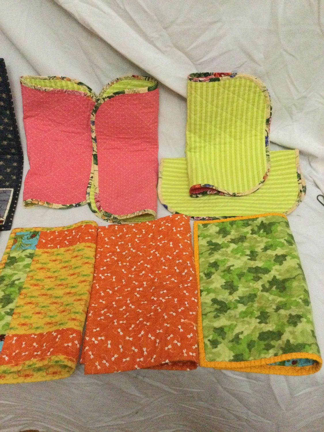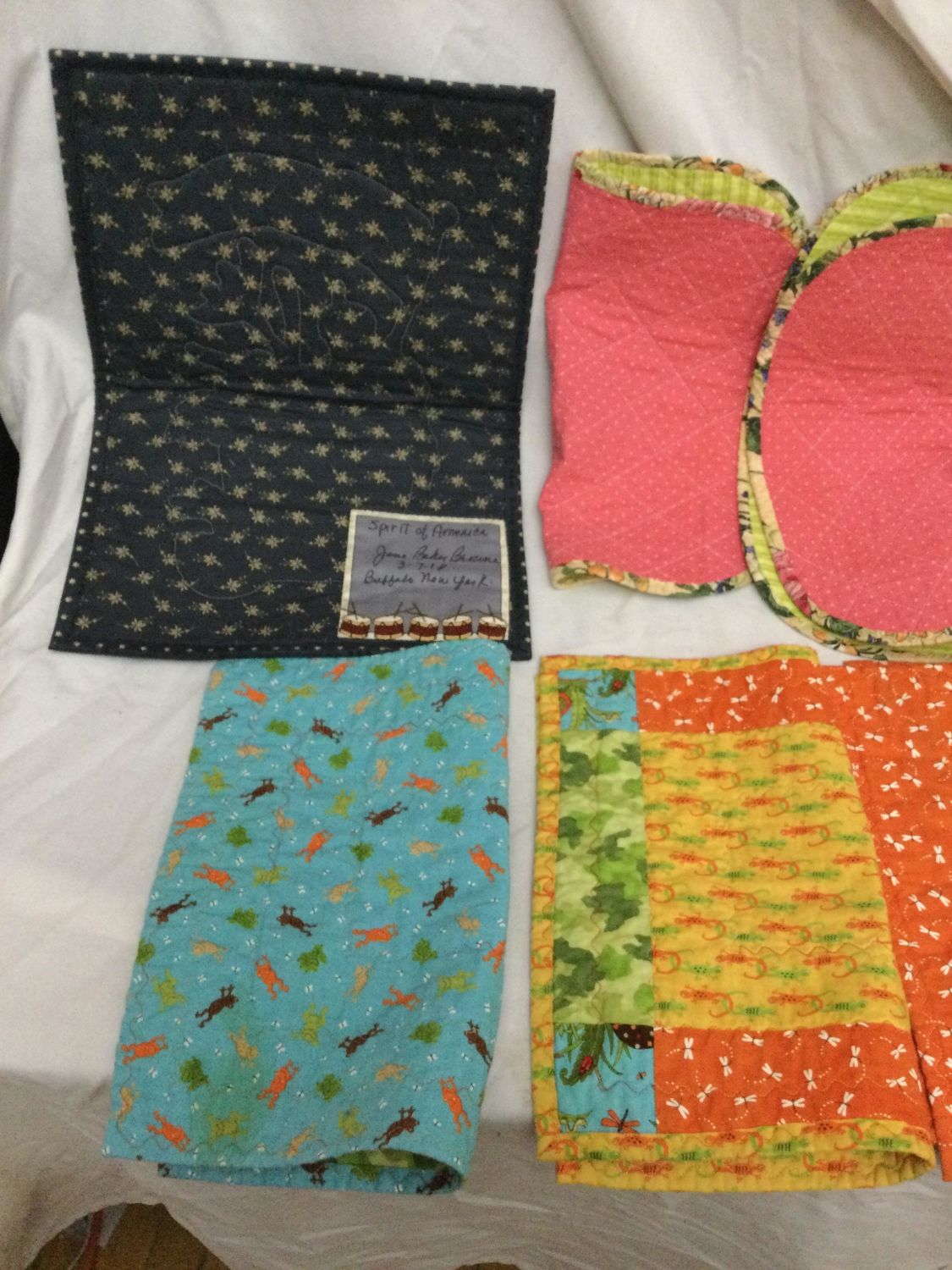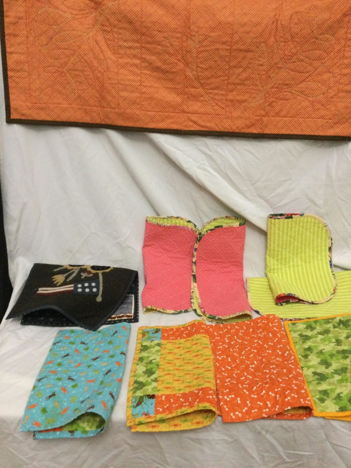 one patriotic flag wall hanging ,and one tree branch runner.Placemats measure 16 x 13 and are all reversible wall hanging measures 18 x 13 and runner measures 39 x 16