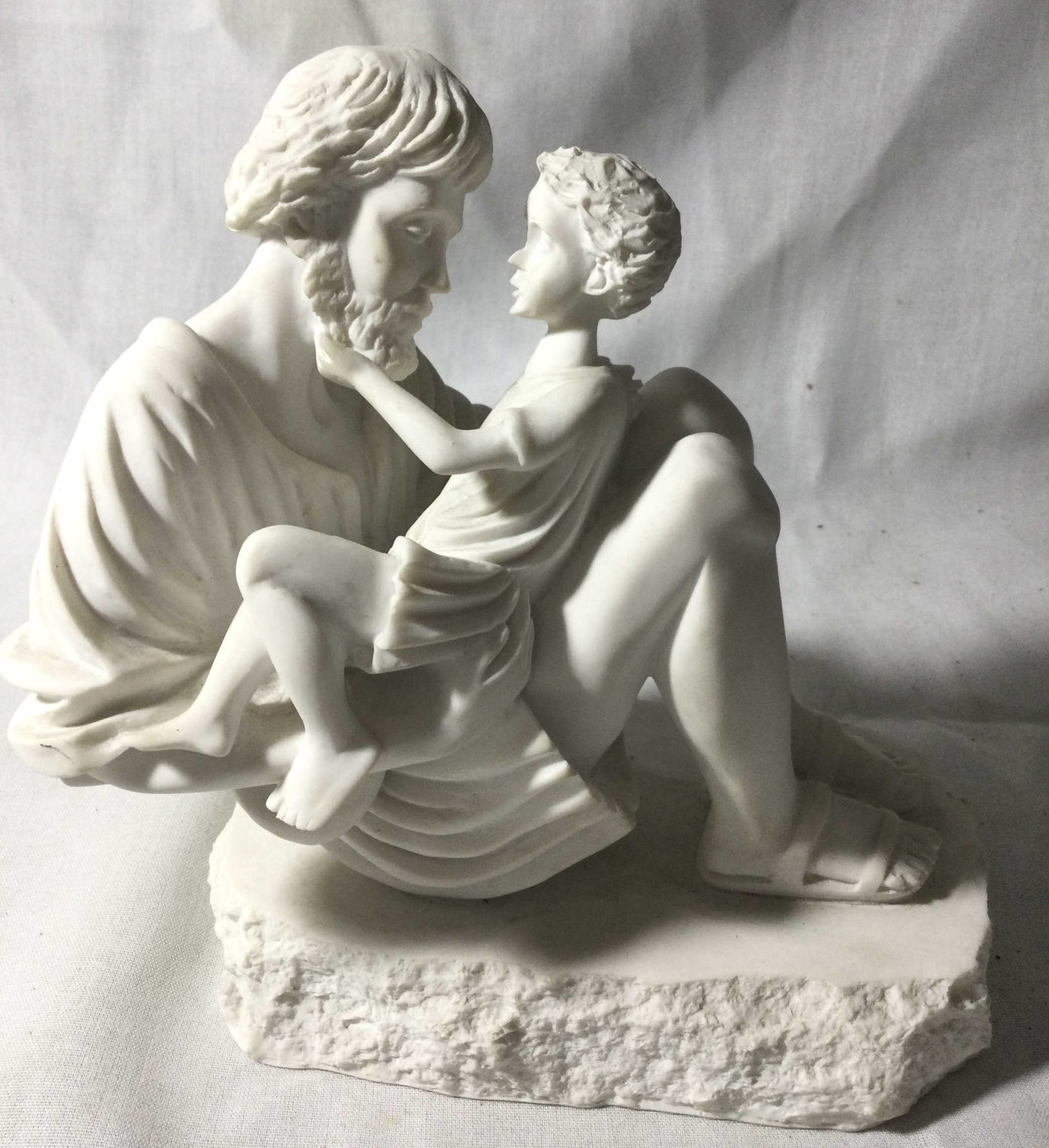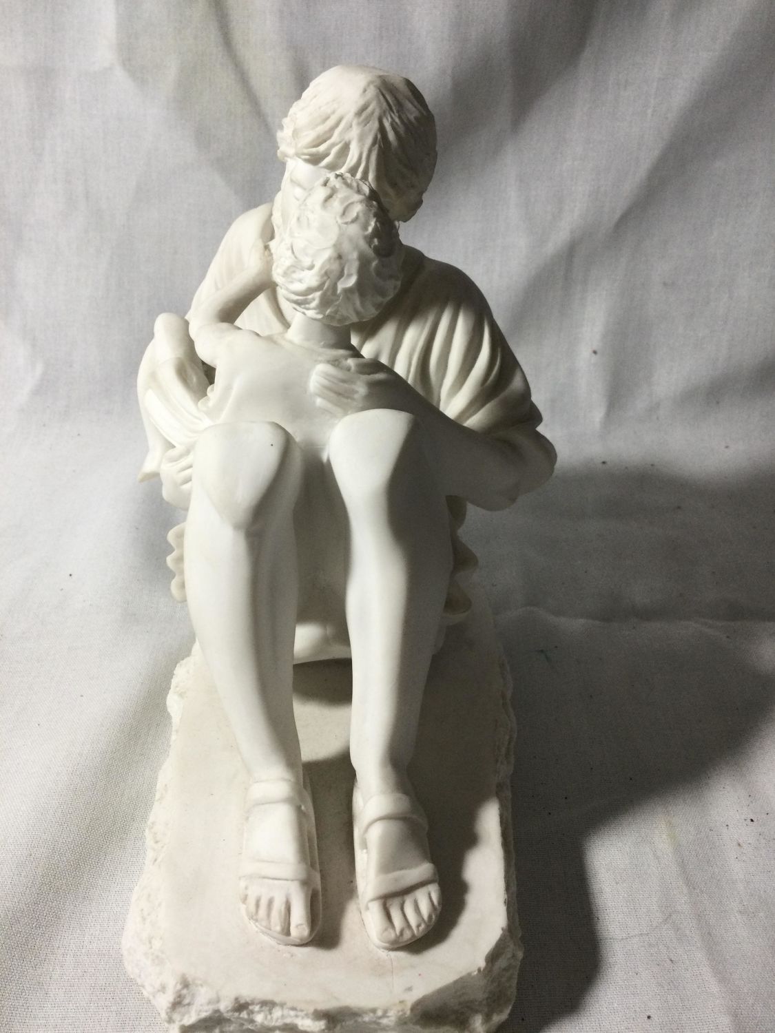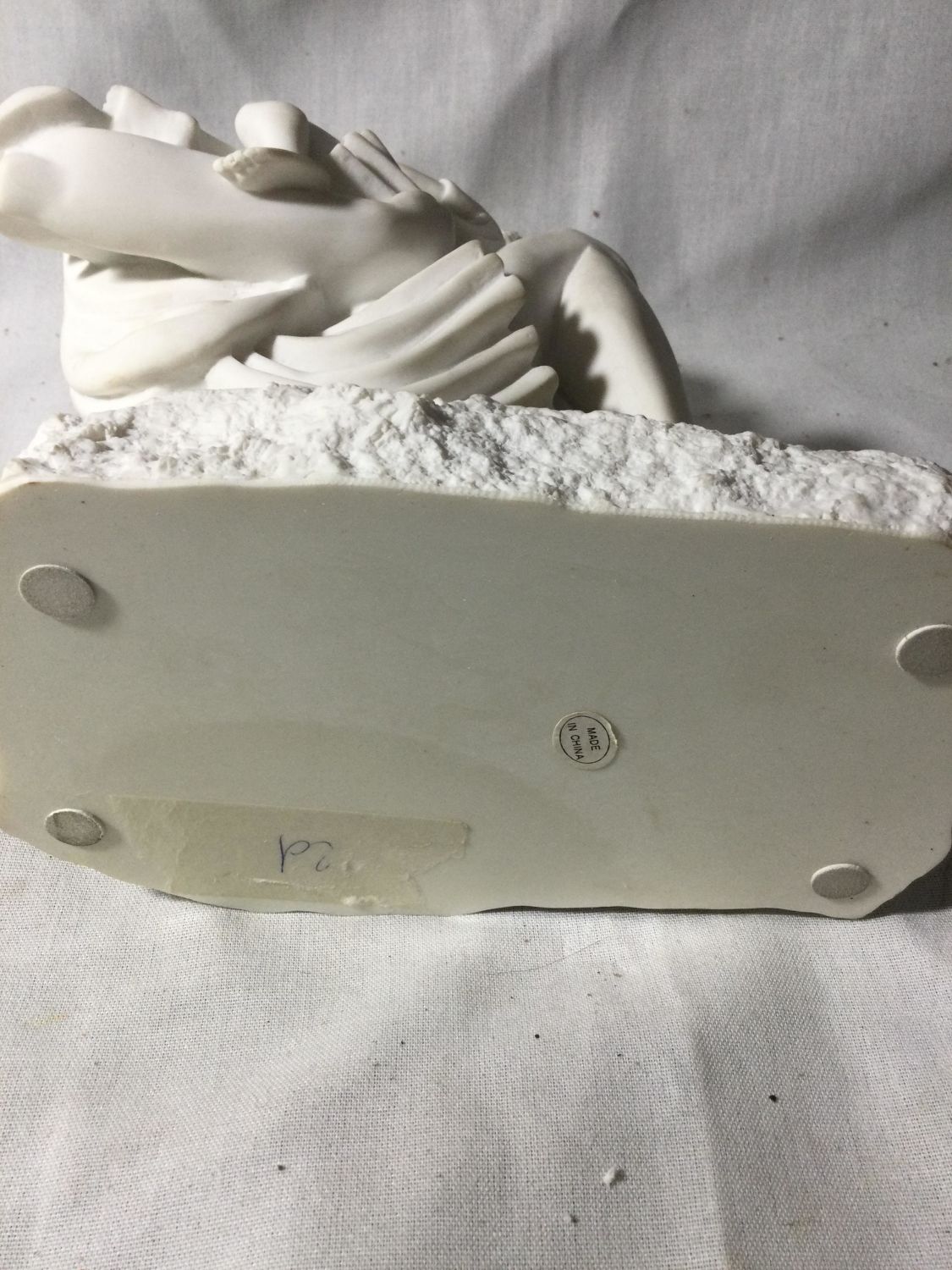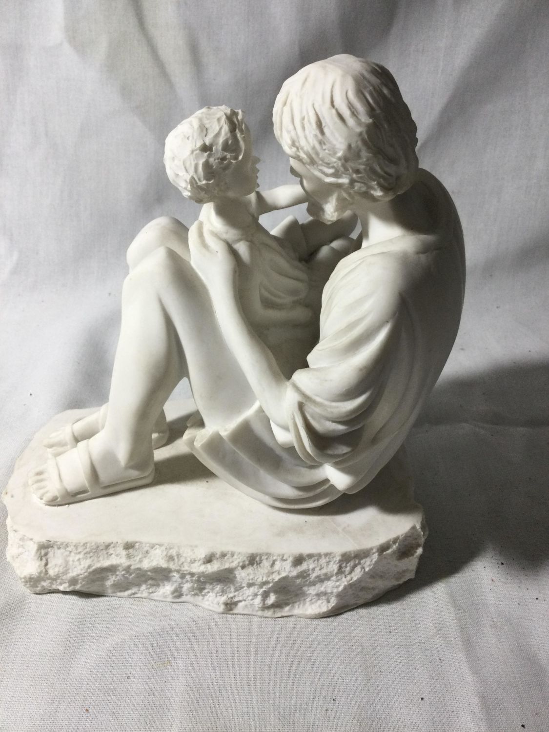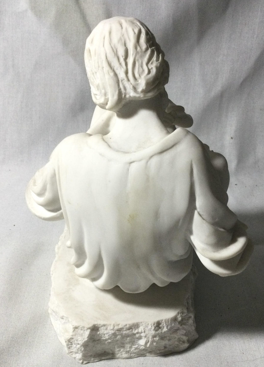 Measures 7 1/2 inches high by 3 1/2 inches deep by 7 inches wide, heavy solid resin stone cast