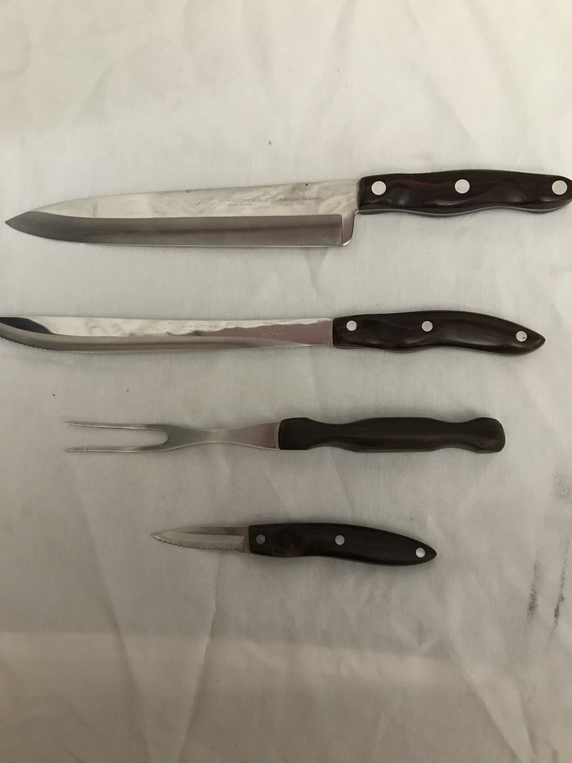 ncludes chef knife, carver knife, carving fork, and a paring knife