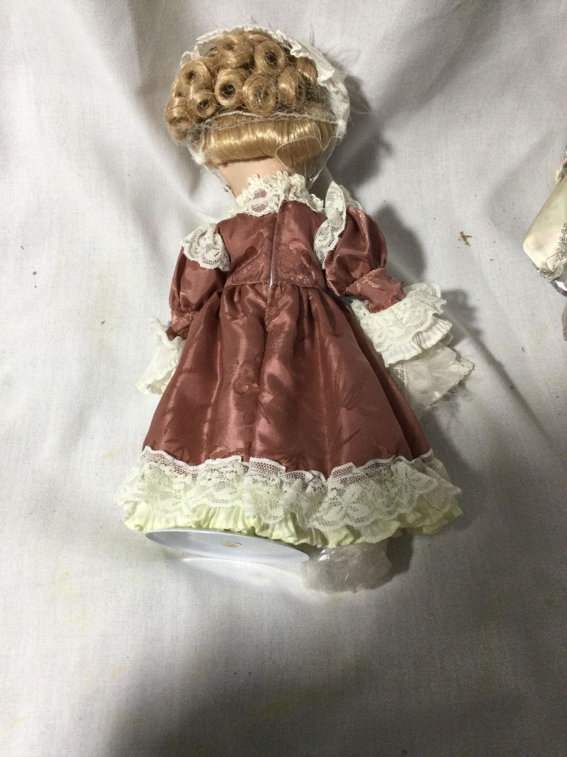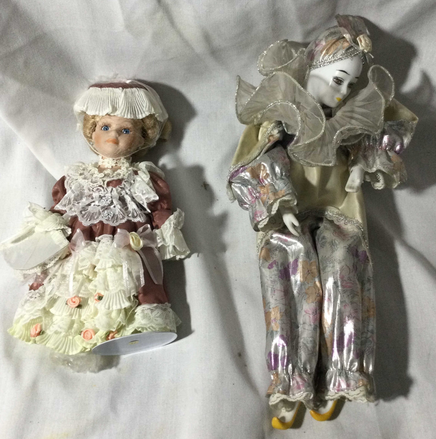 Jester measures 14 inches high The other Doll Is rare Margaret age of elegance porcelain Victorian Doll measuring 10 1/2 inches Tall