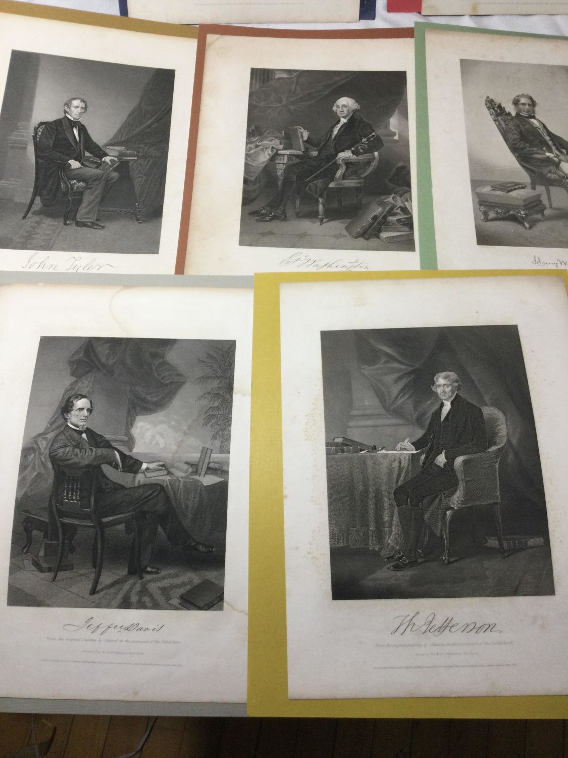 important people: John Tyler ,George Washington ,Ben Franklin ,Tomas Jefferson ,Jefferson Davis and more.Each measures 8 x 11 inches