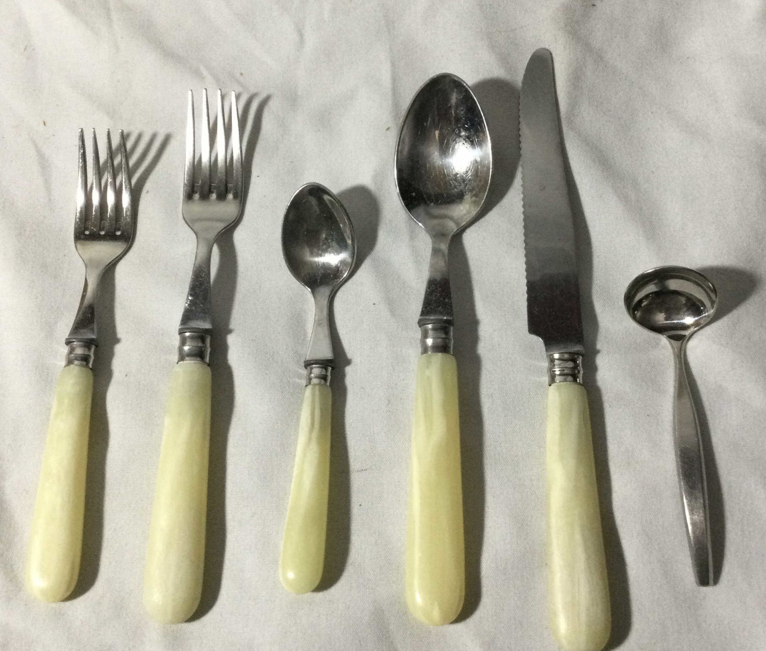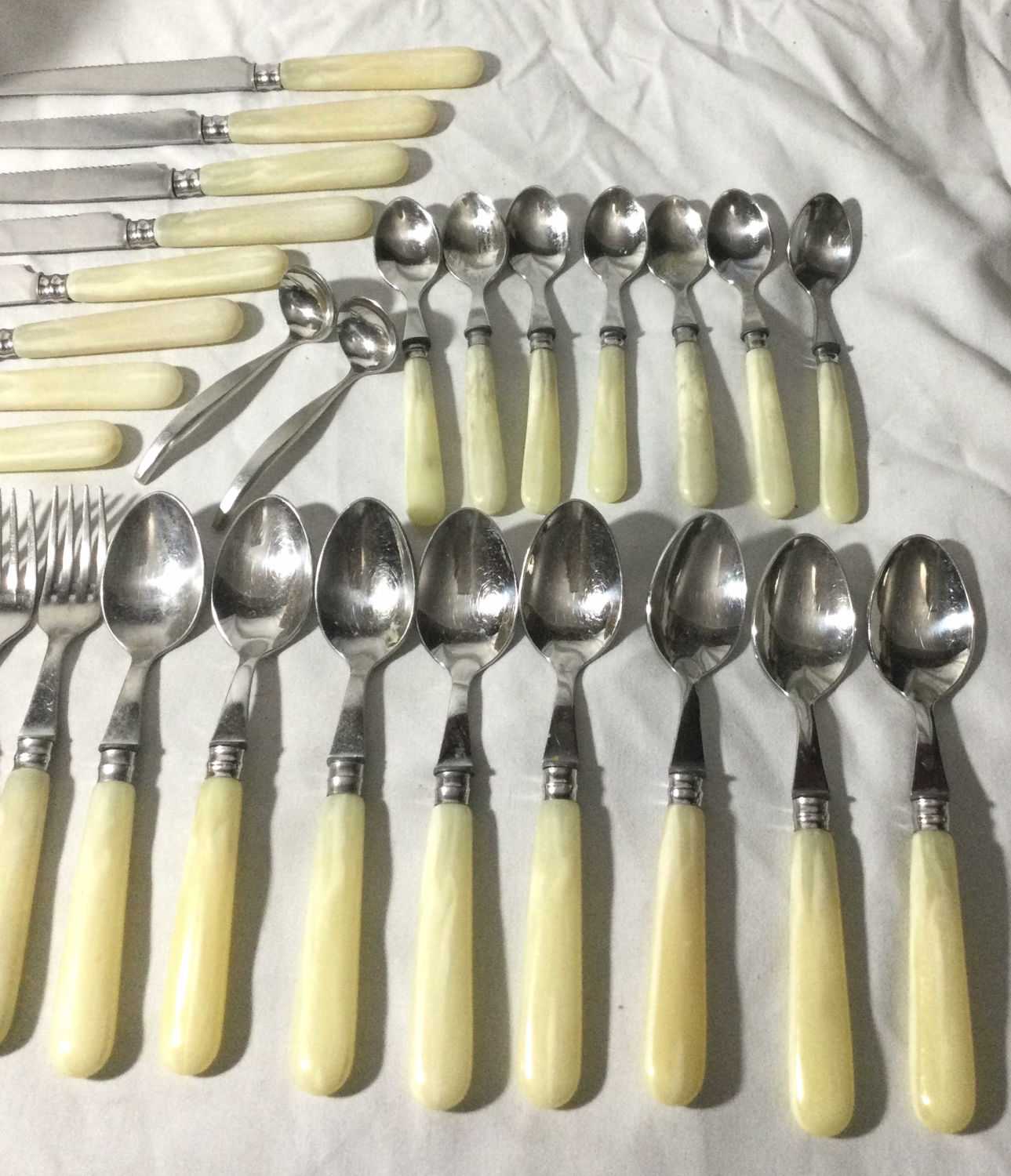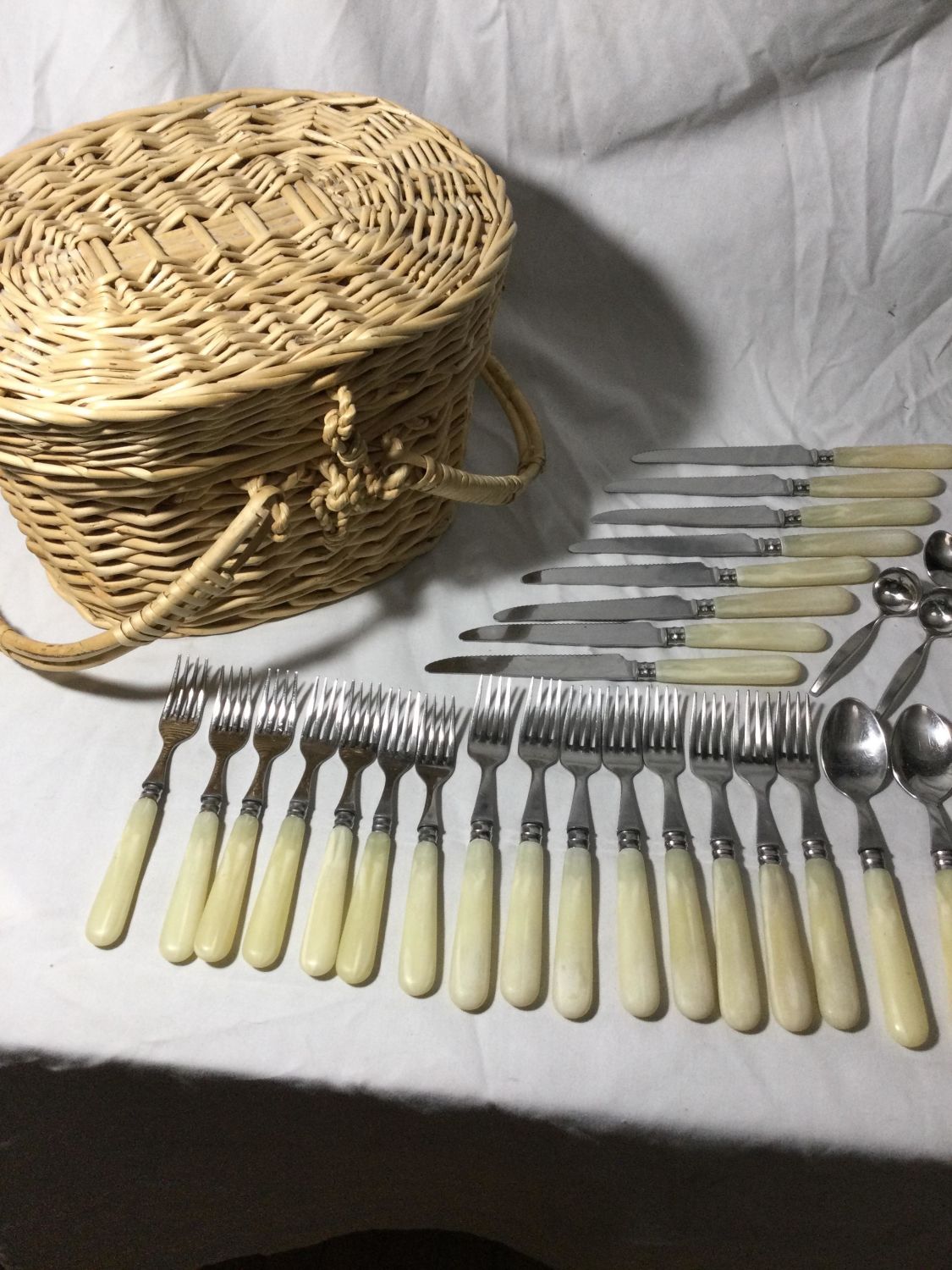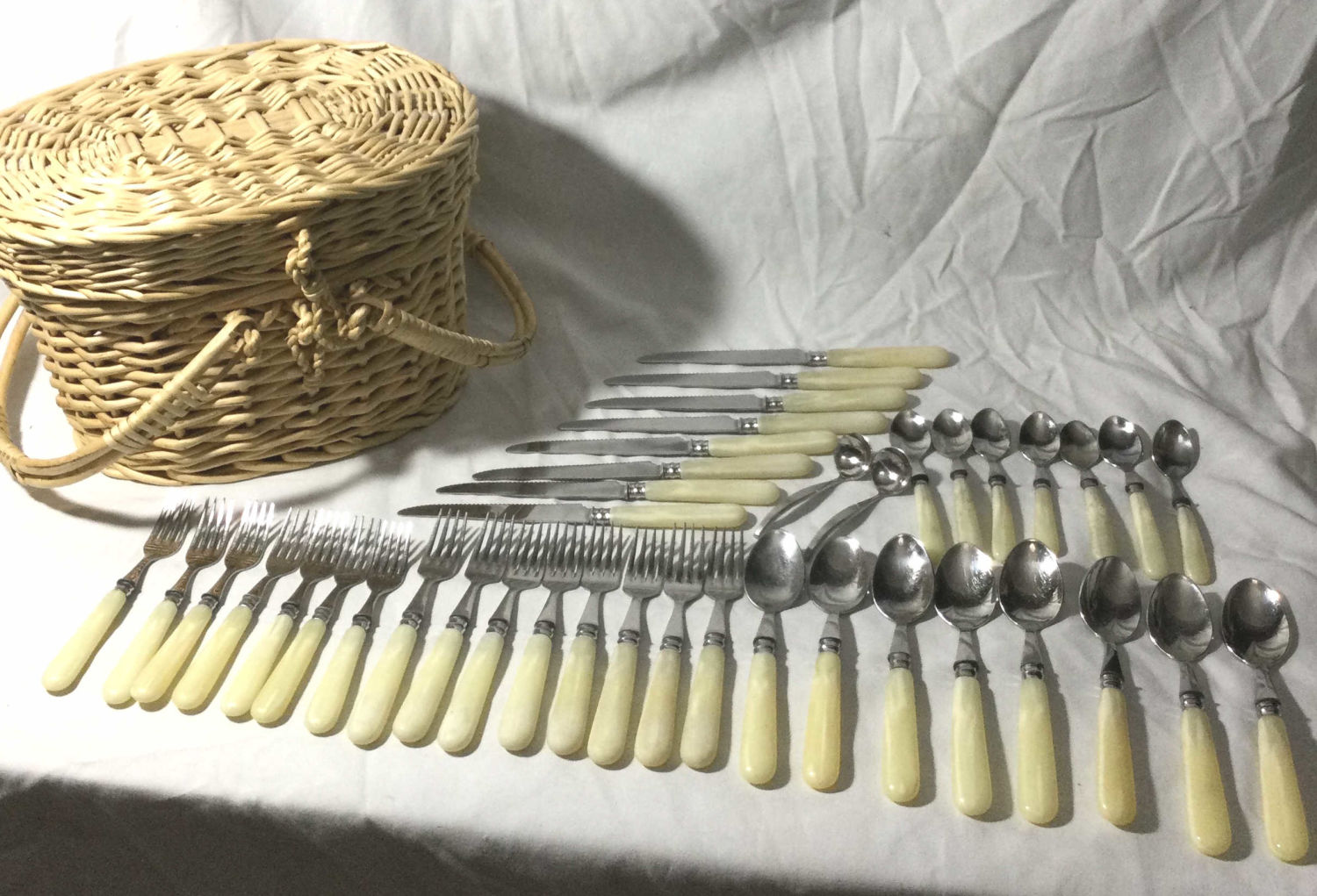 40 piece stainless steel made in France cutlery Set with wicker basket with handles