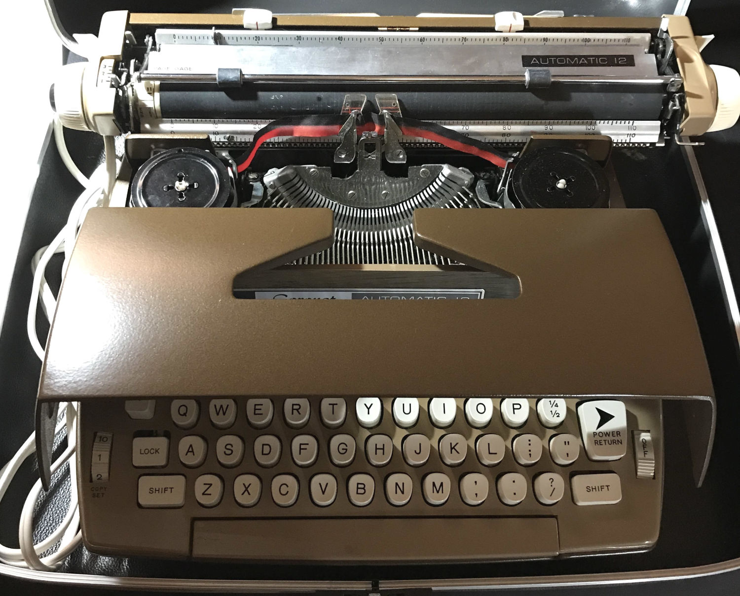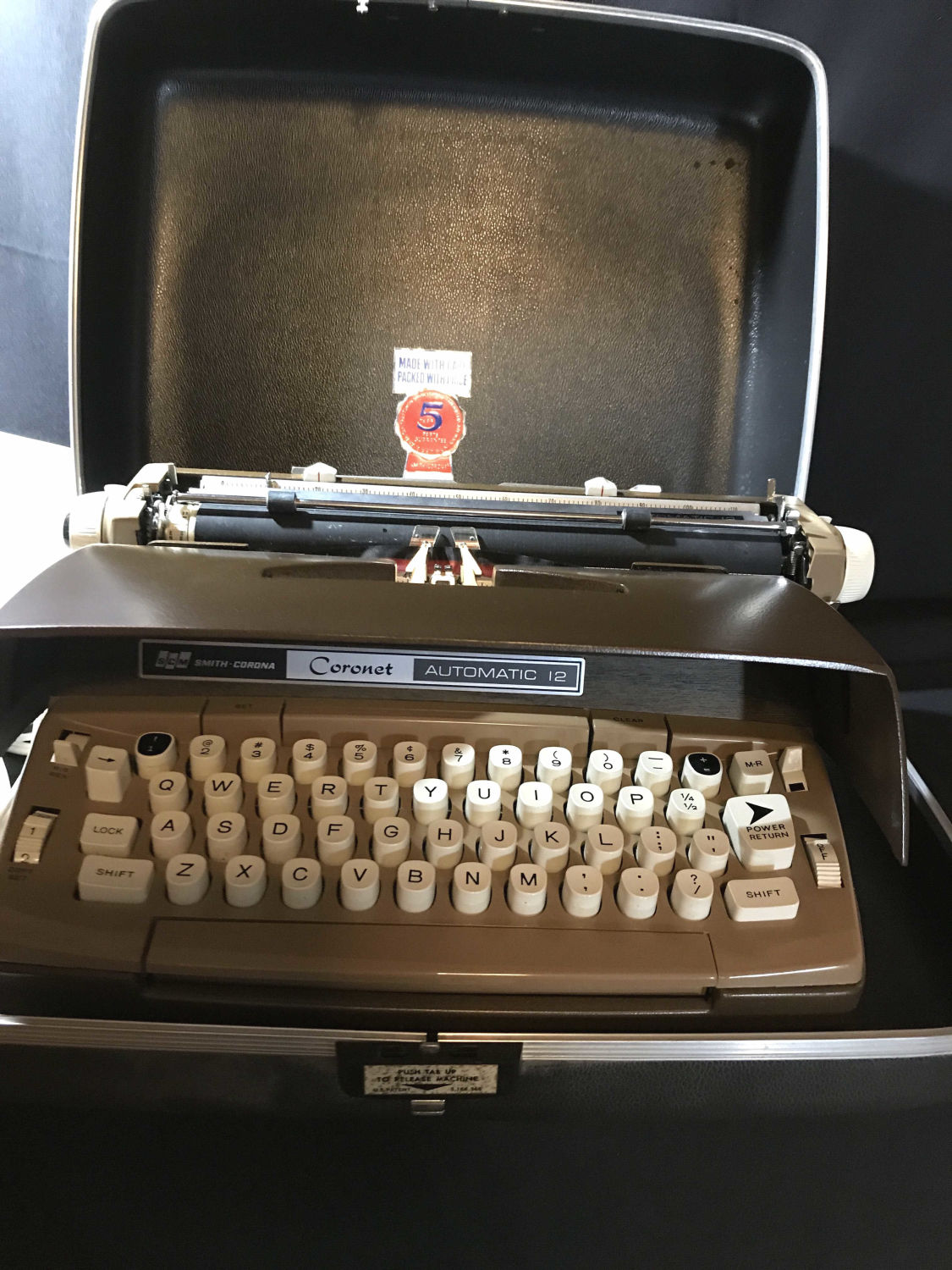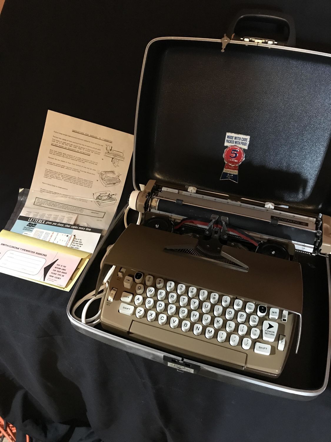 Automatic 12 electric typewriter with carry case and paperwork. Great condition. Turns on with no problems.