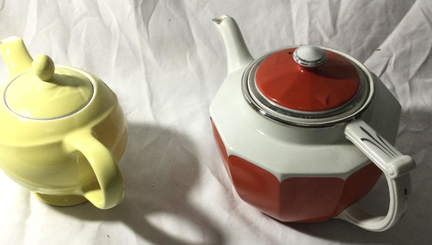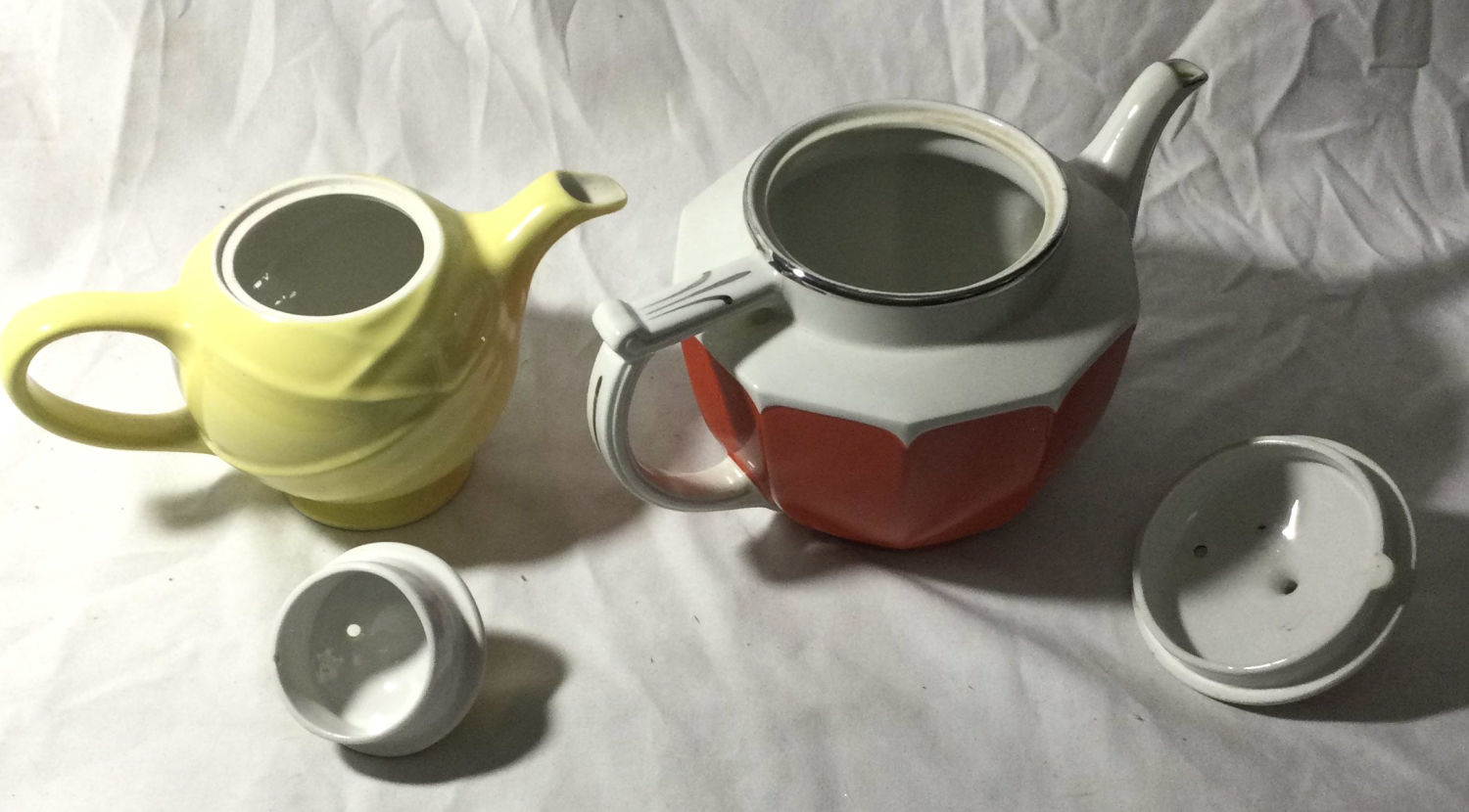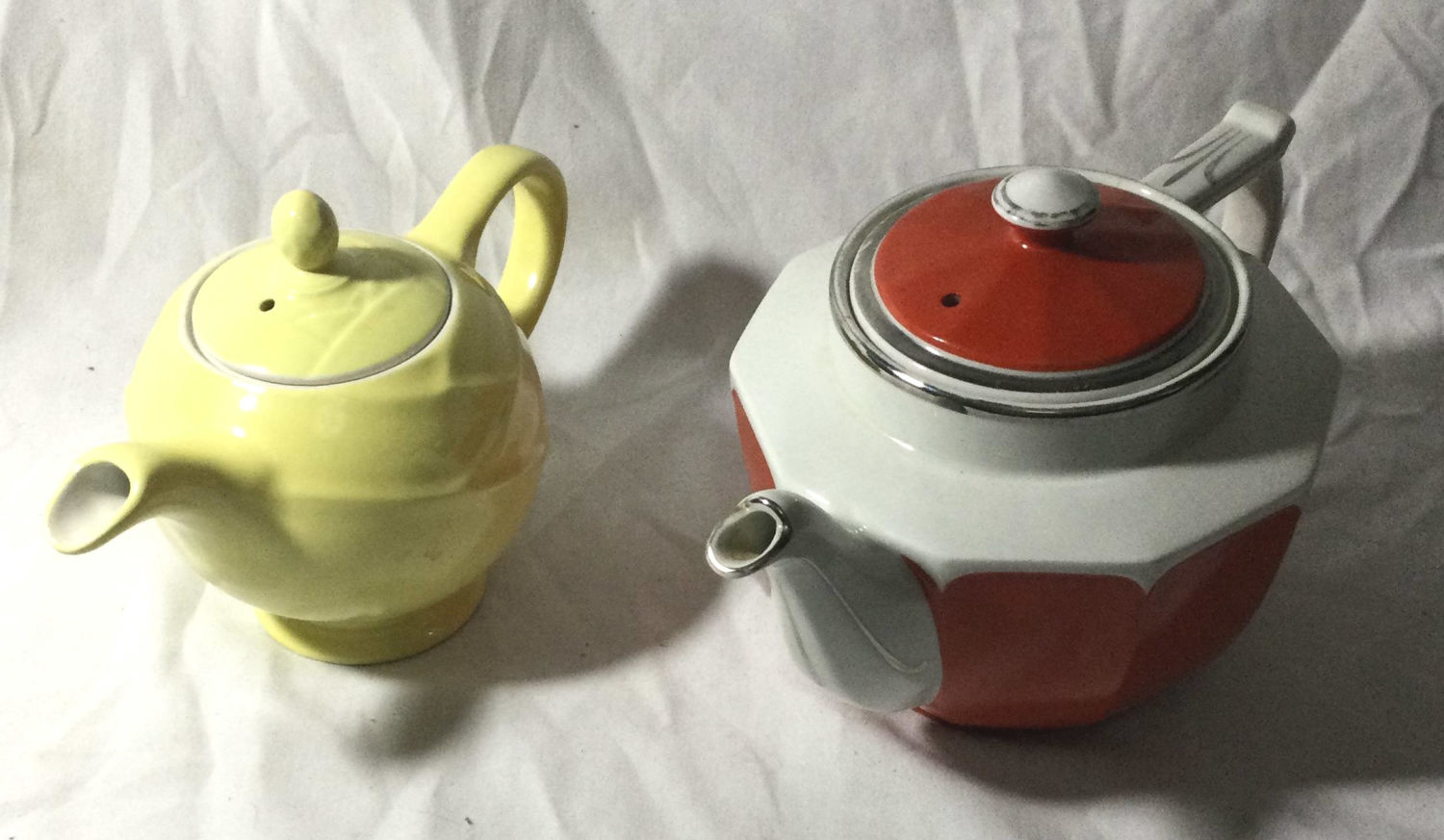 Yellow & bright red and white ,both ceramic ,red measure 7 inches high yellow measure 6 1/4 inches high