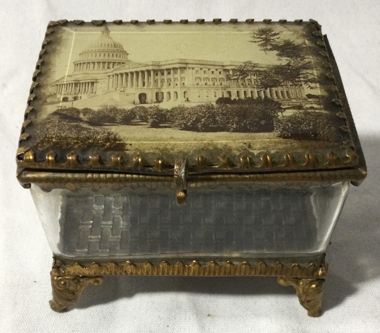 Measures two and three-quarter inches high by 3 1/4 x 2 1/2,With a picture of the capital building