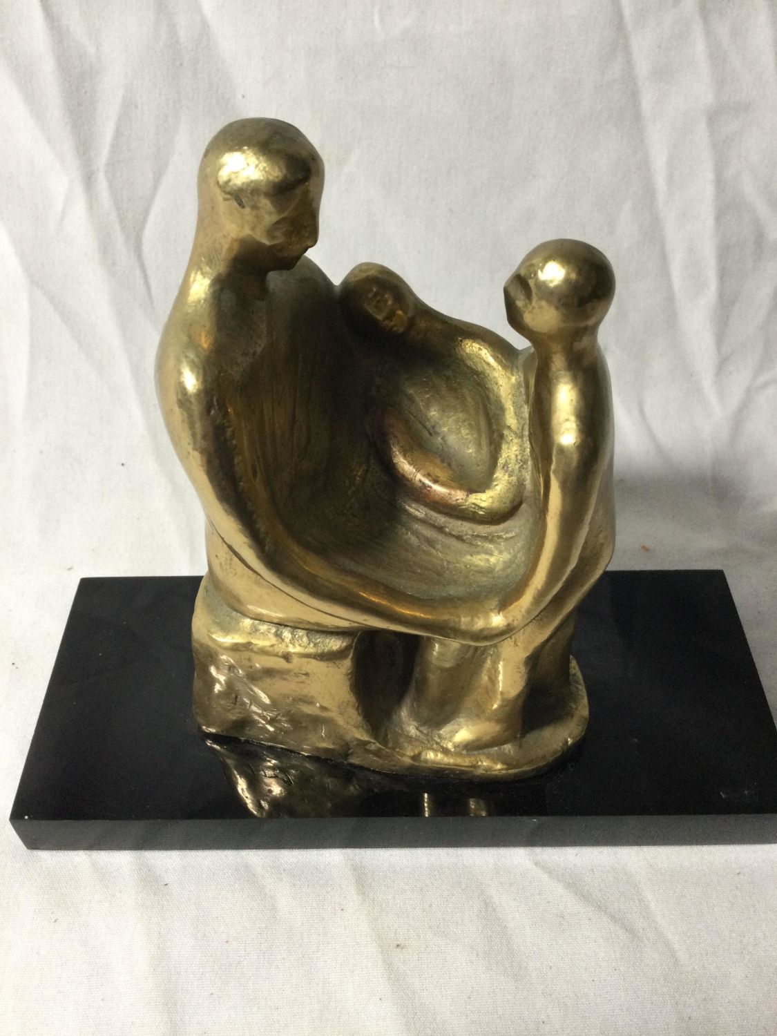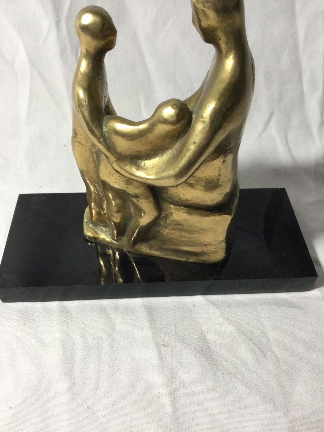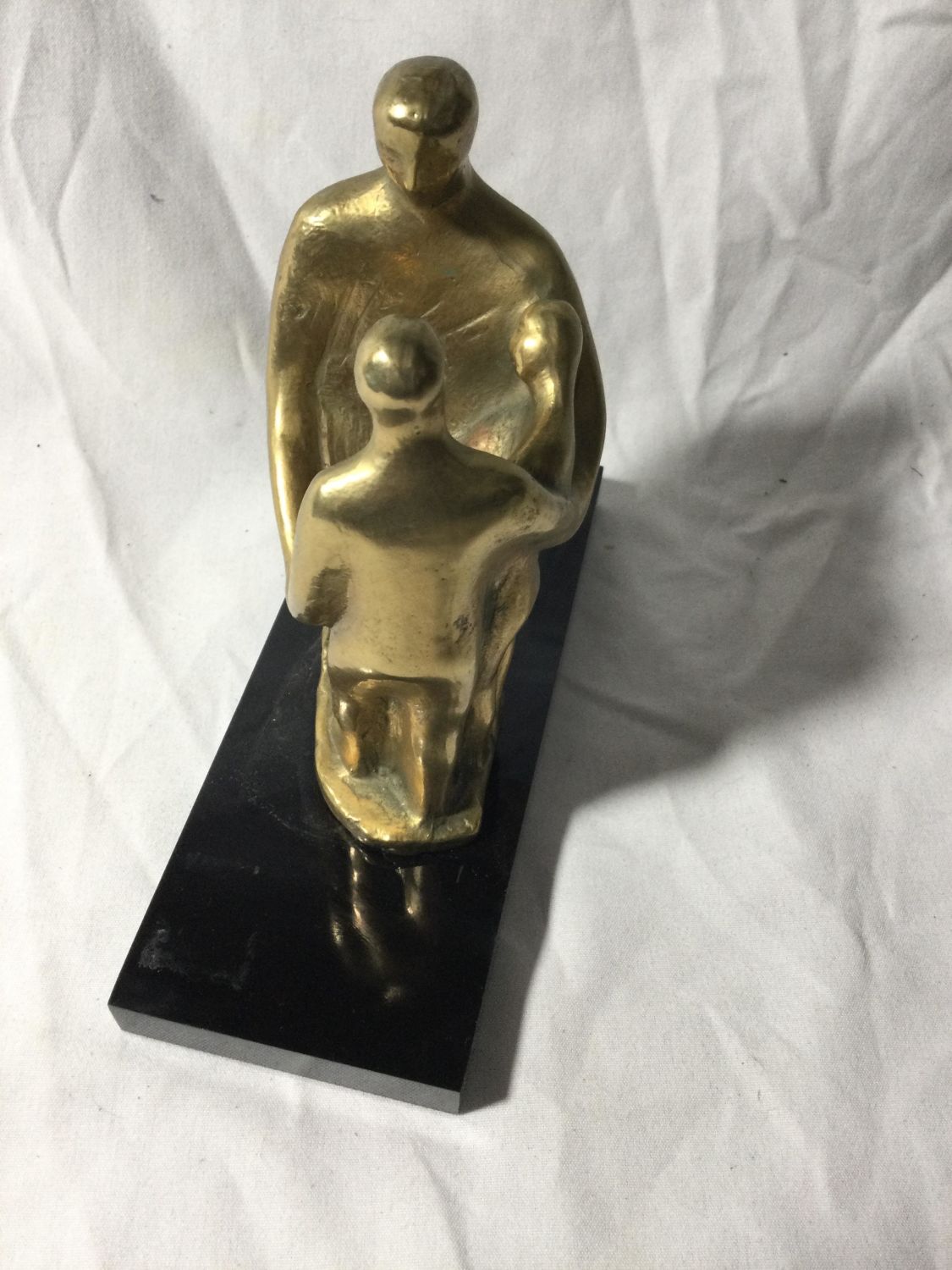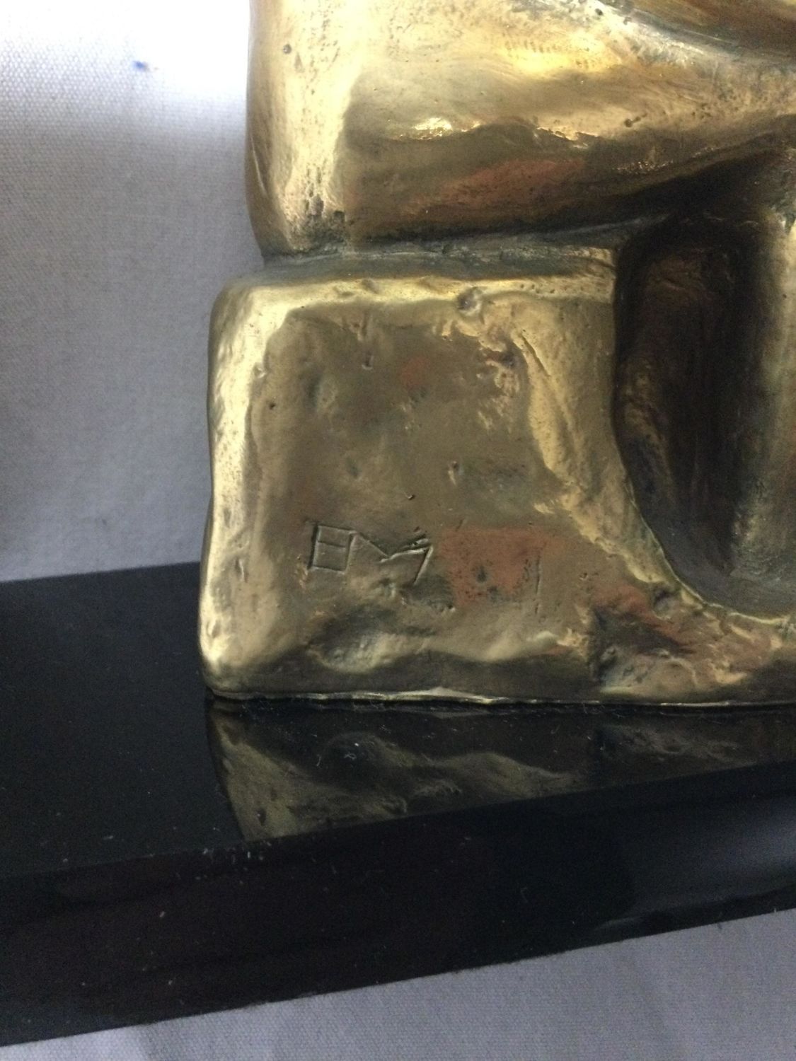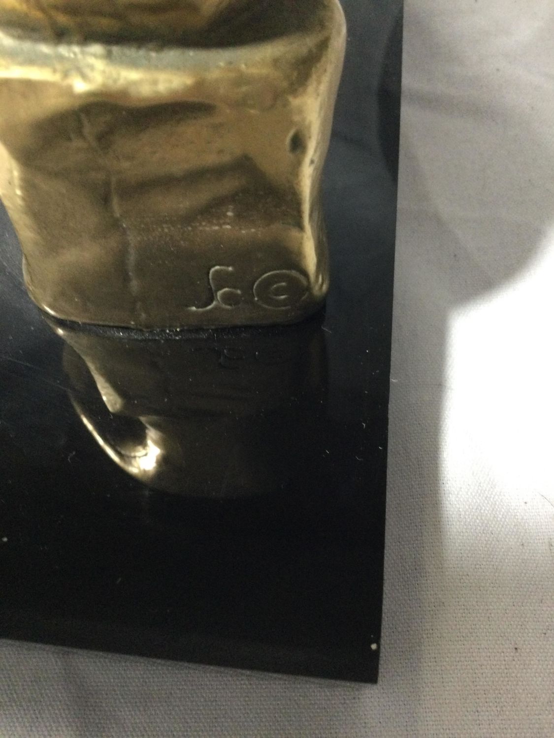 Artist Unkown. Made of brass on a composite Marble like platform.work is initialed.7 1/2 inches high by 8 inches wide