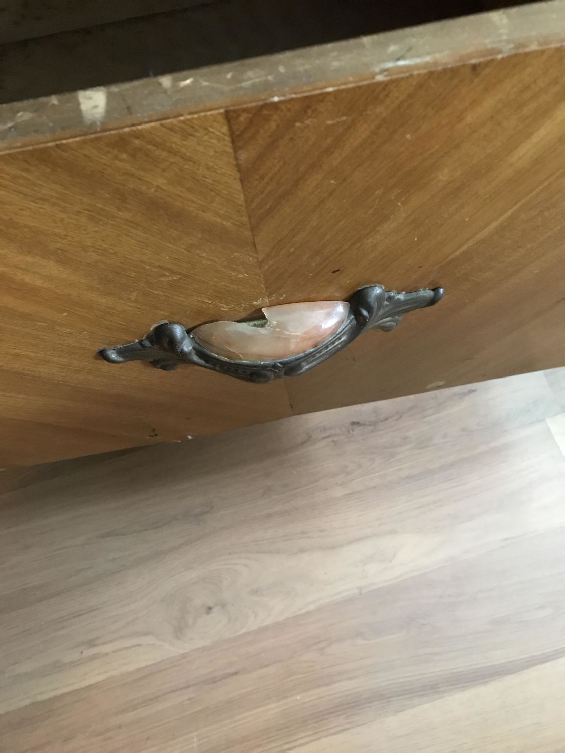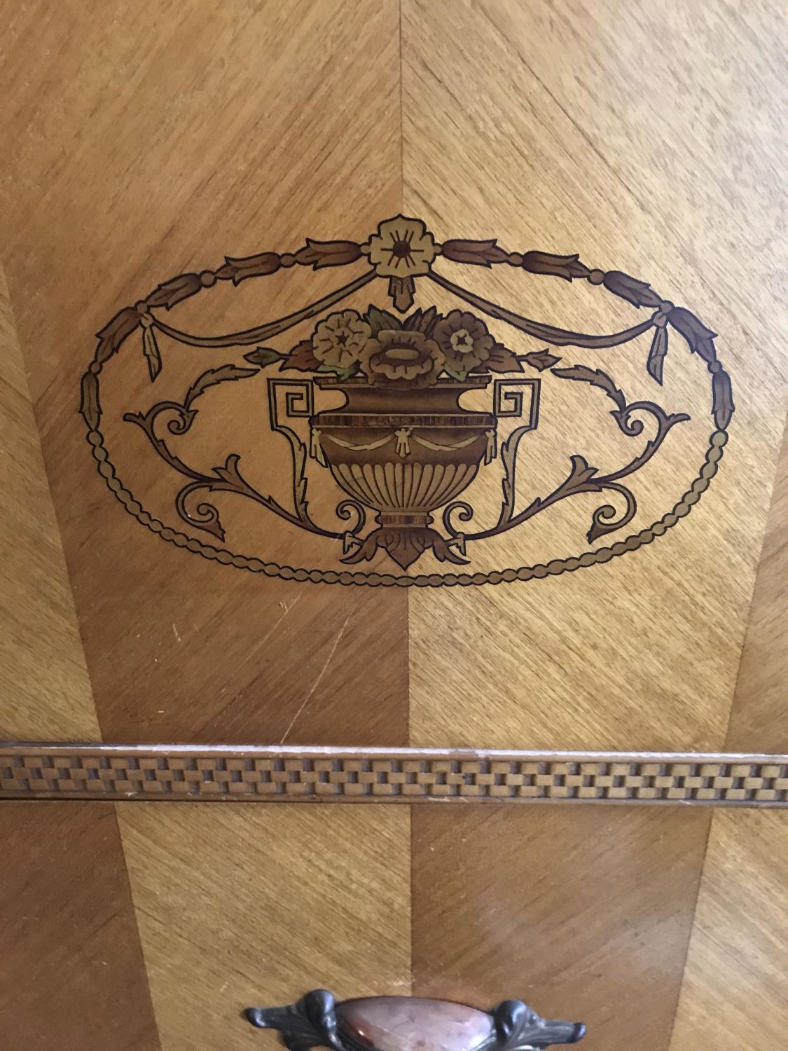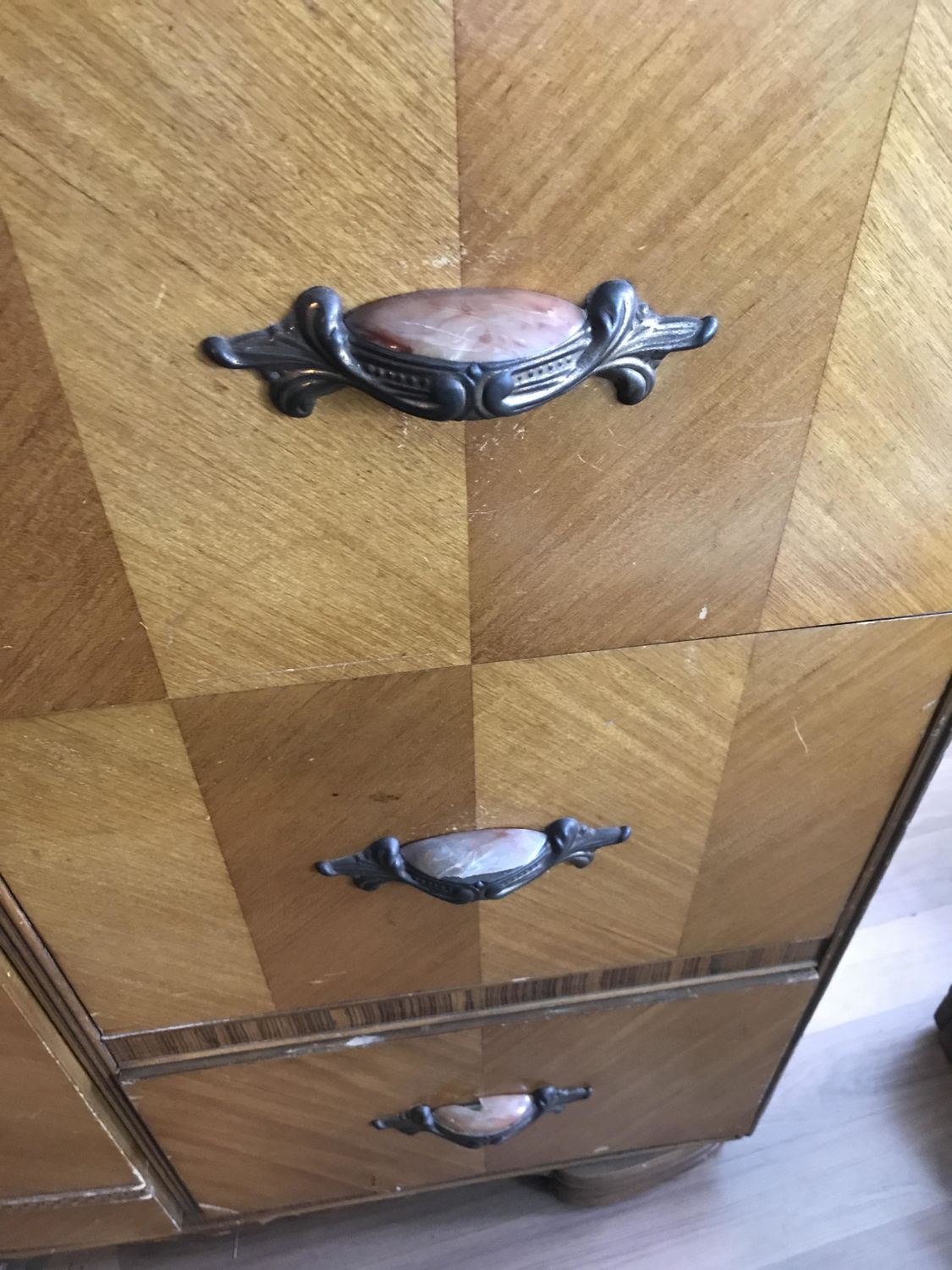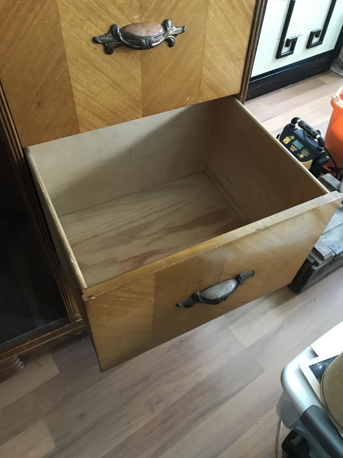 with garment area, measures 62 inches tall by 35 3/4 wide by 21 inches deep. Beautiful handles, one handle broke.