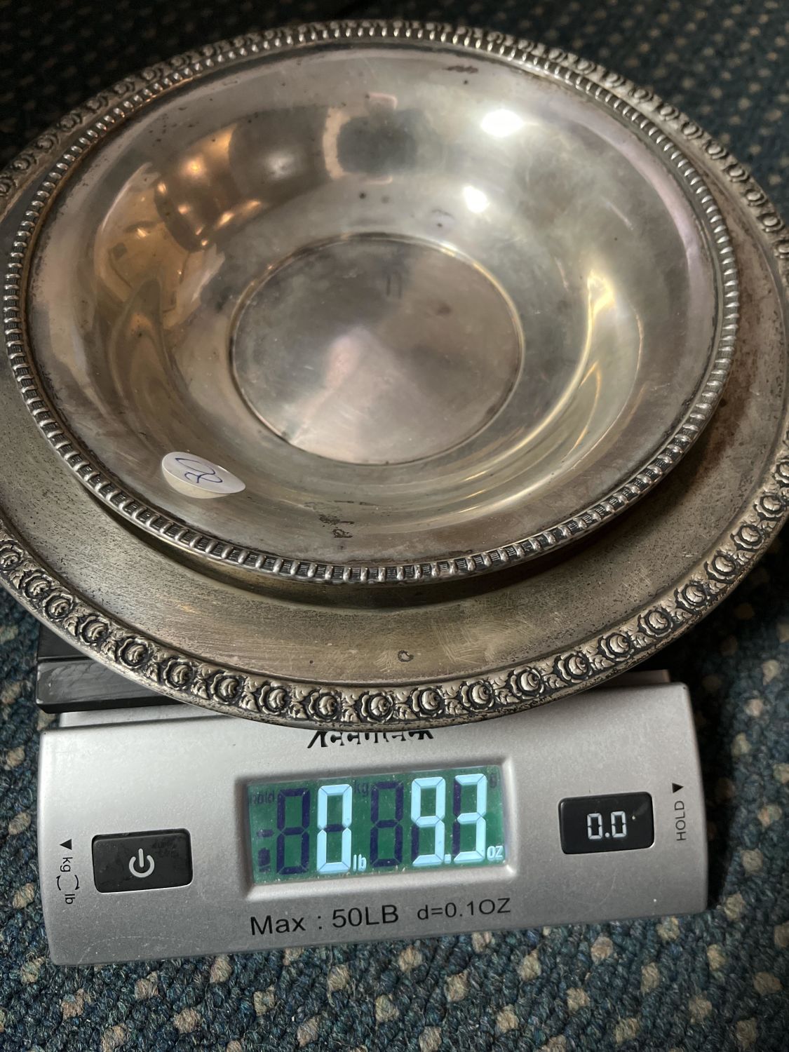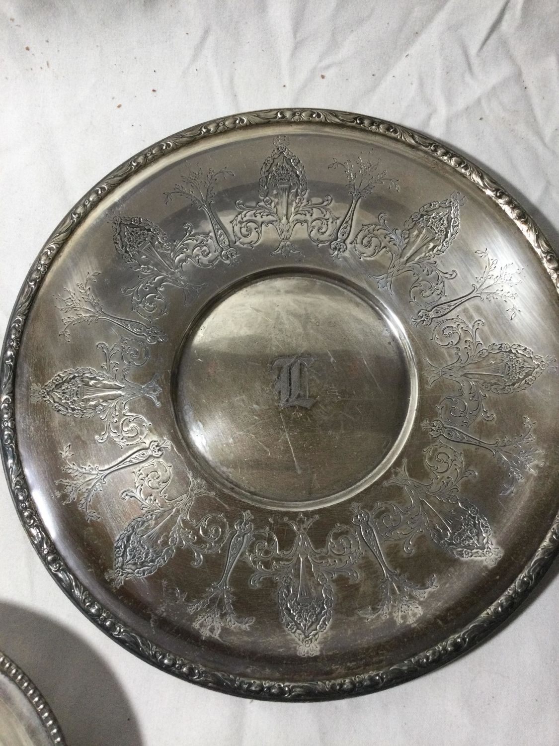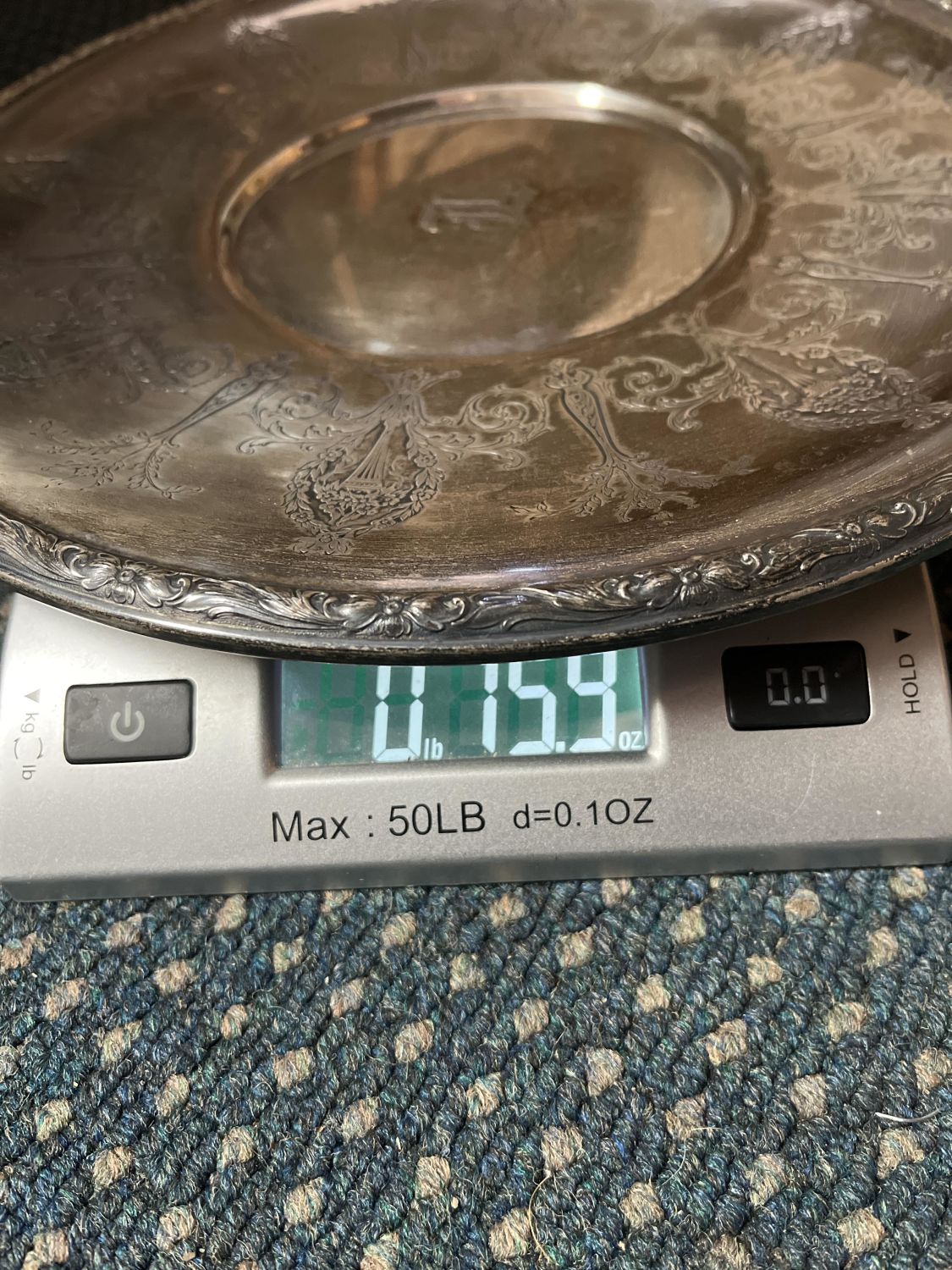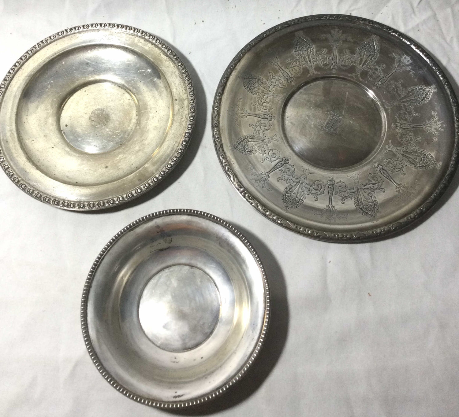 11 inch highly decorated serving dish 9 inch serving dish and 7 inch bowl, largest dish is weighted