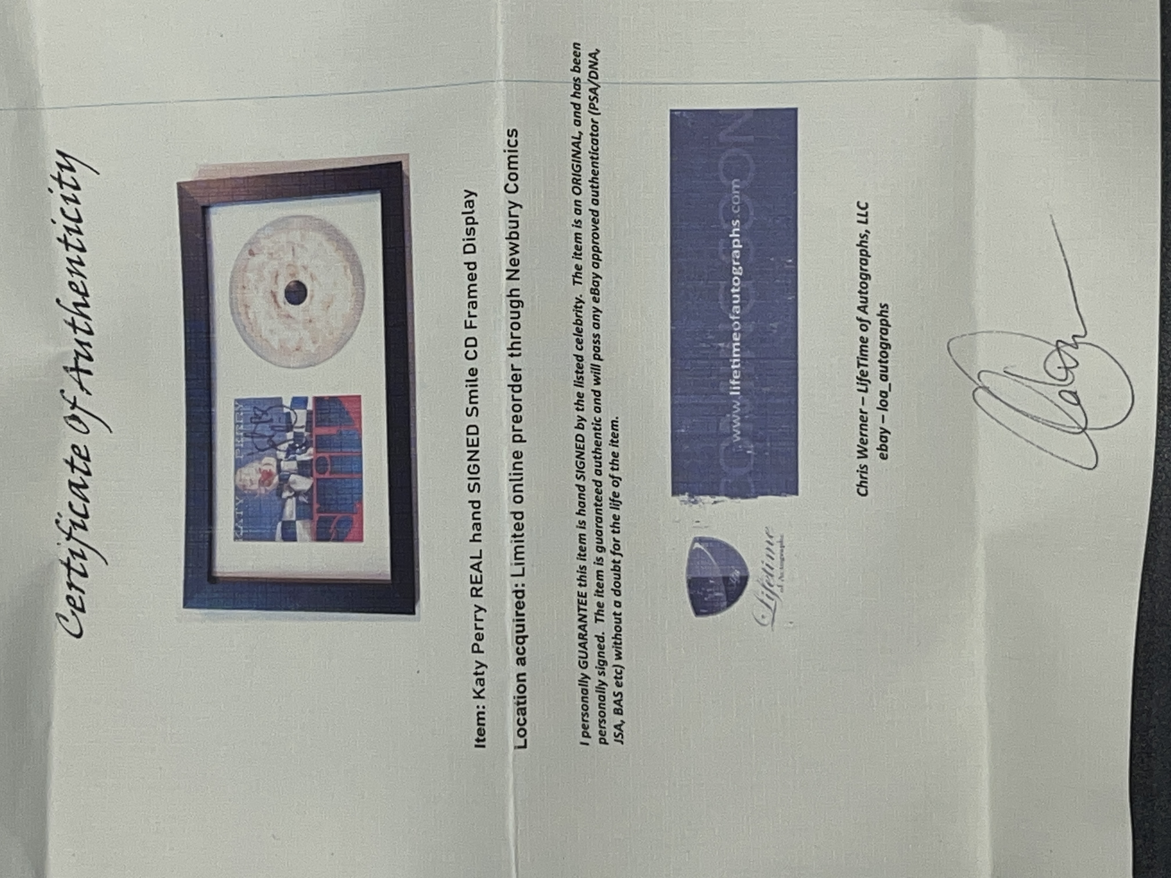 Lot 127: Katy Perry Signed Smile CD Album Framed Display with COA