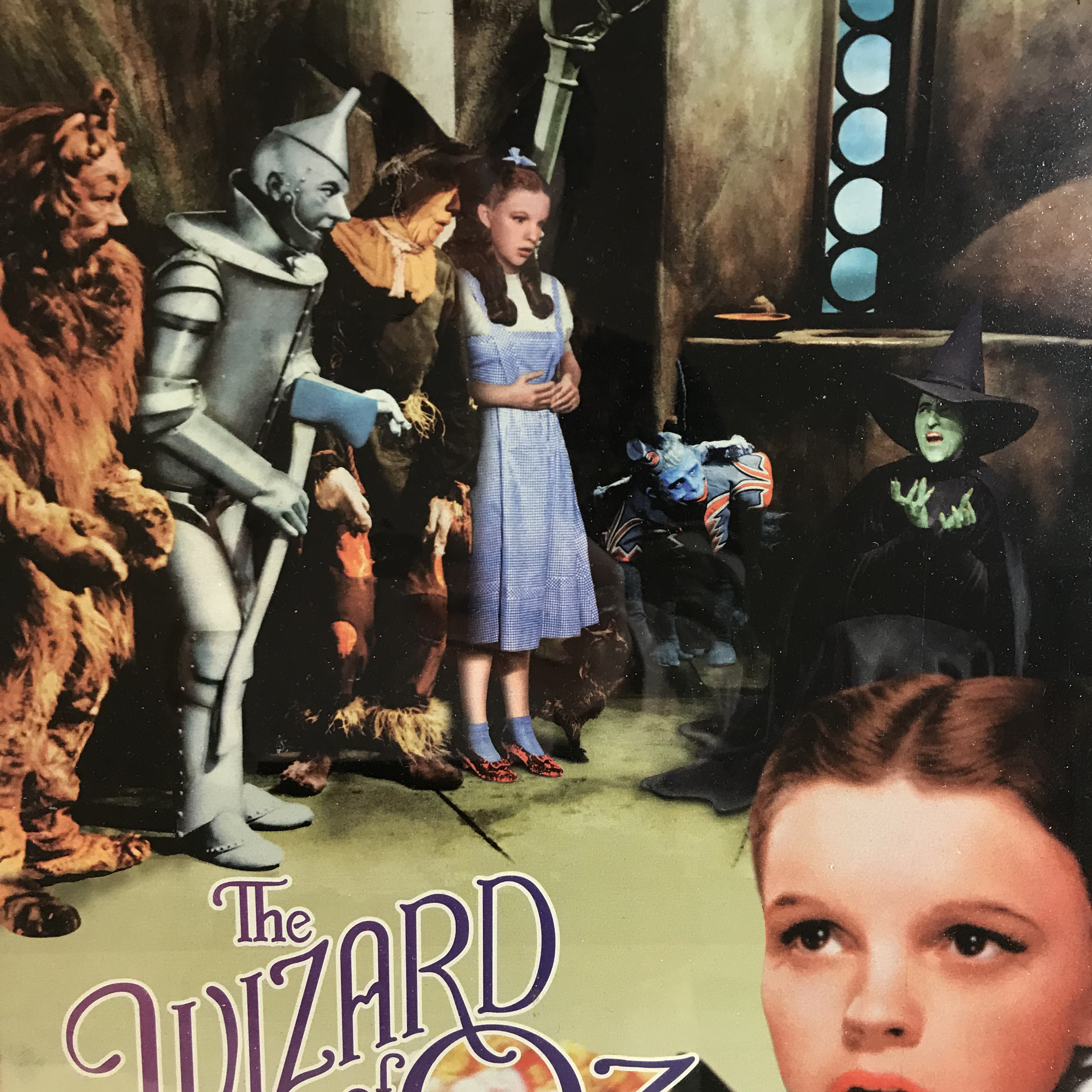 This framed collectible print features a composite of iconic imagery from the 1939 Metro-Goldwyn-Mayer film, The Wizard of Oz. Frame measures 22 1/2 by 18 1/2 inches