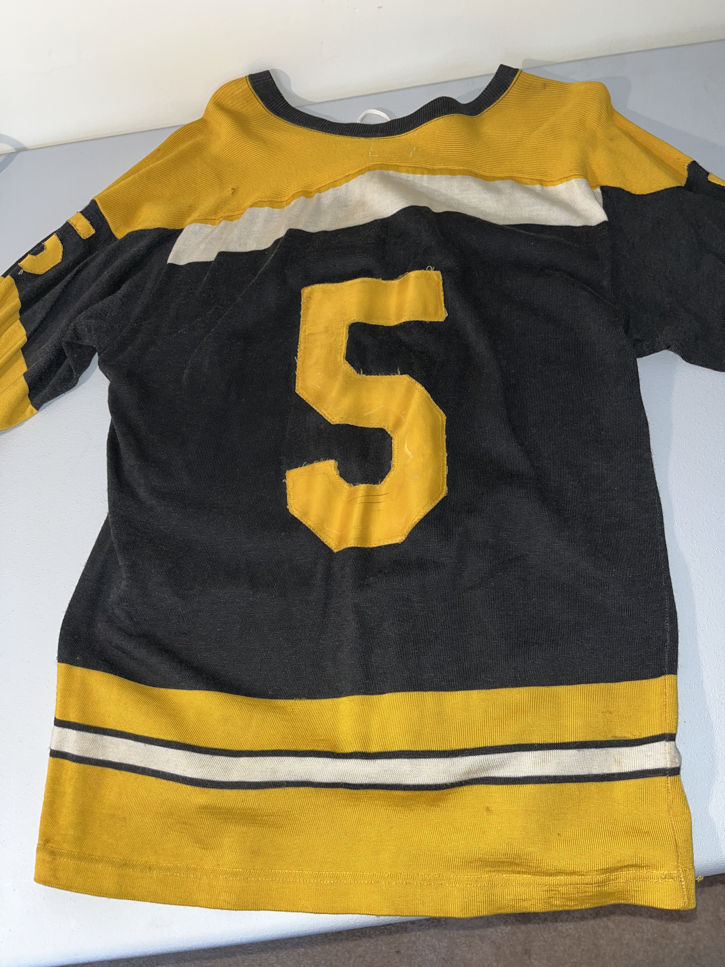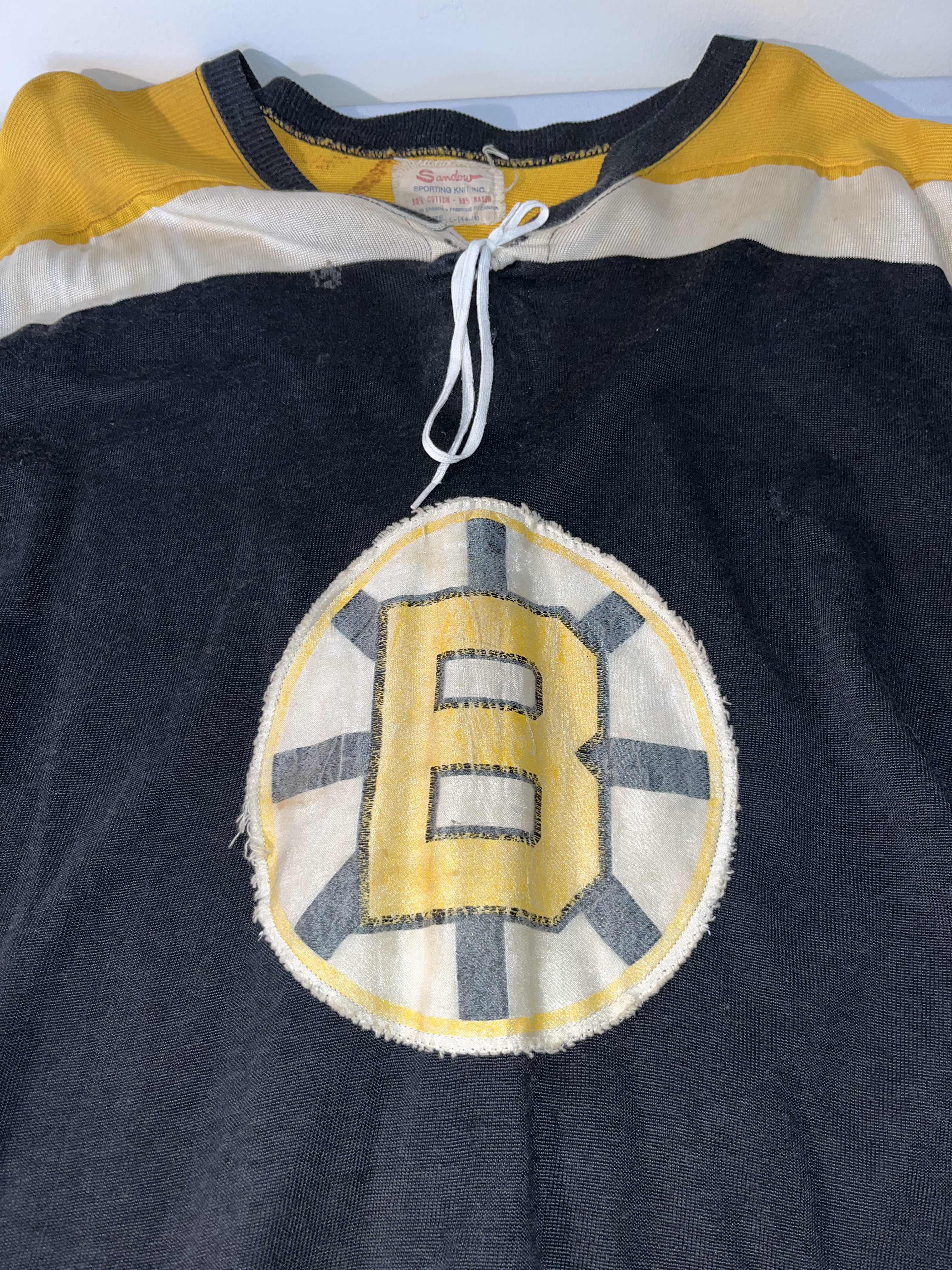 Lot 219b: Vintage Boston Bruins Sandow Sporting Knit Hockey Jersey Number 5 Size Large