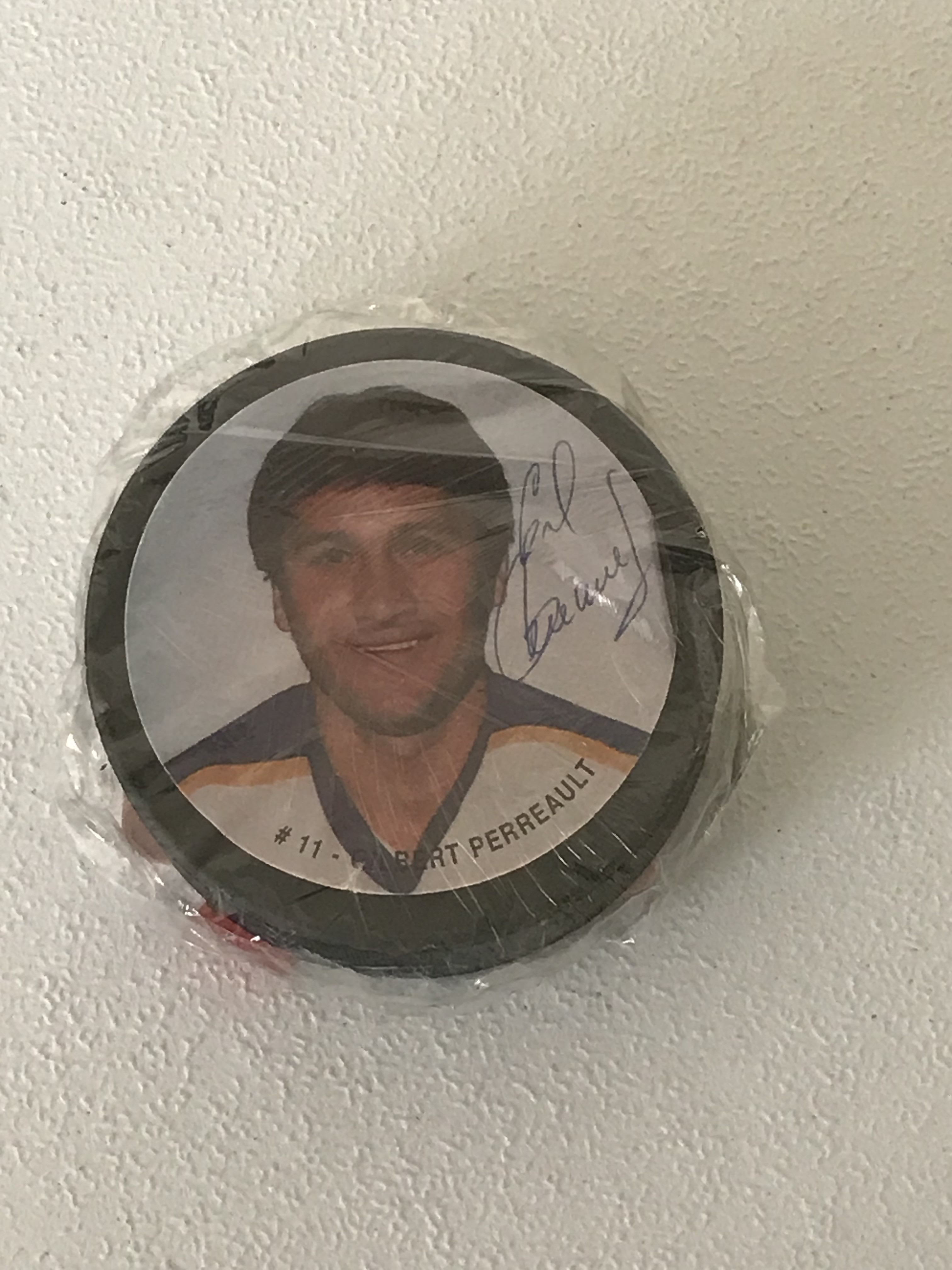 Lot 230a: Signed Gilbert Perreault Buffalo Sabres Souvenir Portrait Hockey Puck