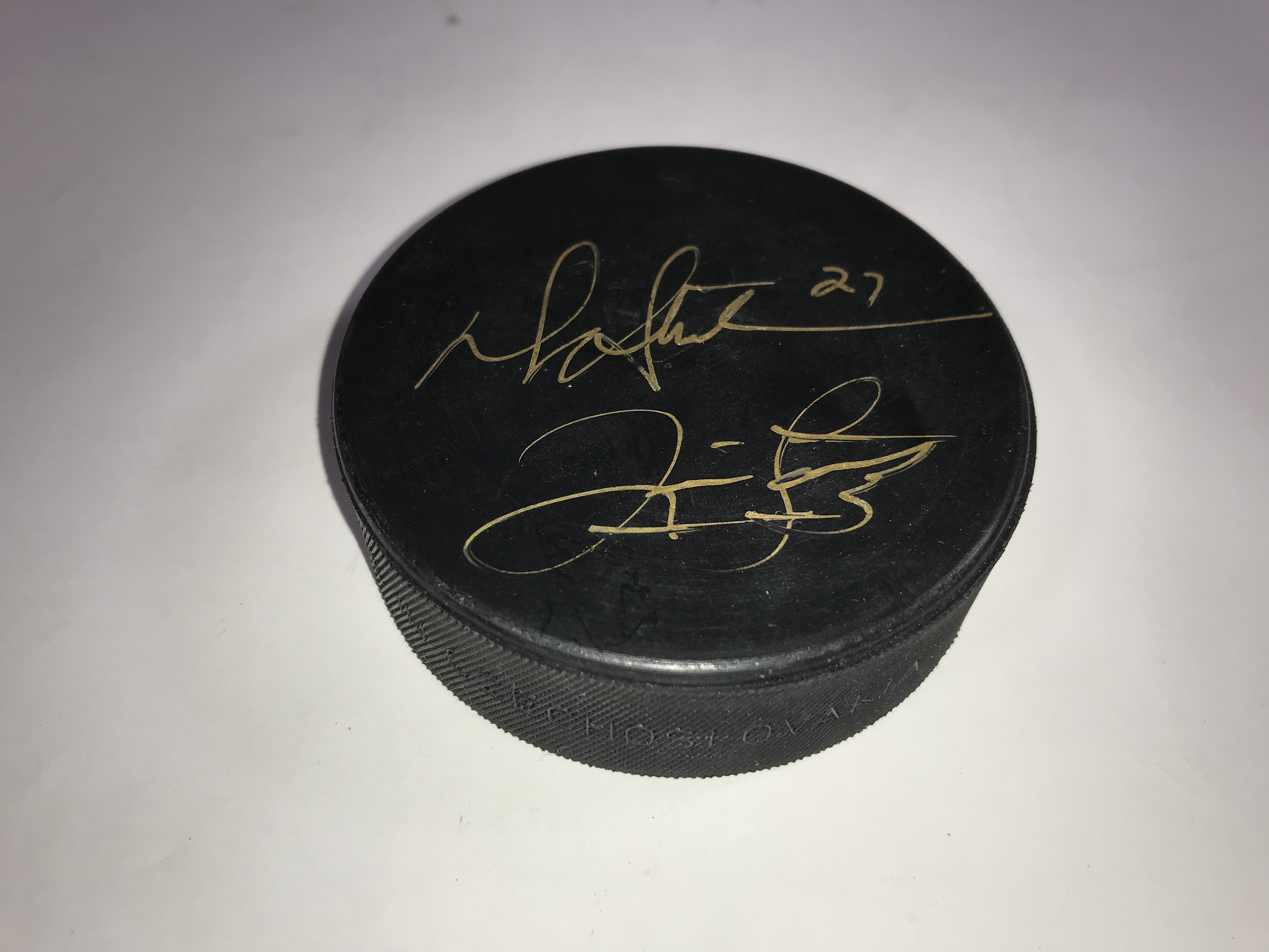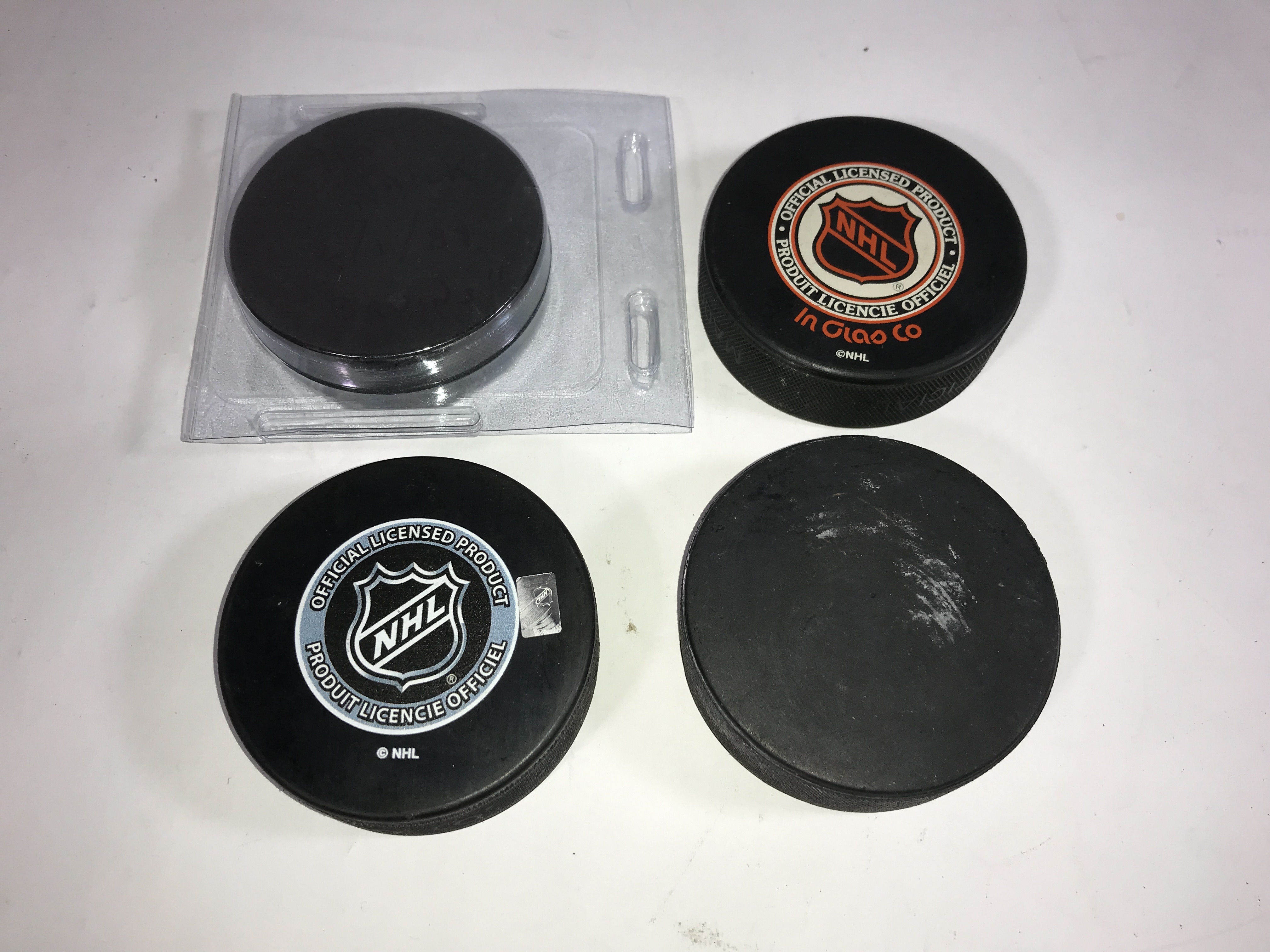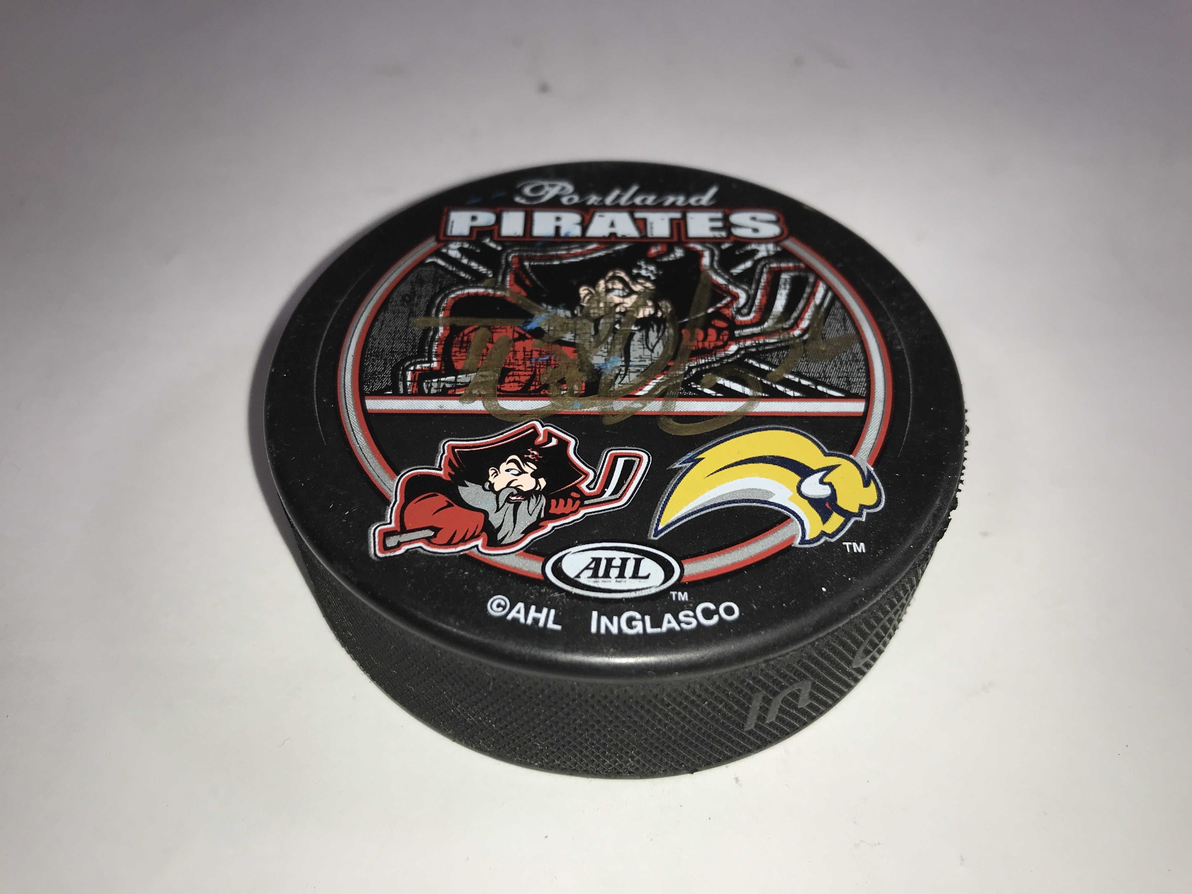 The primary highlight is a 2016 World Cup of Hockey USA team puck signed in silver-tone ink and numbered 74. This item is authenticated by a Fanatics hologram ZZ1132251 and is presented in an Ultra PRO display case. The group also features an AHL Portland Pirates souvenir puck signed in gold-tone ink, a 2016 NHL Draft Buffalo puck, and a Topps Super Skills puck presented by Starter. The assortment includes an orange NHL licensed puck by Trench Mfg., an orange Cooper official puck, and a Nichols School Tornadoes puck. One puck from Realskate Hockey Supply Company is marked HAT TRICK and dated 2/1/89. Several examples bear unidentified signatures in silver and gold-tone ink with associated player numbers including 31, 27, and 8. One puck is designated Hockey Heroes of Tomorrow 1992-1993 with a signature and number 31.