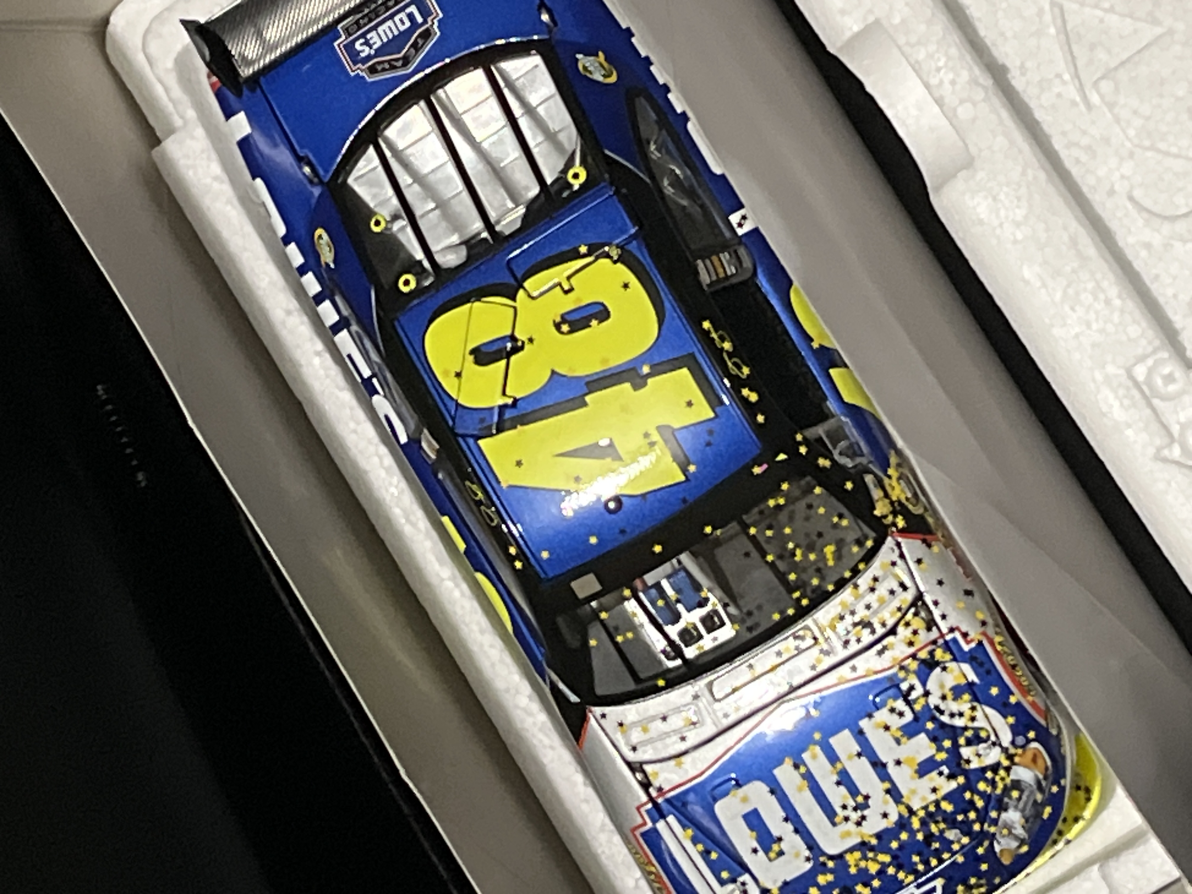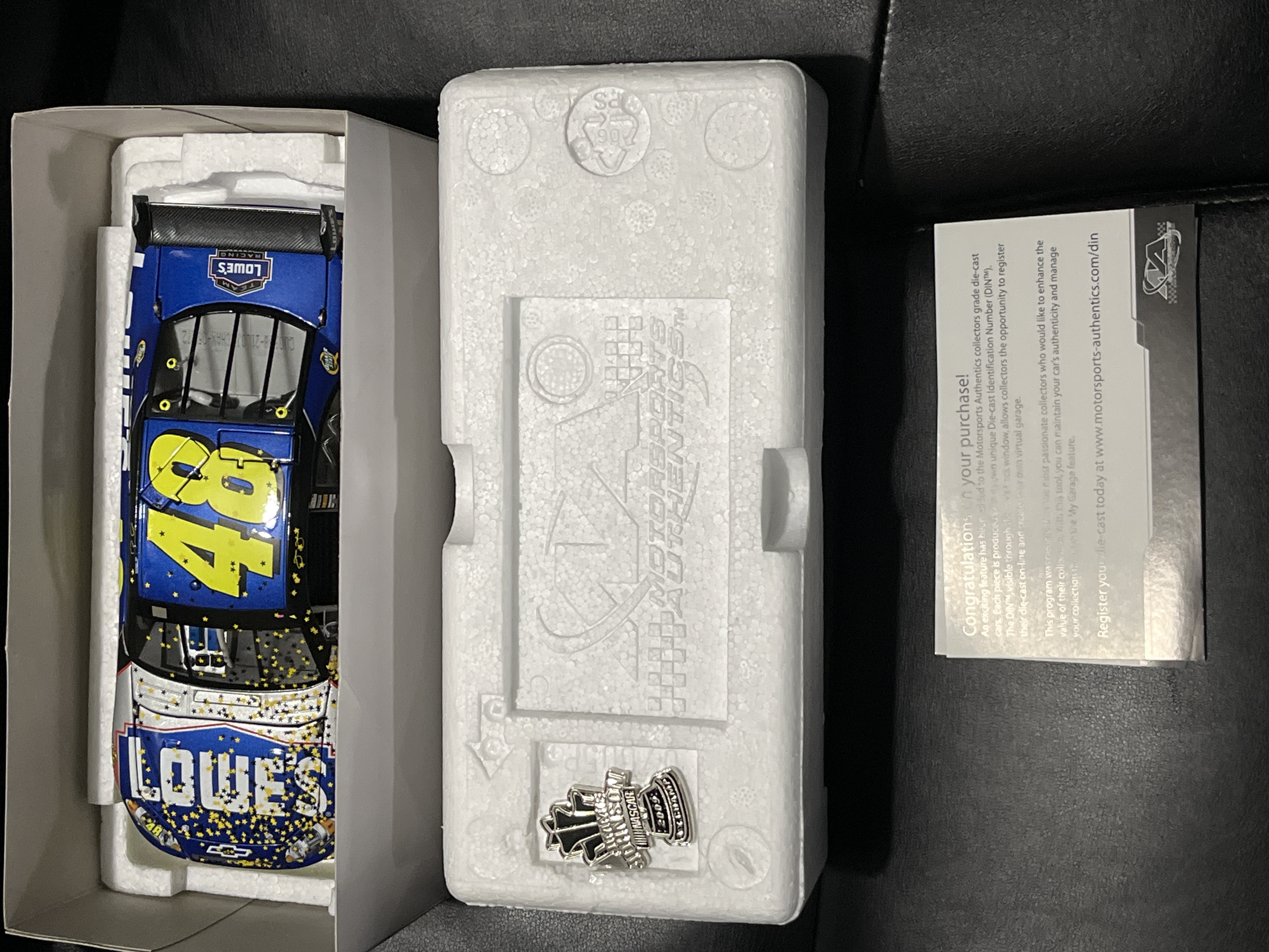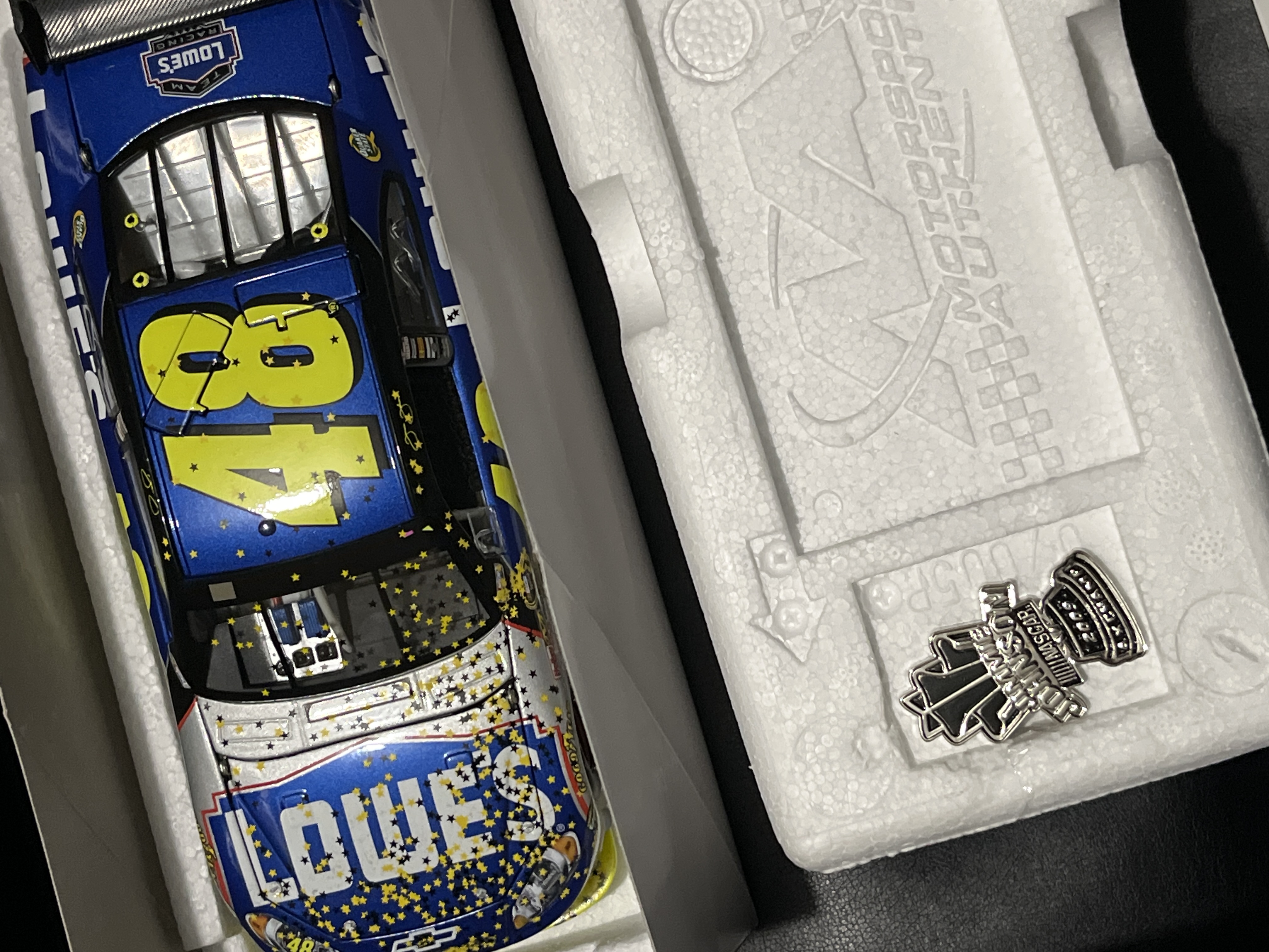 Action Racing Collectables Platinum Series 1:24 scale die-cast model of Jimmie Johnson’s #48 Lowe’s Chevrolet Impala SS. This Raced Version collectible commemorates Johnson’s 2009 NASCAR Sprint Cup Championship, marking his fourth consecutive title from 2006 to 2009. The box side panel identifies this as a limited edition production, specifically numbered 1 of 5,572