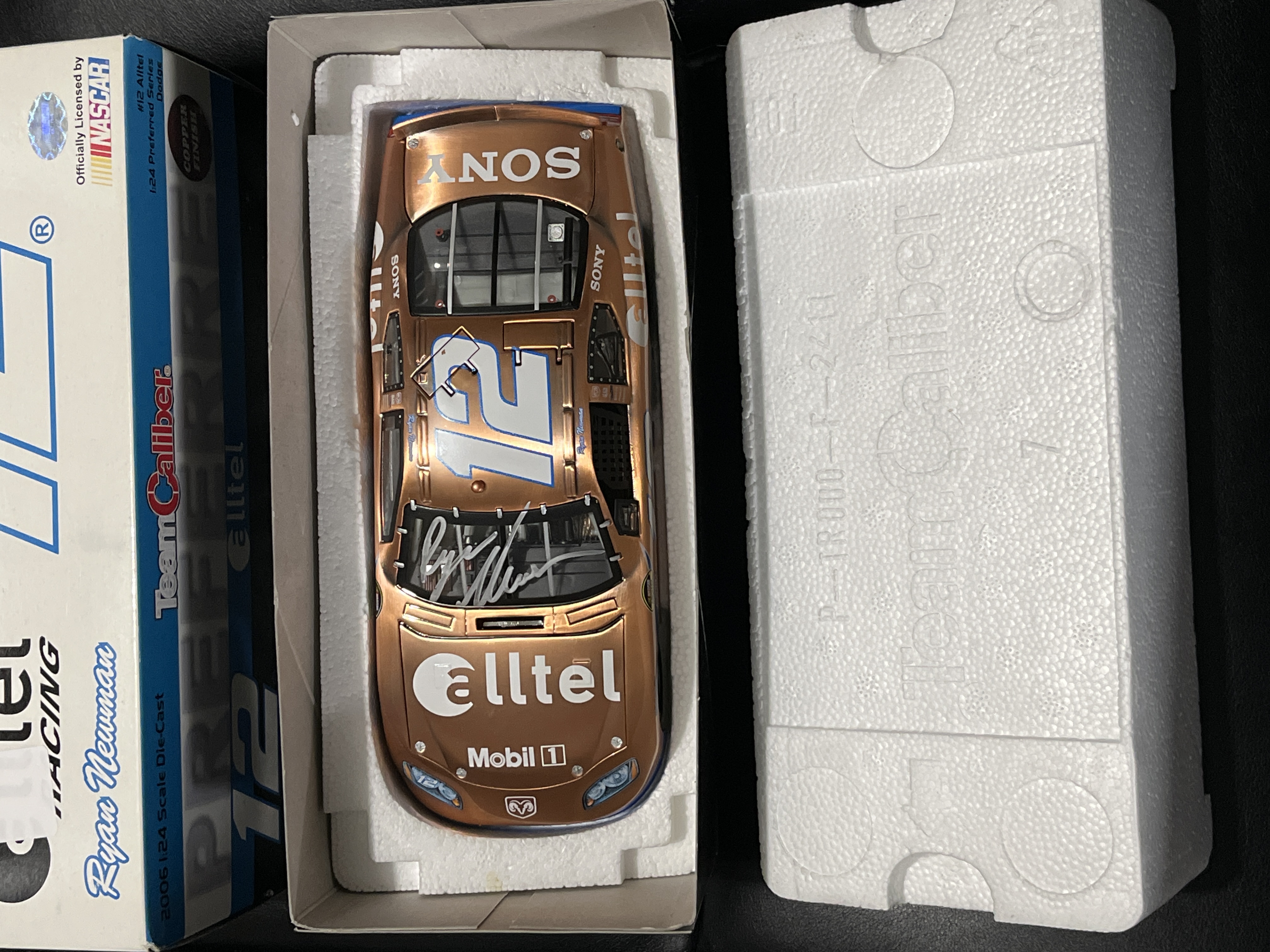 Signature on Windshield. 1:24 scale die-cast model car is produced by Team Caliber as part of the 2006 Preferred Series. The item represents the #12 Alltel Racing Dodge driven by Ryan Newman. Preferred Series 1:24 Scale