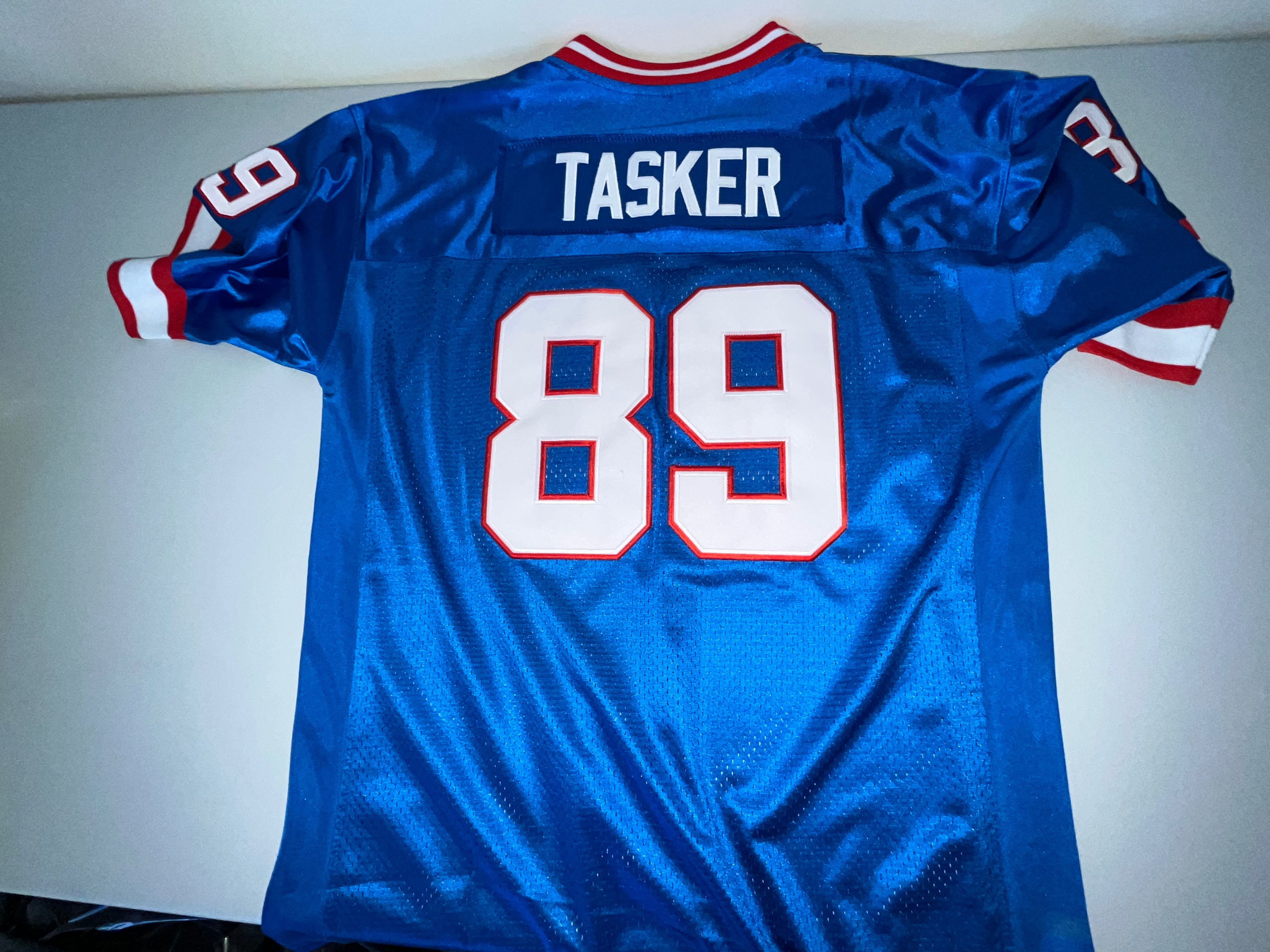 Custom-manufactured fan jersey honoring Buffalo Bills legend Steve Tasker, Size Large
