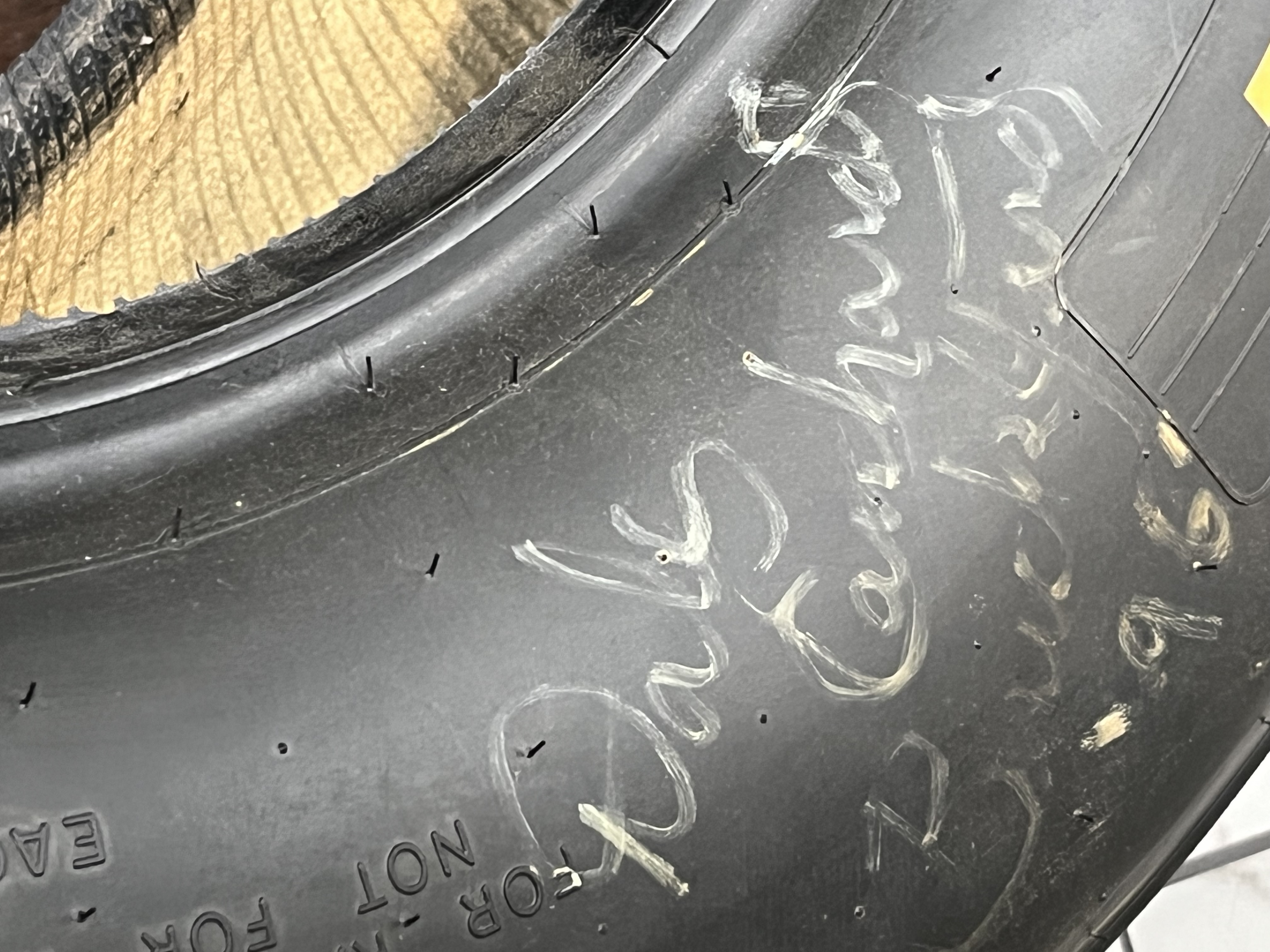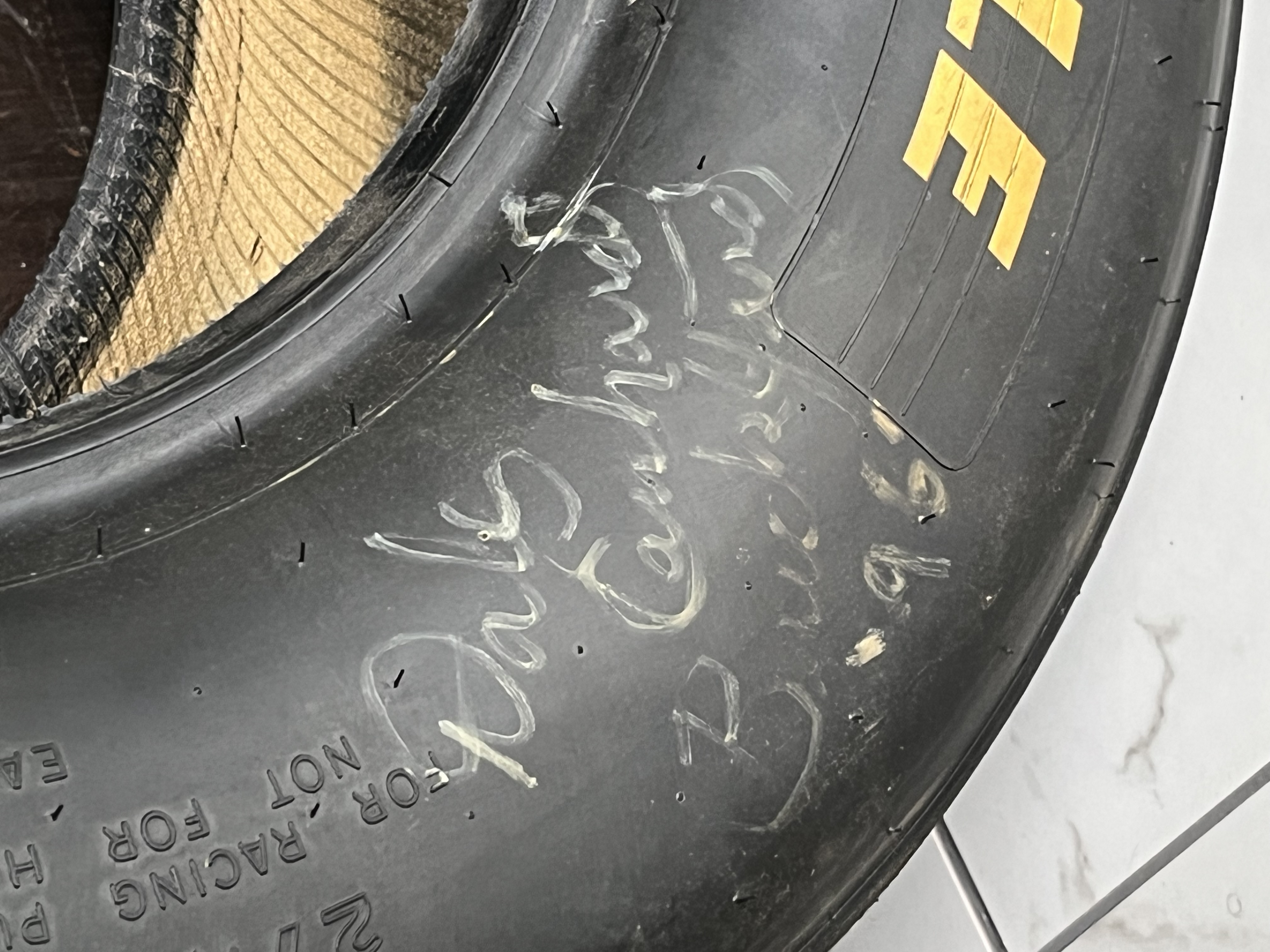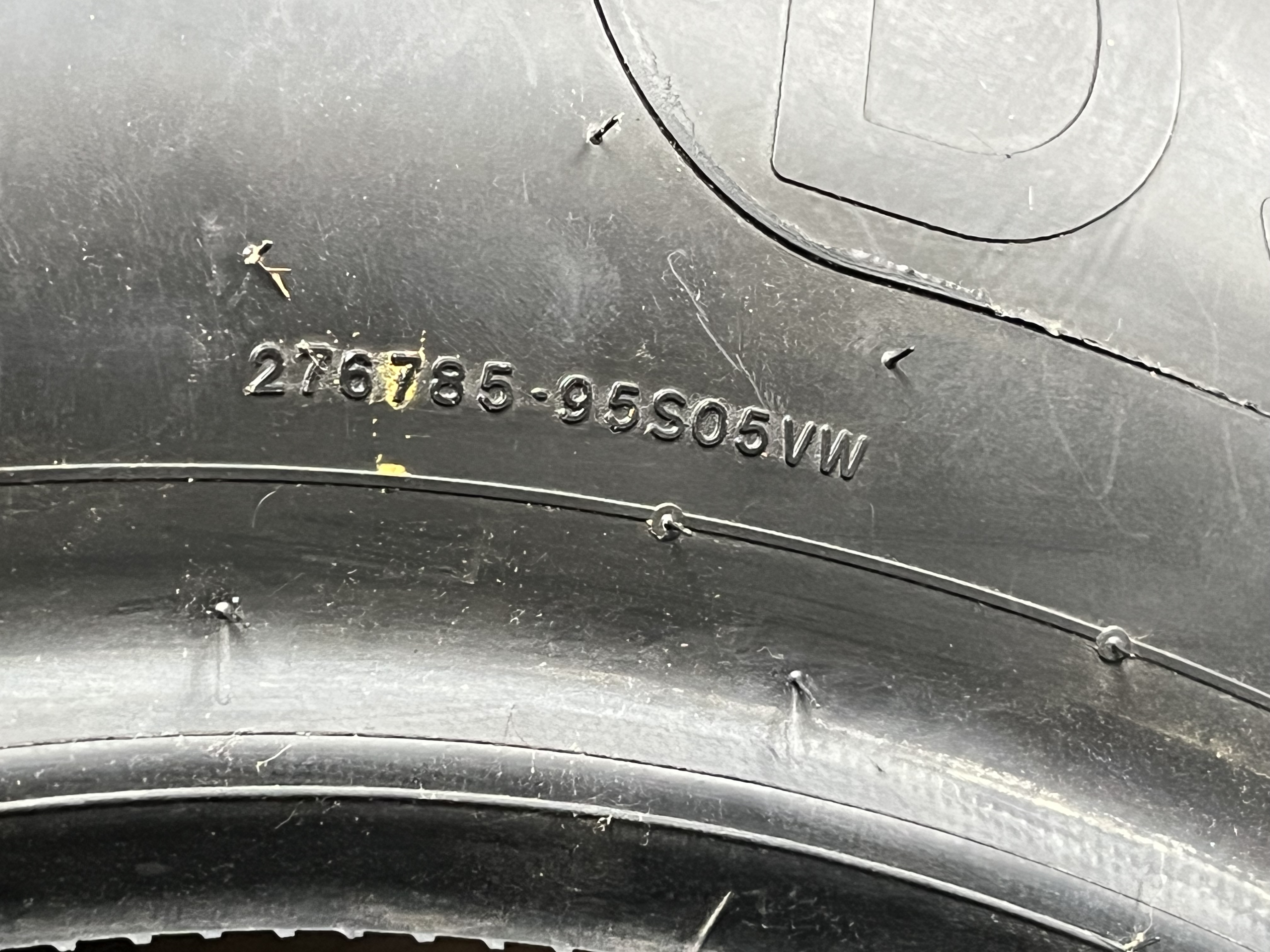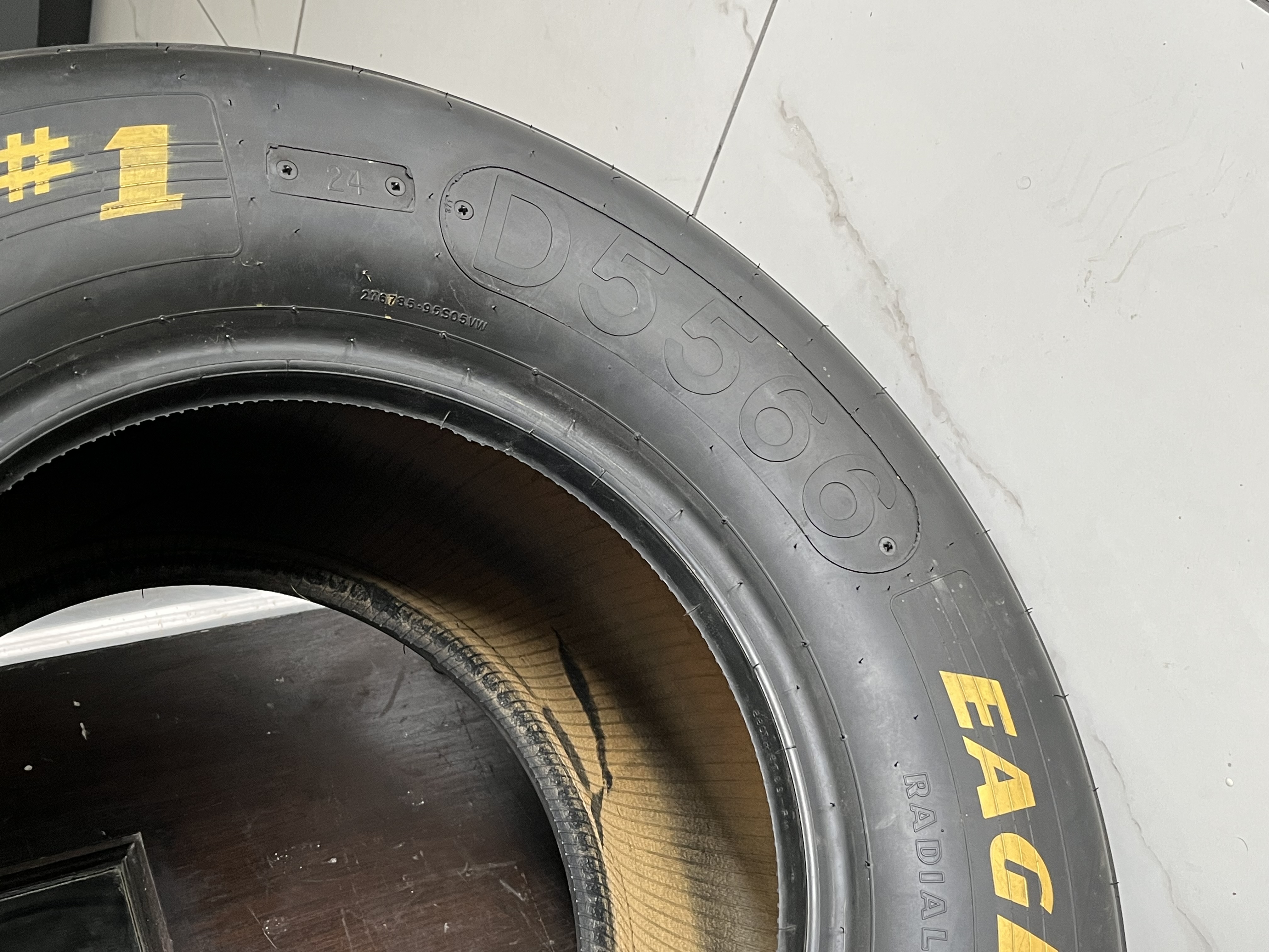 Goodyear Eagle #1 radial slick racing tire, size 27.5×12.0-15, featuring yellow sidewall lettering and embossed technical specifications D5566 and serial code 276785-95S05VW. The sidewall bears an unverified white paint pen signature reading Dale Earnhardt with the inscription B Pocono 96, while the tread surface displays a hand-painted numeral 3. This race-used component includes rubber pickup and surface scuffing consistent with professional track use.