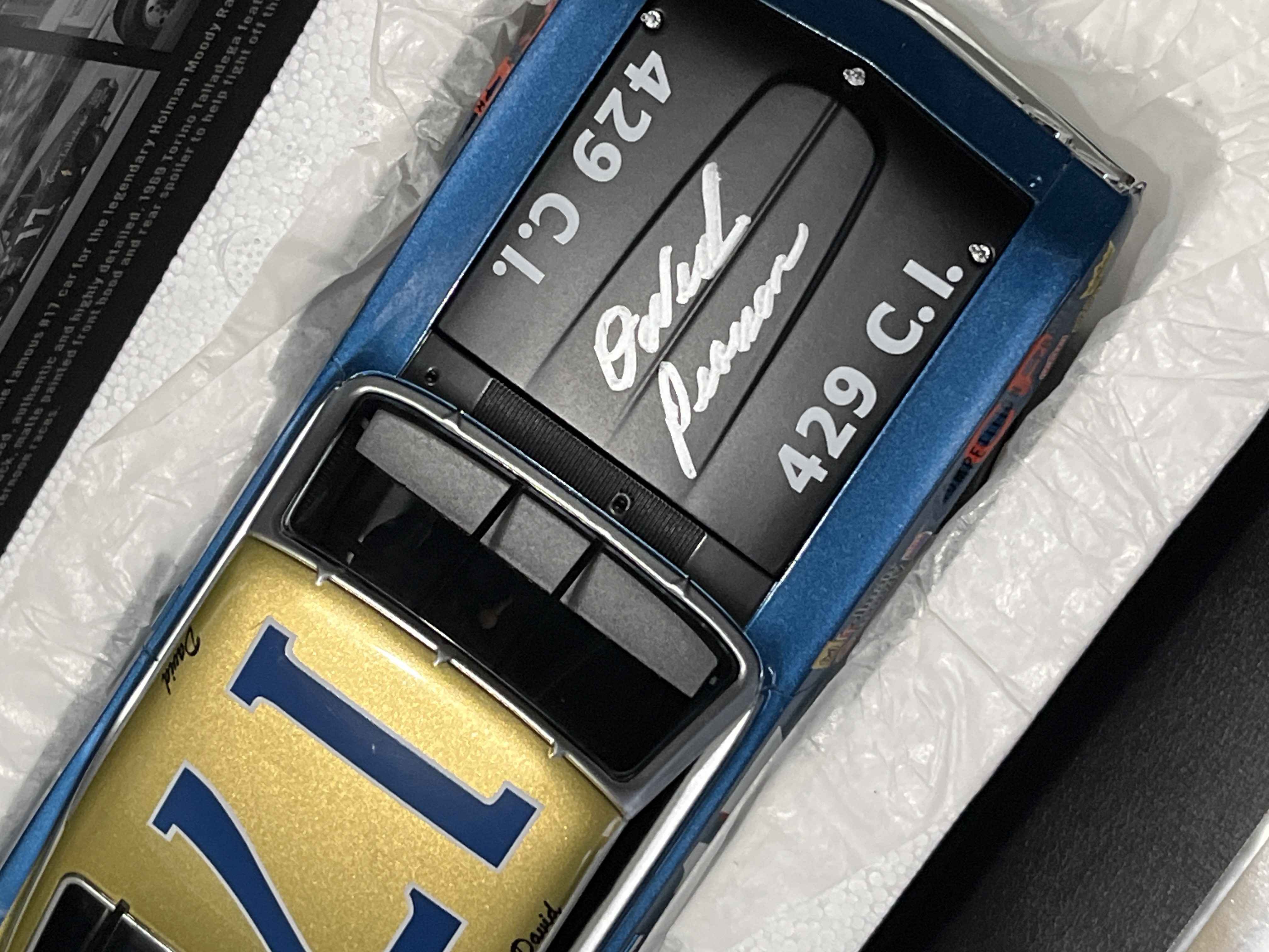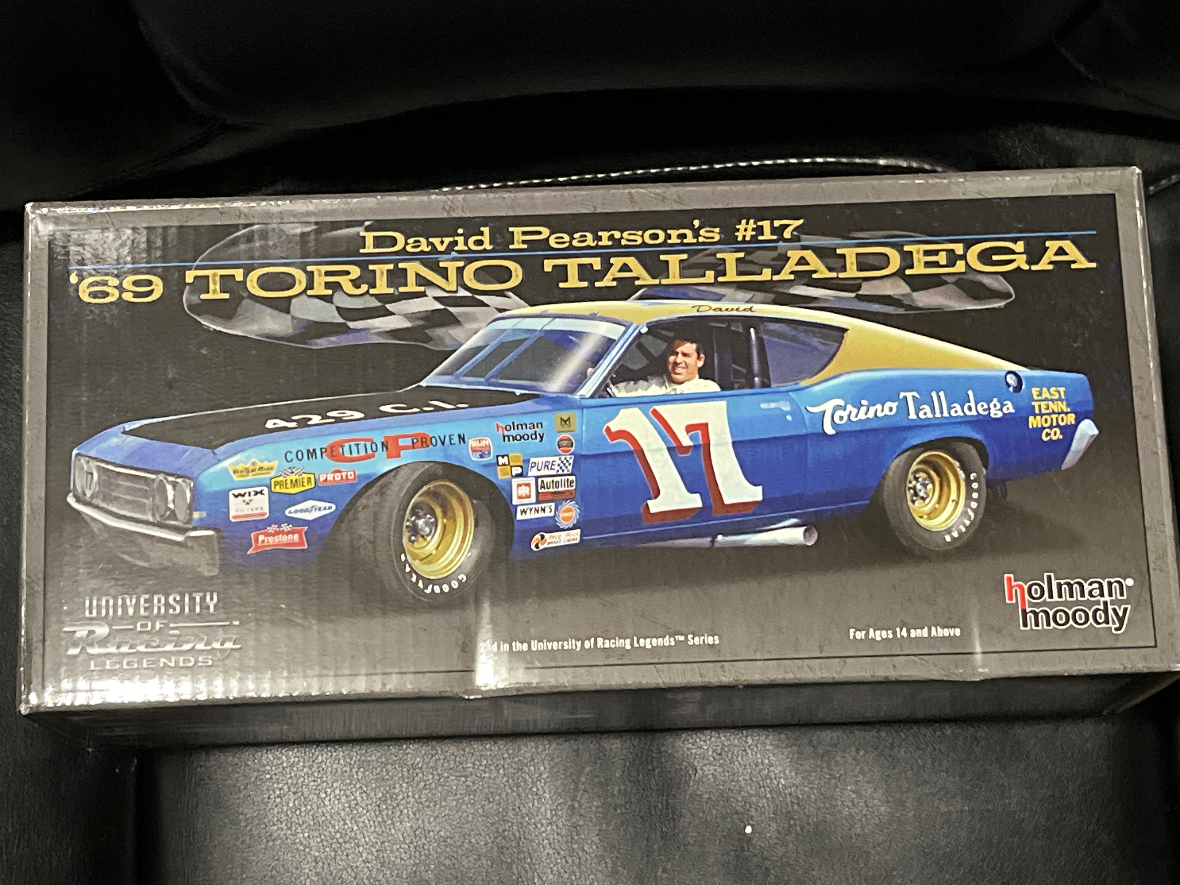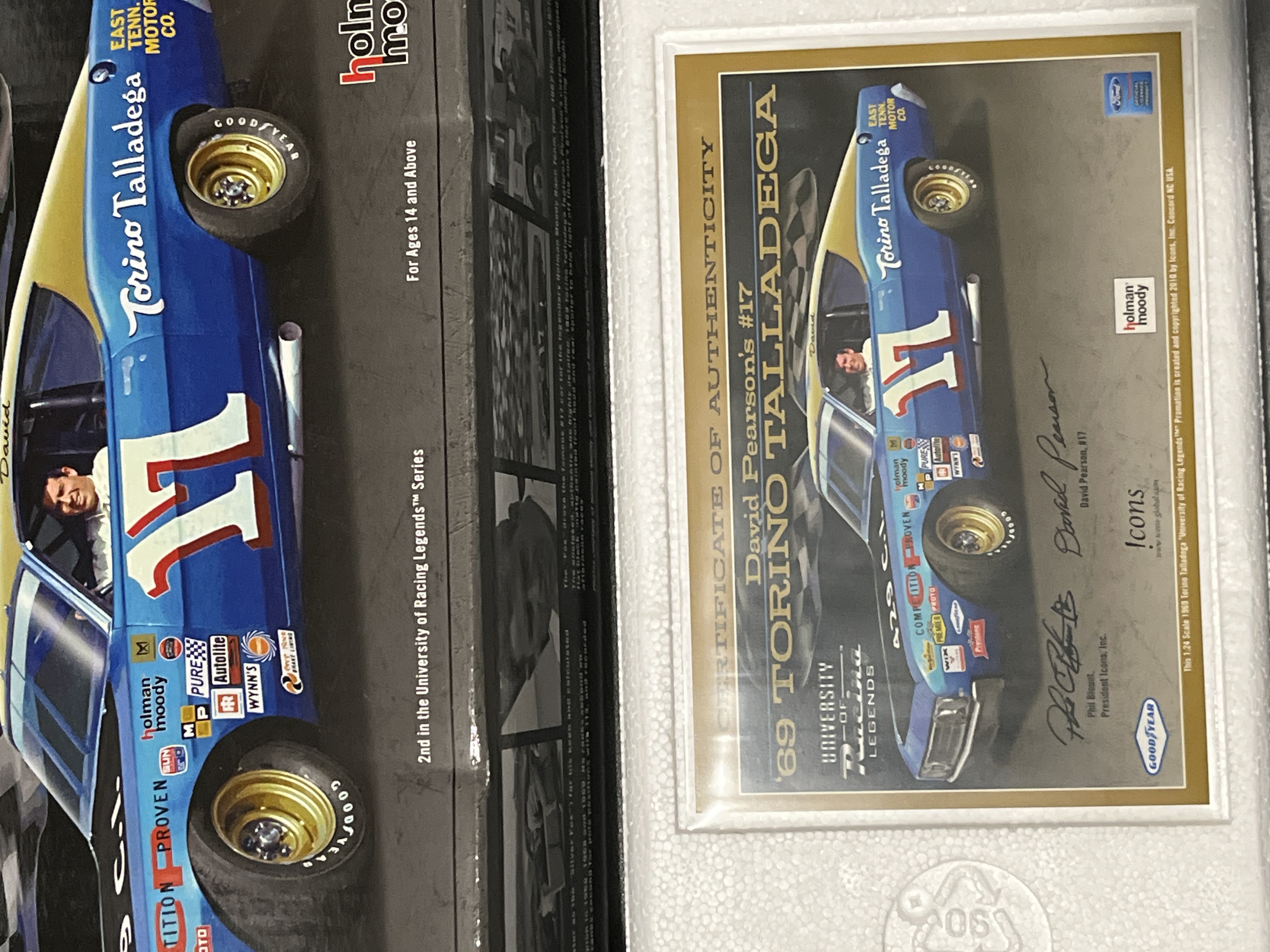 Authenticated by Icons, Inc. University of Racing Legends. A 1:24 scale model produced by Icons, Inc. for the University of Racing Legends series, commemorating David Pearson’s championship-winning 1969 Ford Torino Talladega. Approximately 8.5 inches in length.