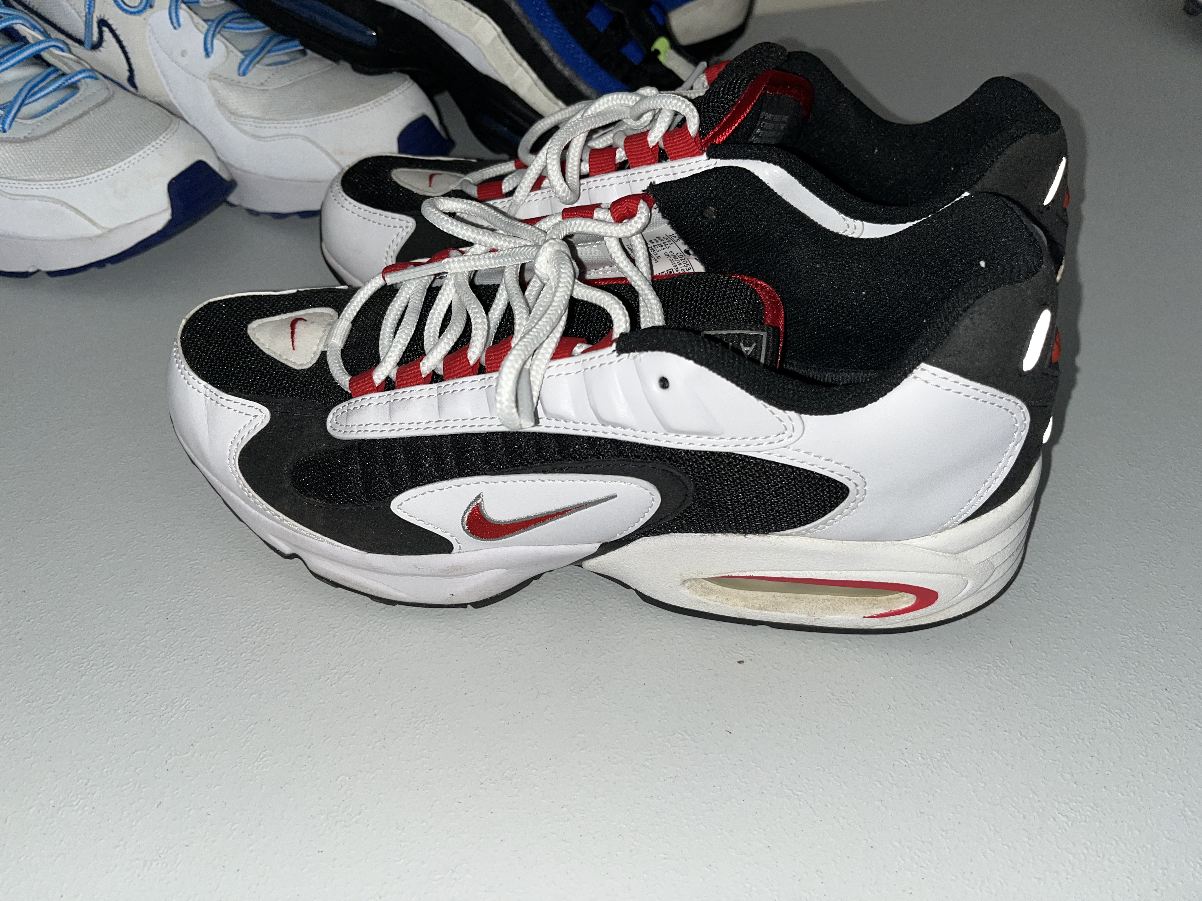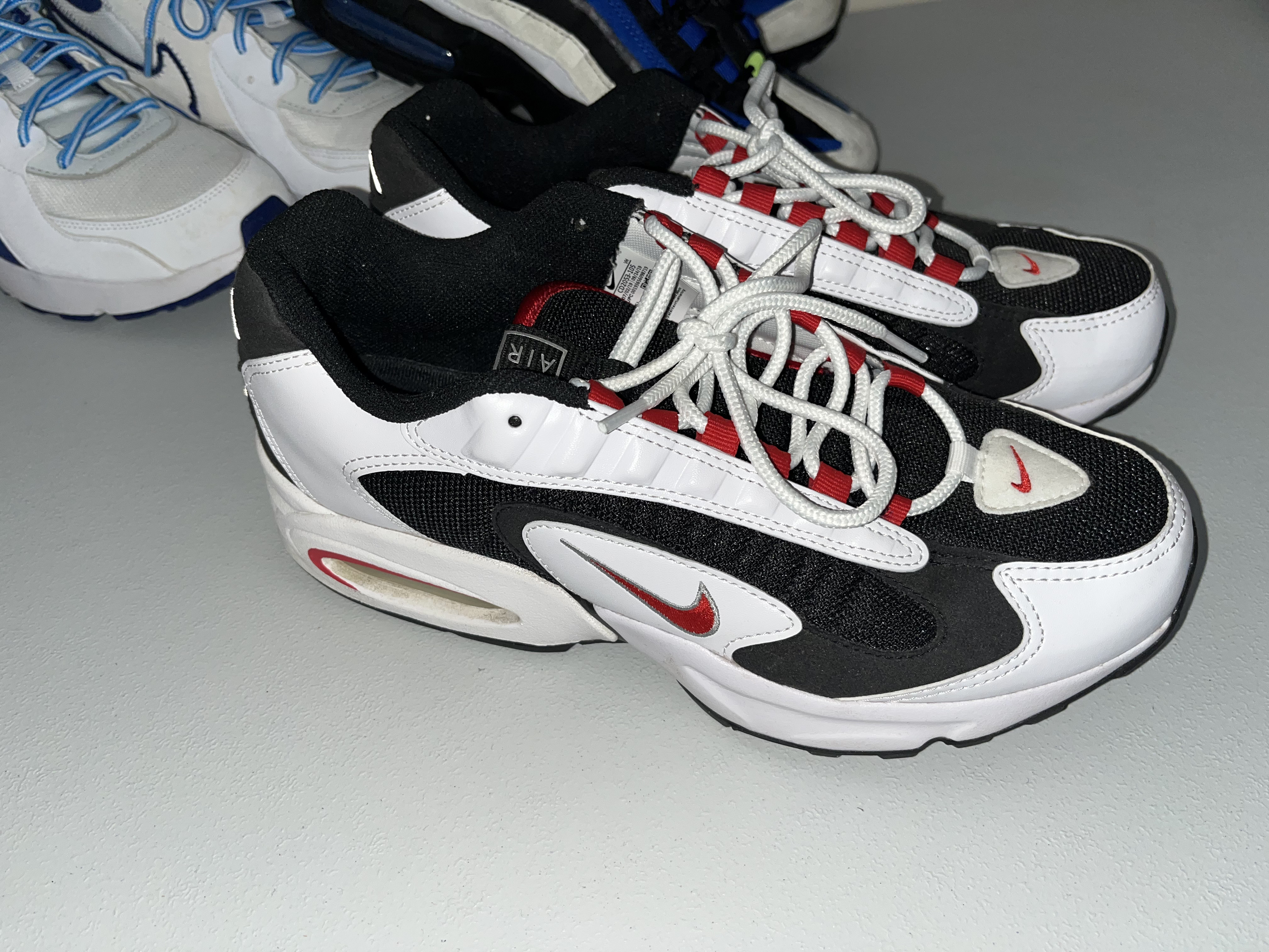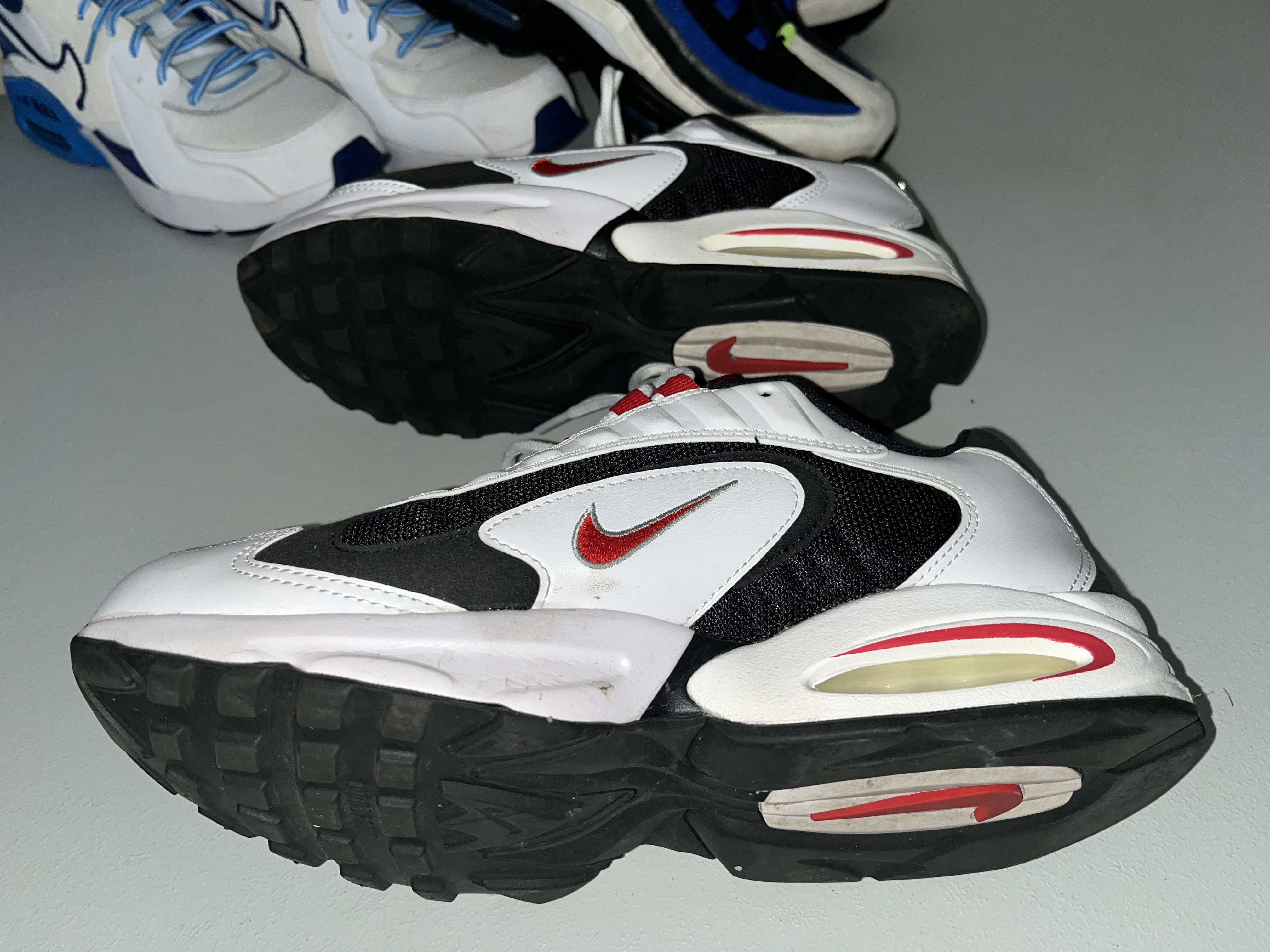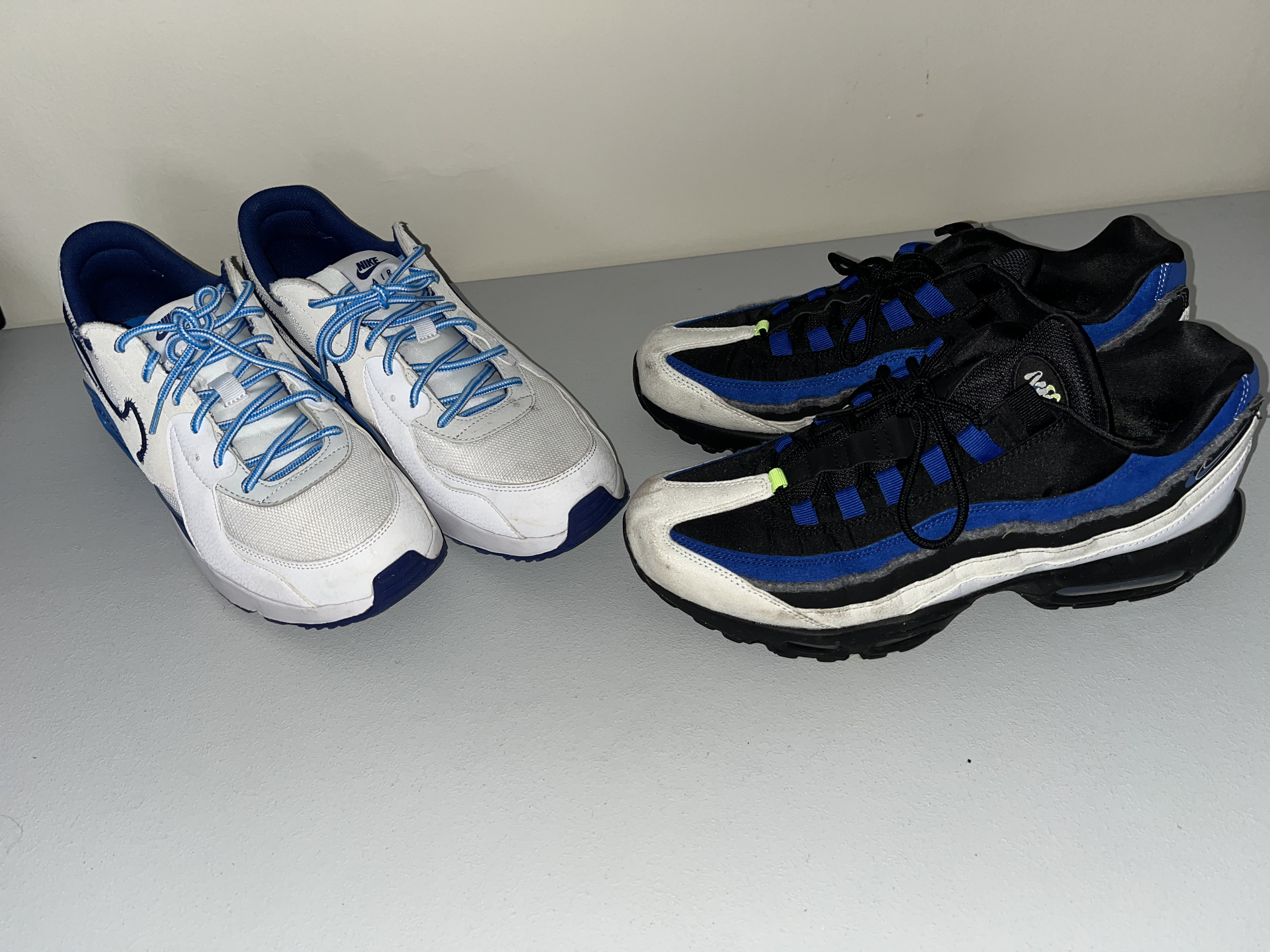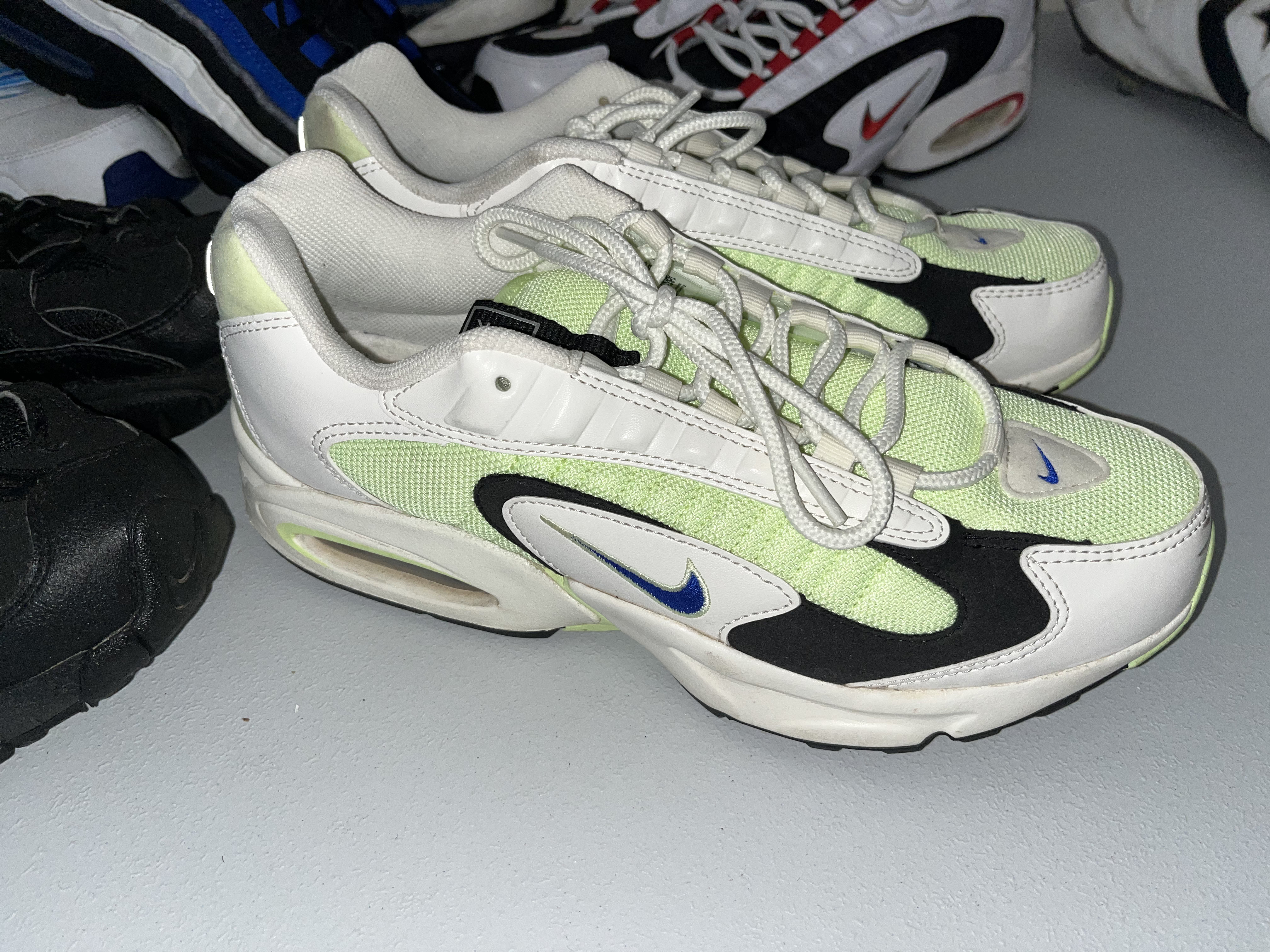Gently worn, in very good condition. A collection of five pairs of Nike athletic sneakers featuring various iconic silhouettes.