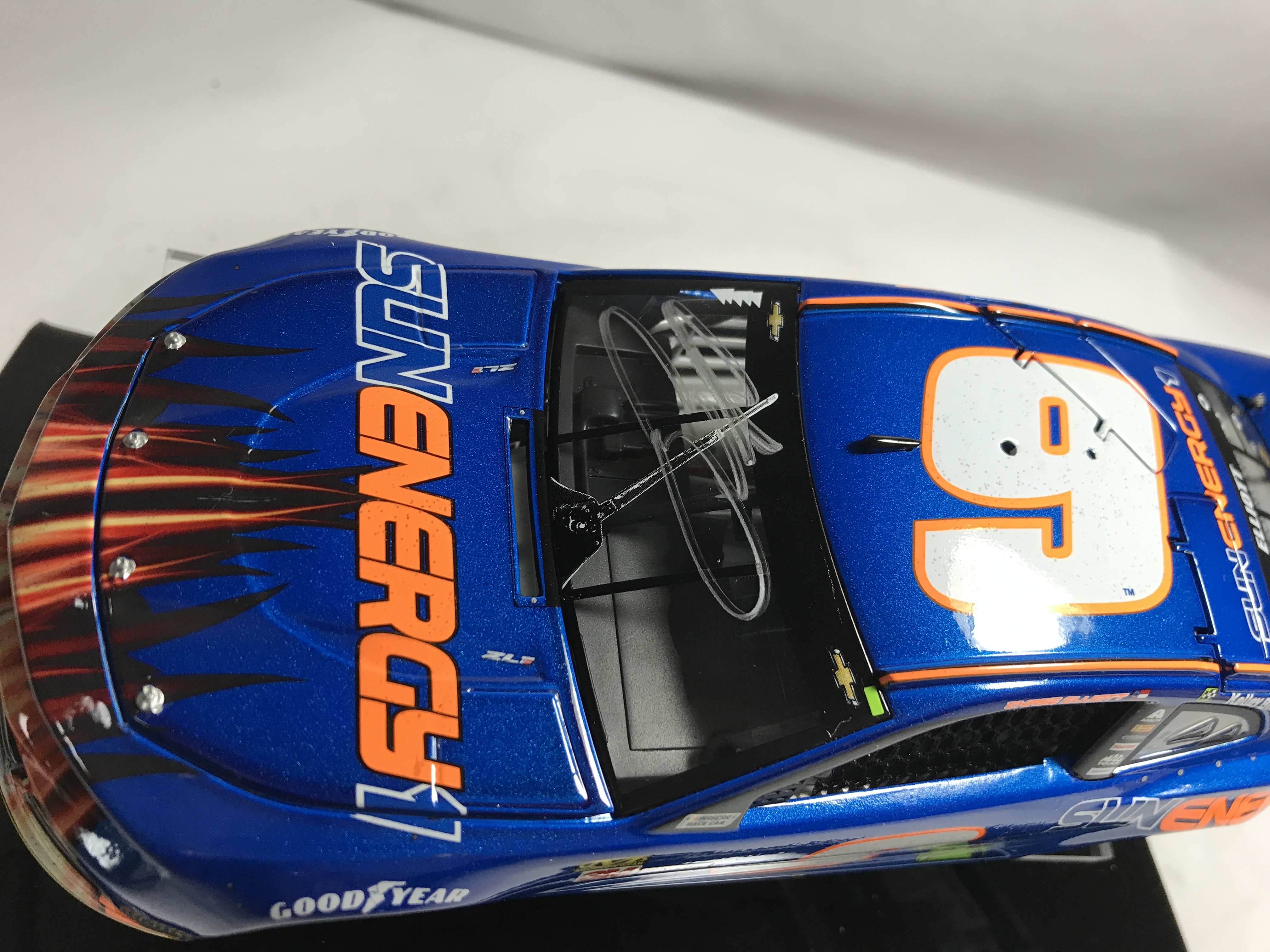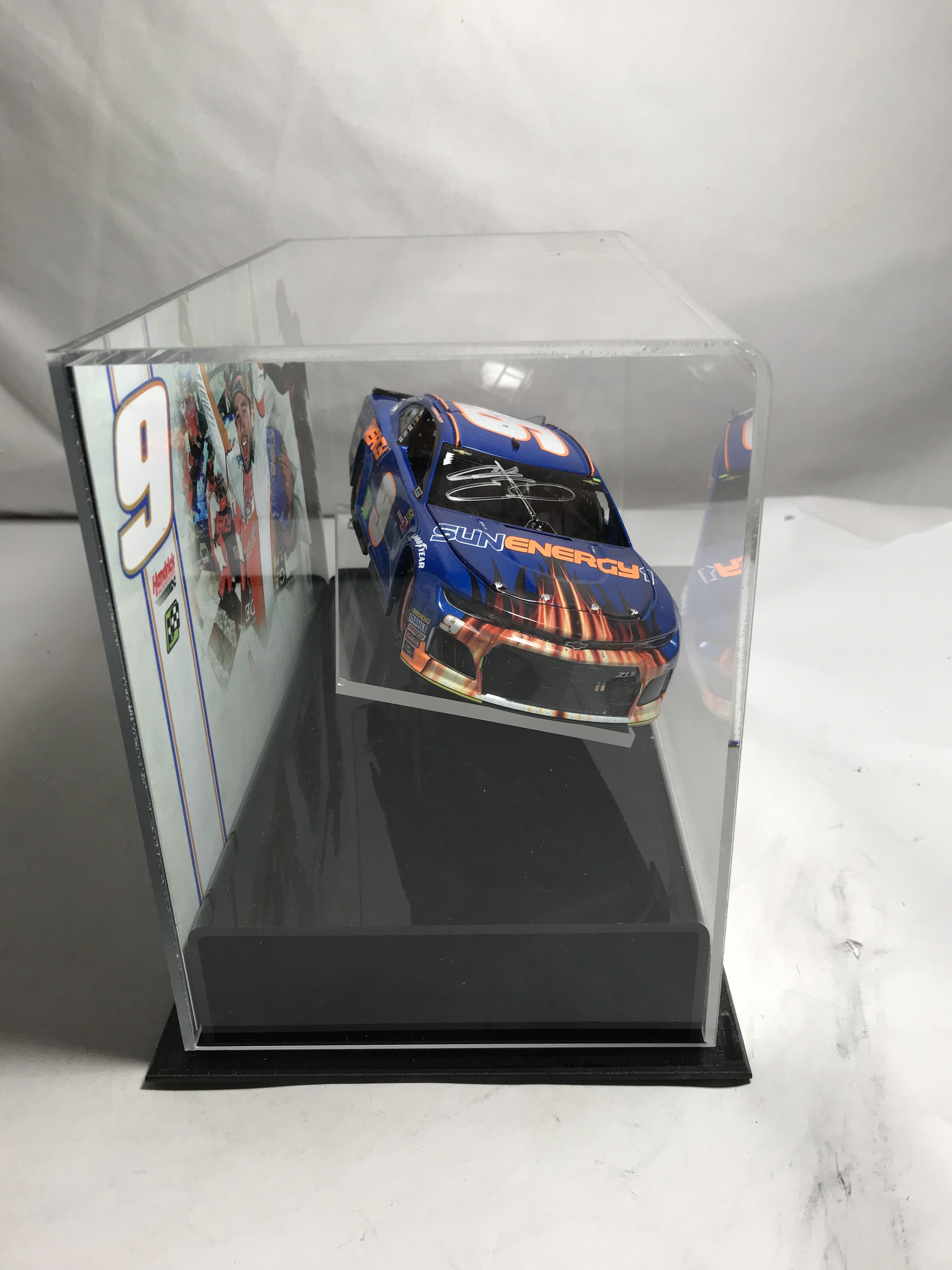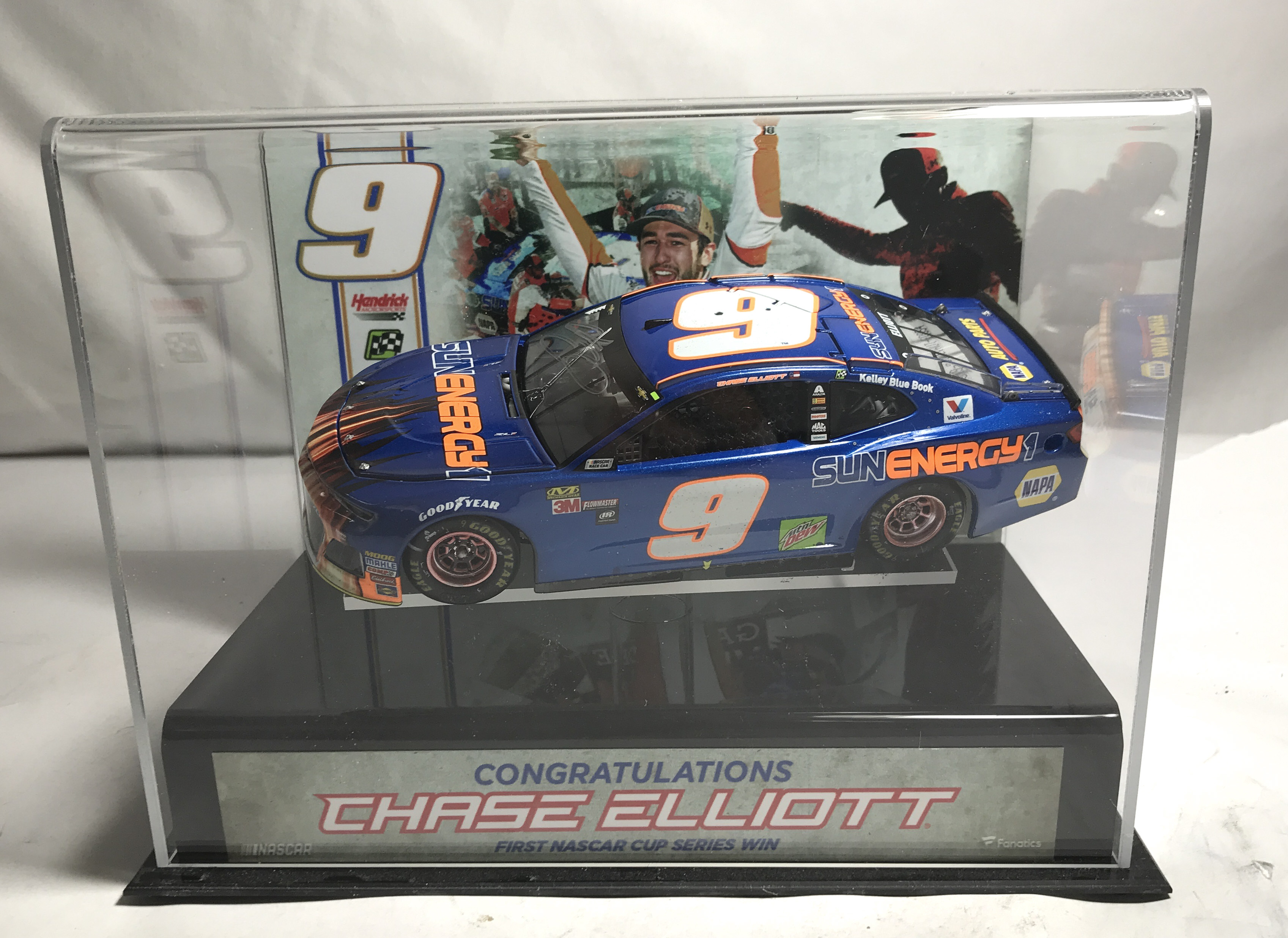 #9 SunEnergy 1 Blue Watkins Glen Win in shadowbox, measures 10 x 7 1/2 x 6 inches