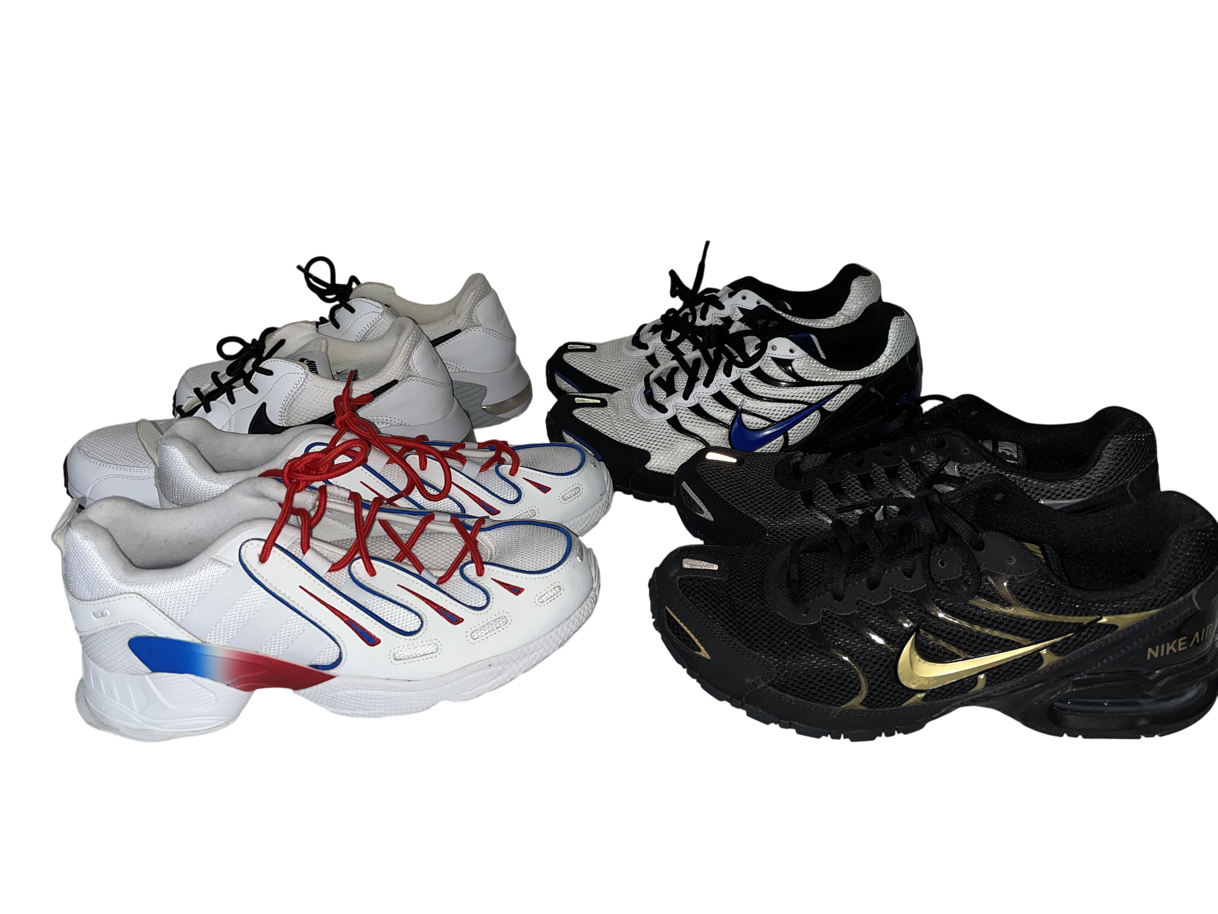This lot features a curated selection of four pairs of contemporary athletic sneakers from premier sportswear brands Adidas and Nike.