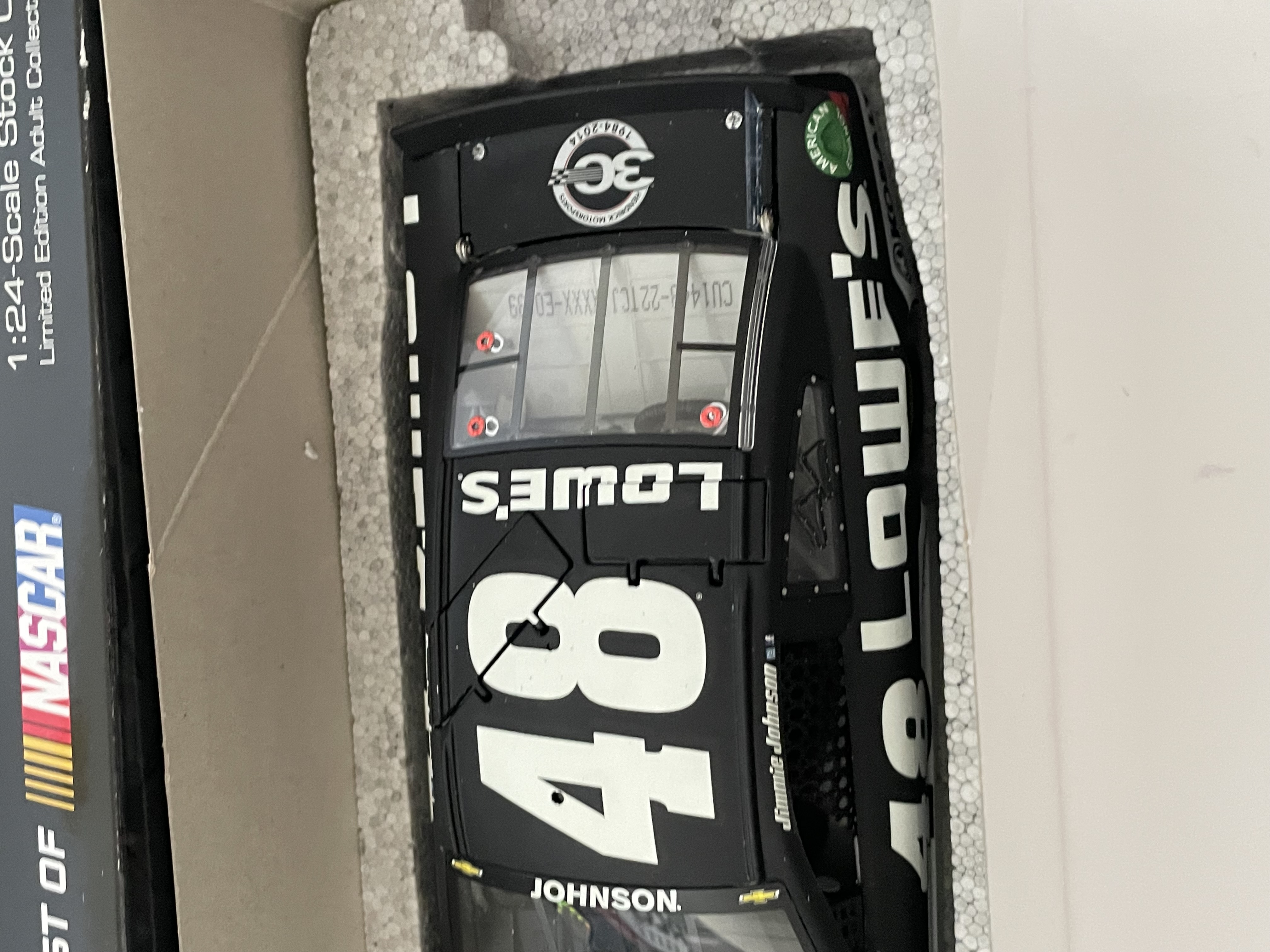 This lot features a 1:24 scale die-cast model of Jimmie Johnson’s #48 Lowe’s Test Car for the 2014 NASCAR season. Produced by Lionel Racing under the Racing Collectables Club of America (RCCA) Elite series, the vehicle is a 2014 Chevrolet SS.