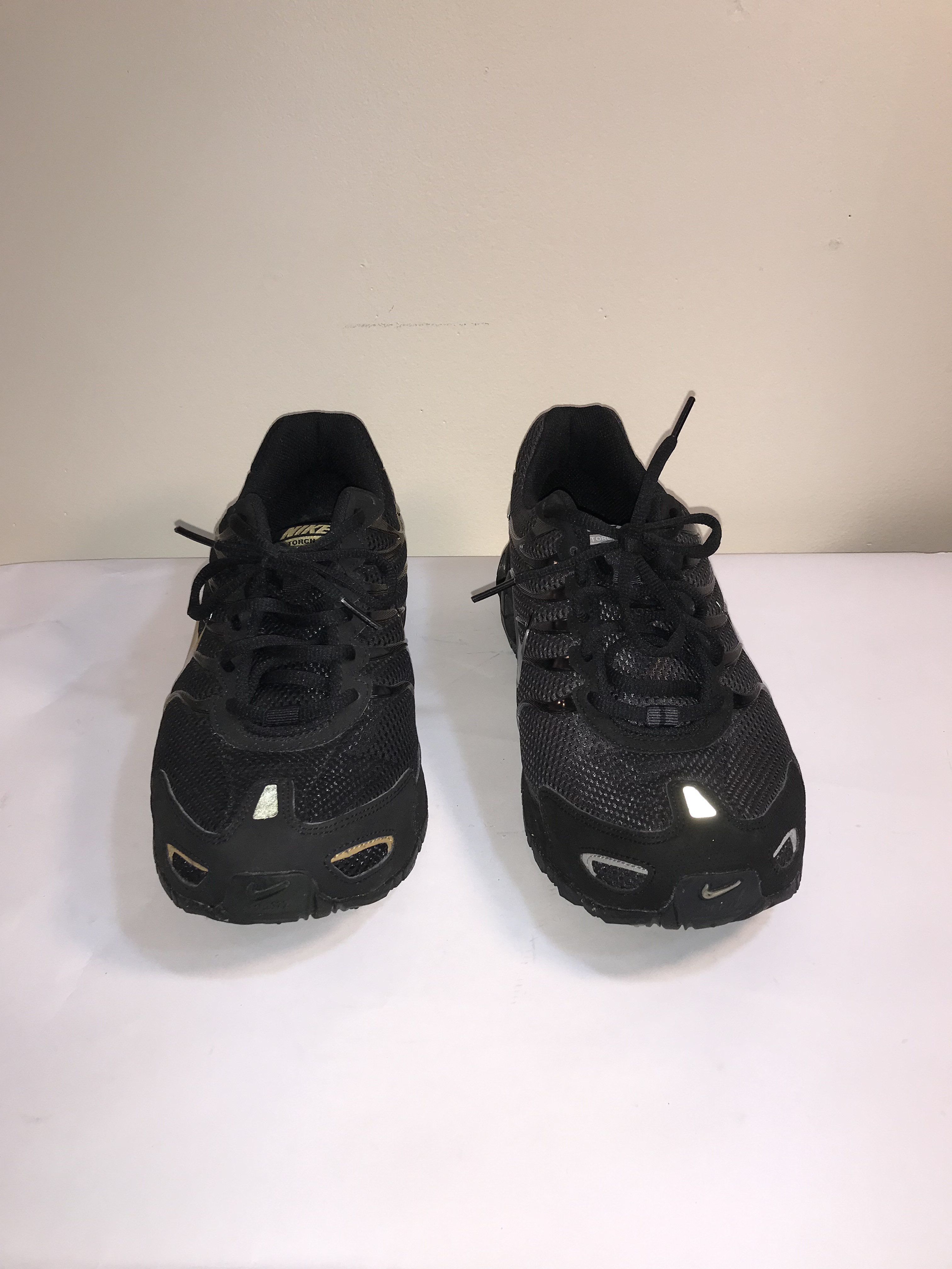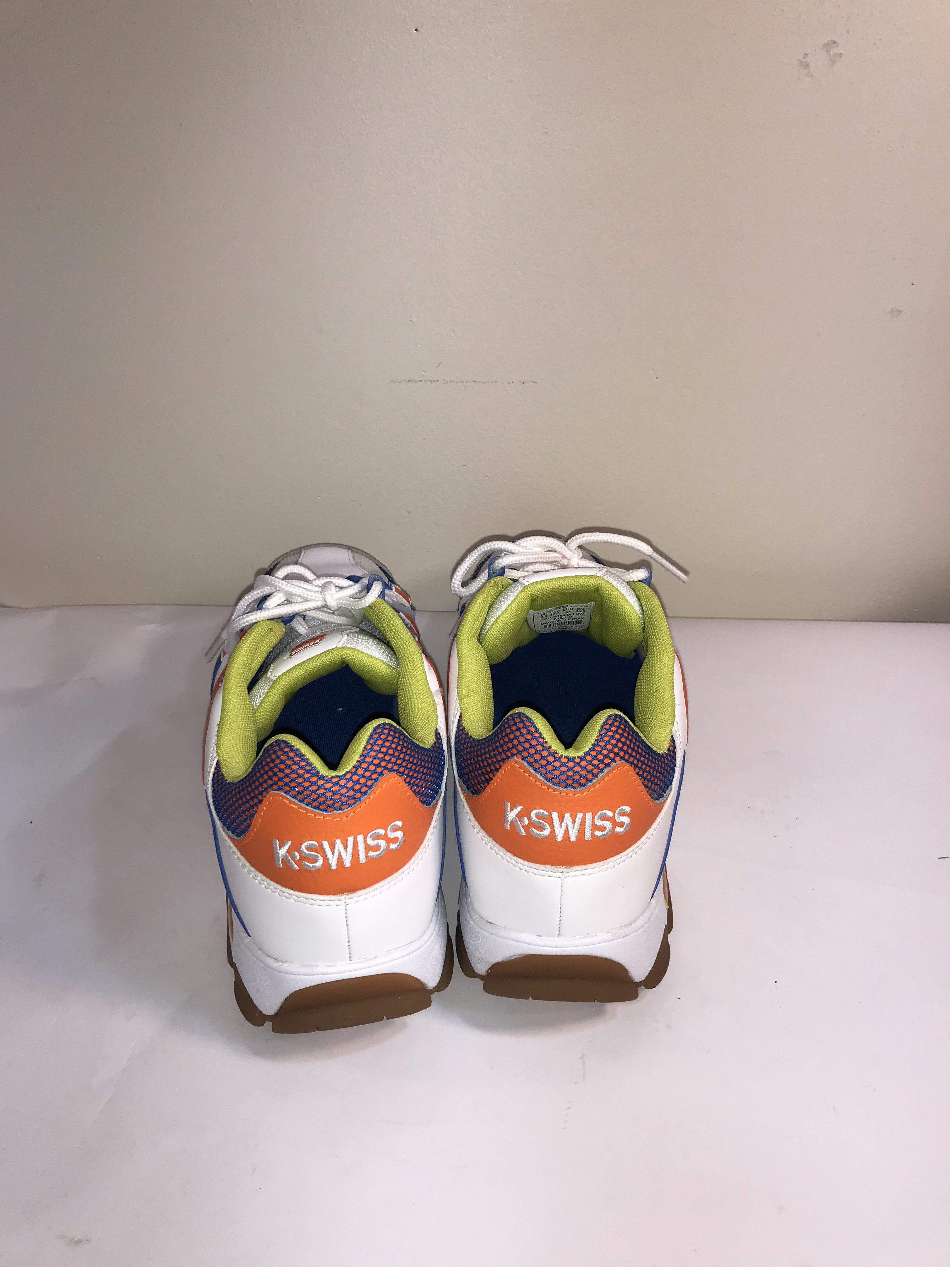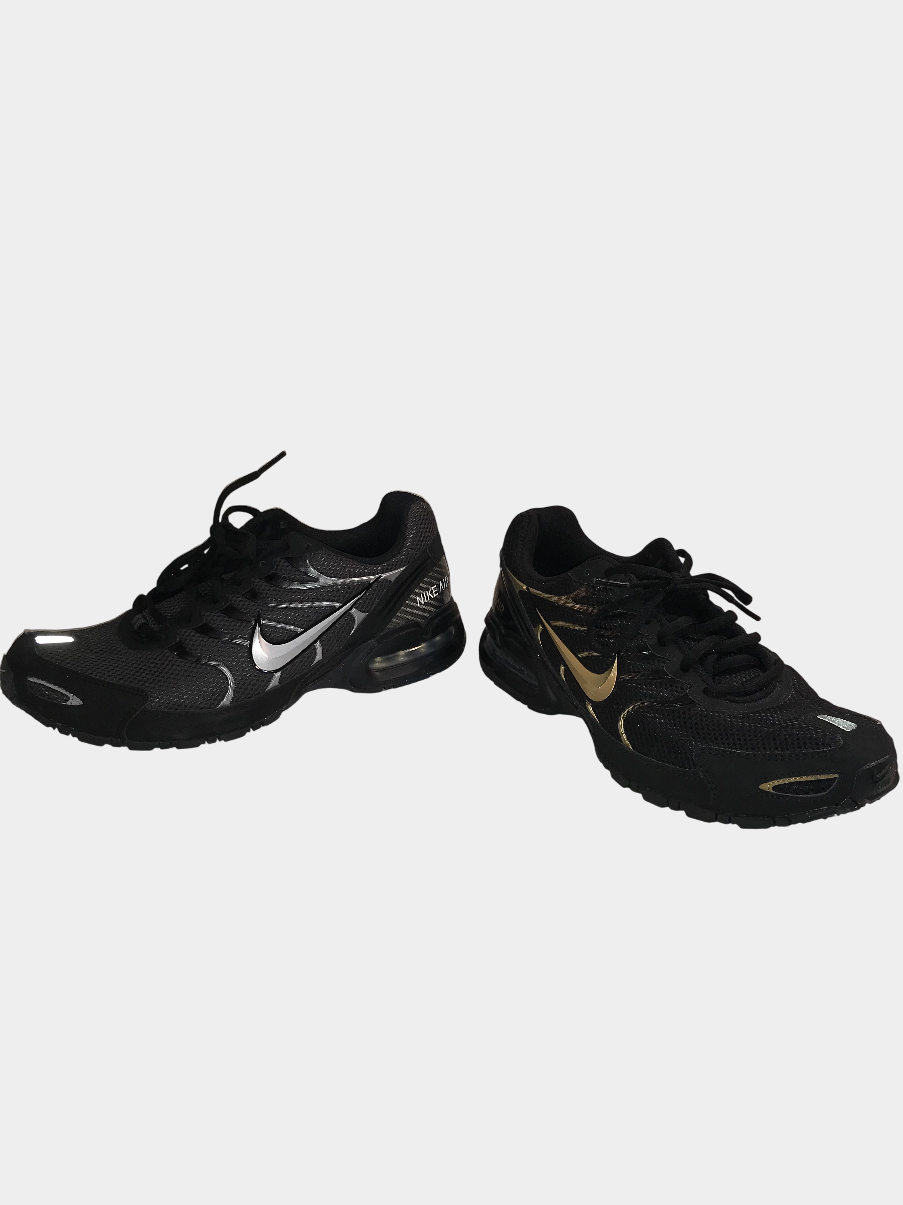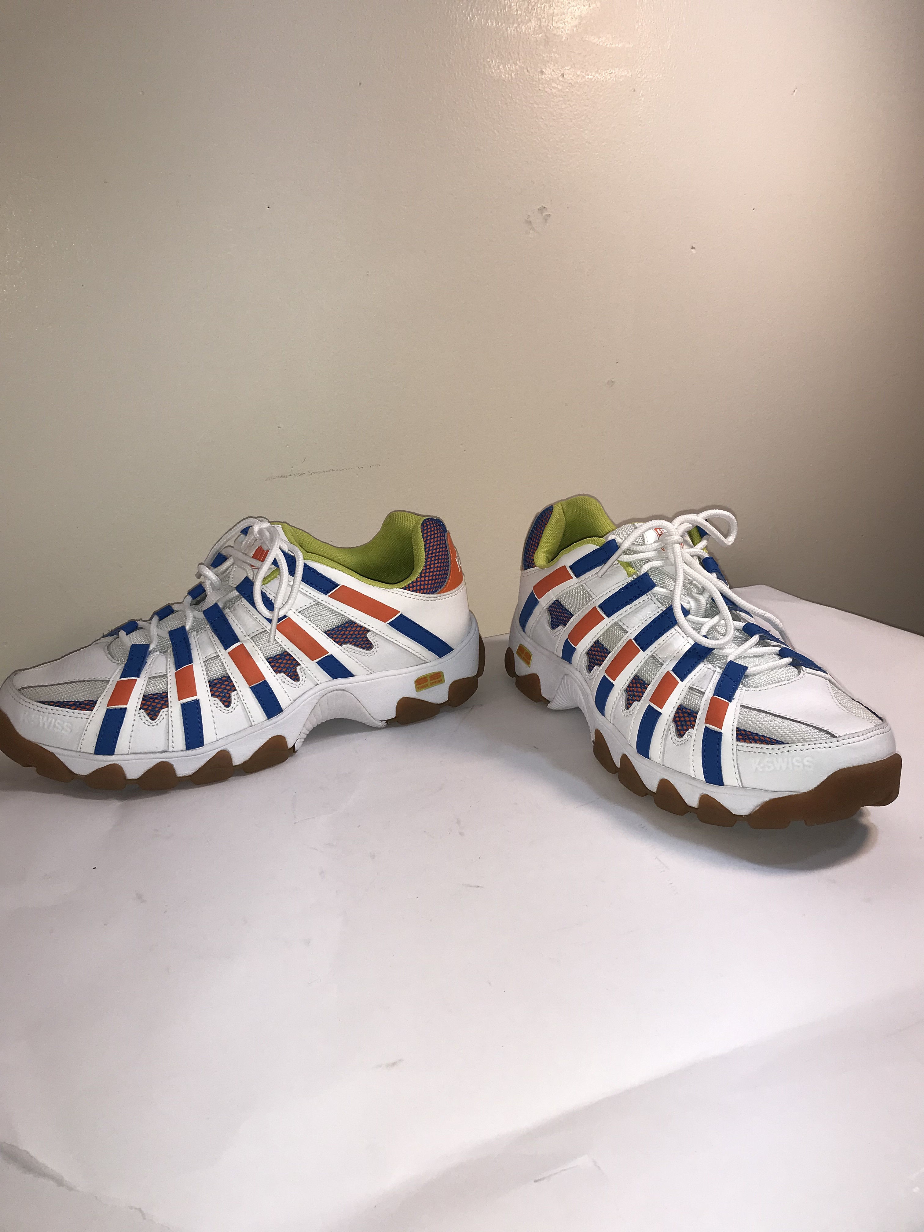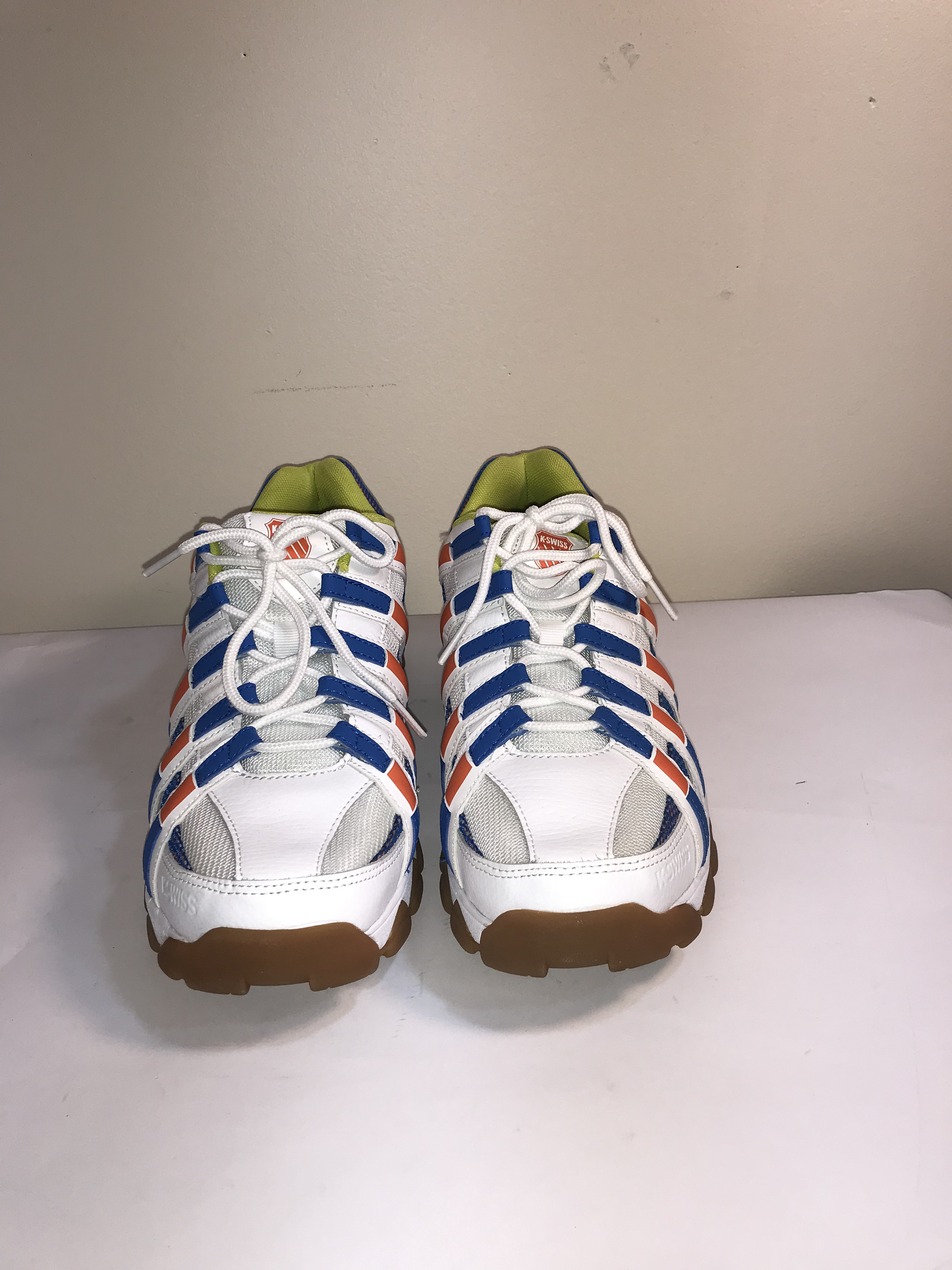 Pair of Nike Air Max Torch 4 performance running sneakers. Both shoes are size 10.5 but represent two distinct colorways of the same model. Also includes pair of black & white Sketchers and Multi-color K-Swiss Shoes. Gently used (if worn at all)