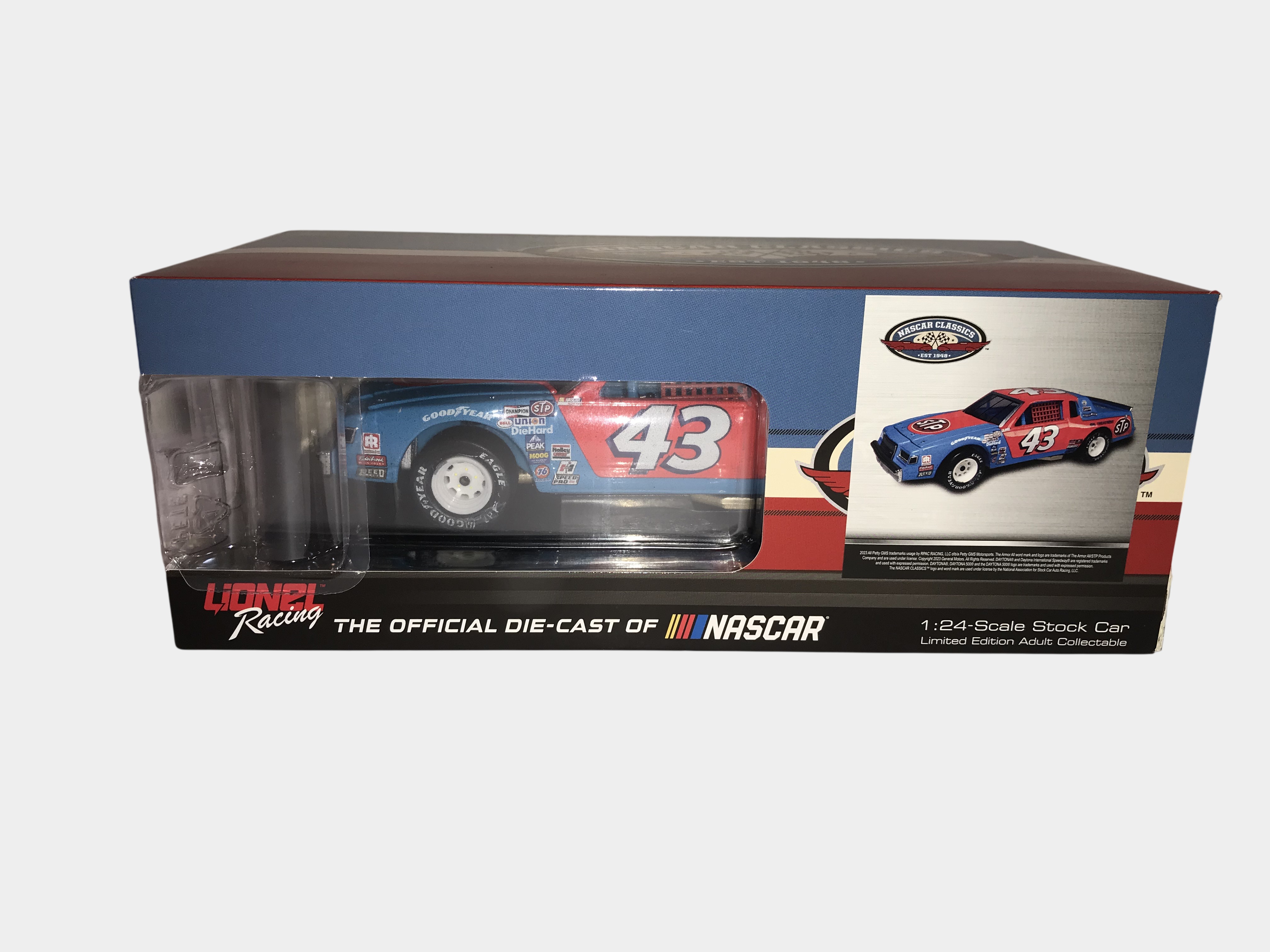1:24-scale die-cast metal replica of Richard Petty’s number 43 STP 1981 Buick, Lionel Racing Action Racing Collectables, Limited Edition 1 of 780, Authentication is provided by a square holographic NASCAR sticker on the box side. Labeled # 91/780, looks like it was never opened!