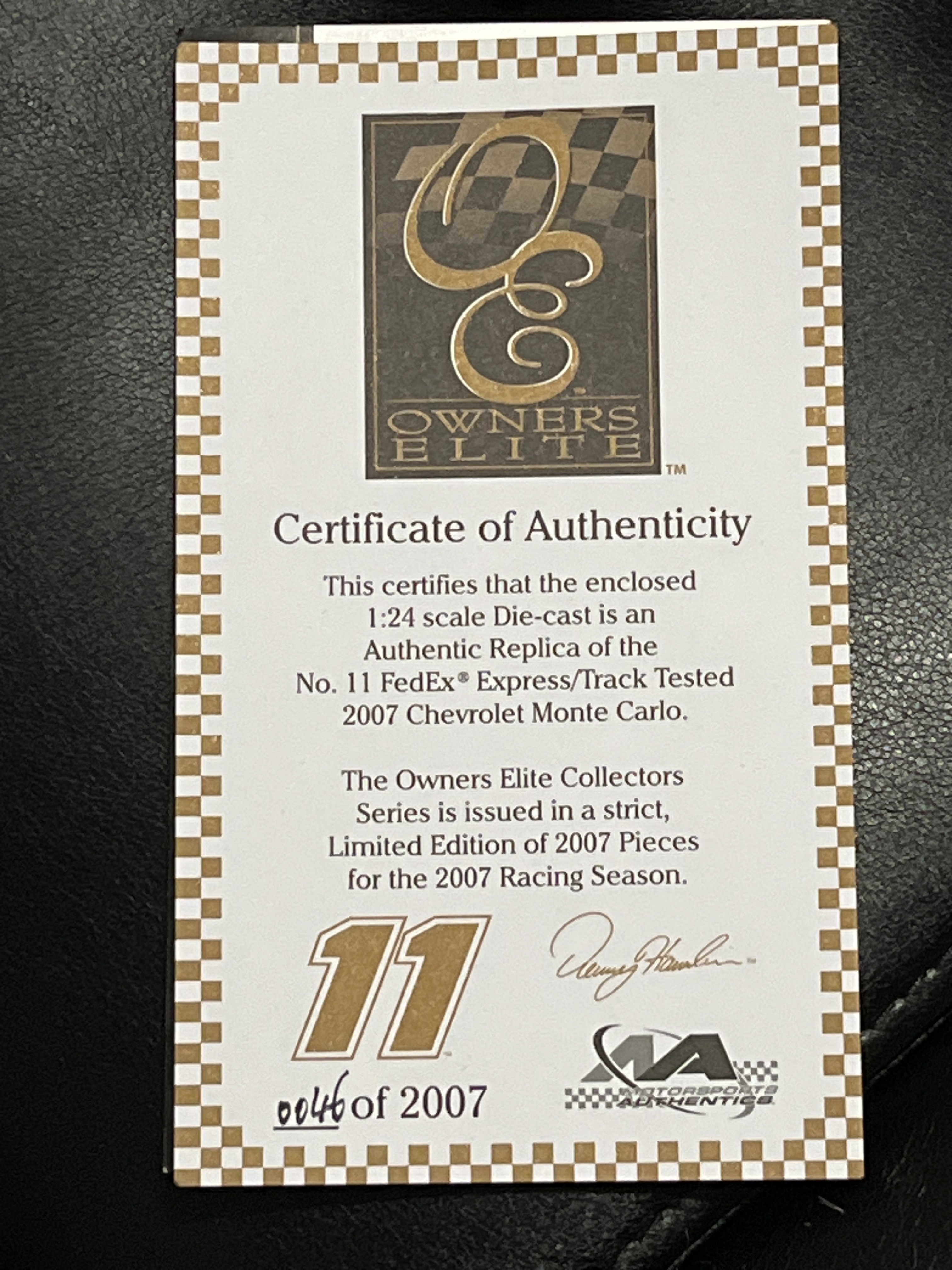 #11 FedEx/track tested/owners elite, 1:24 die cast in original box, limited edition 0046 / 2007