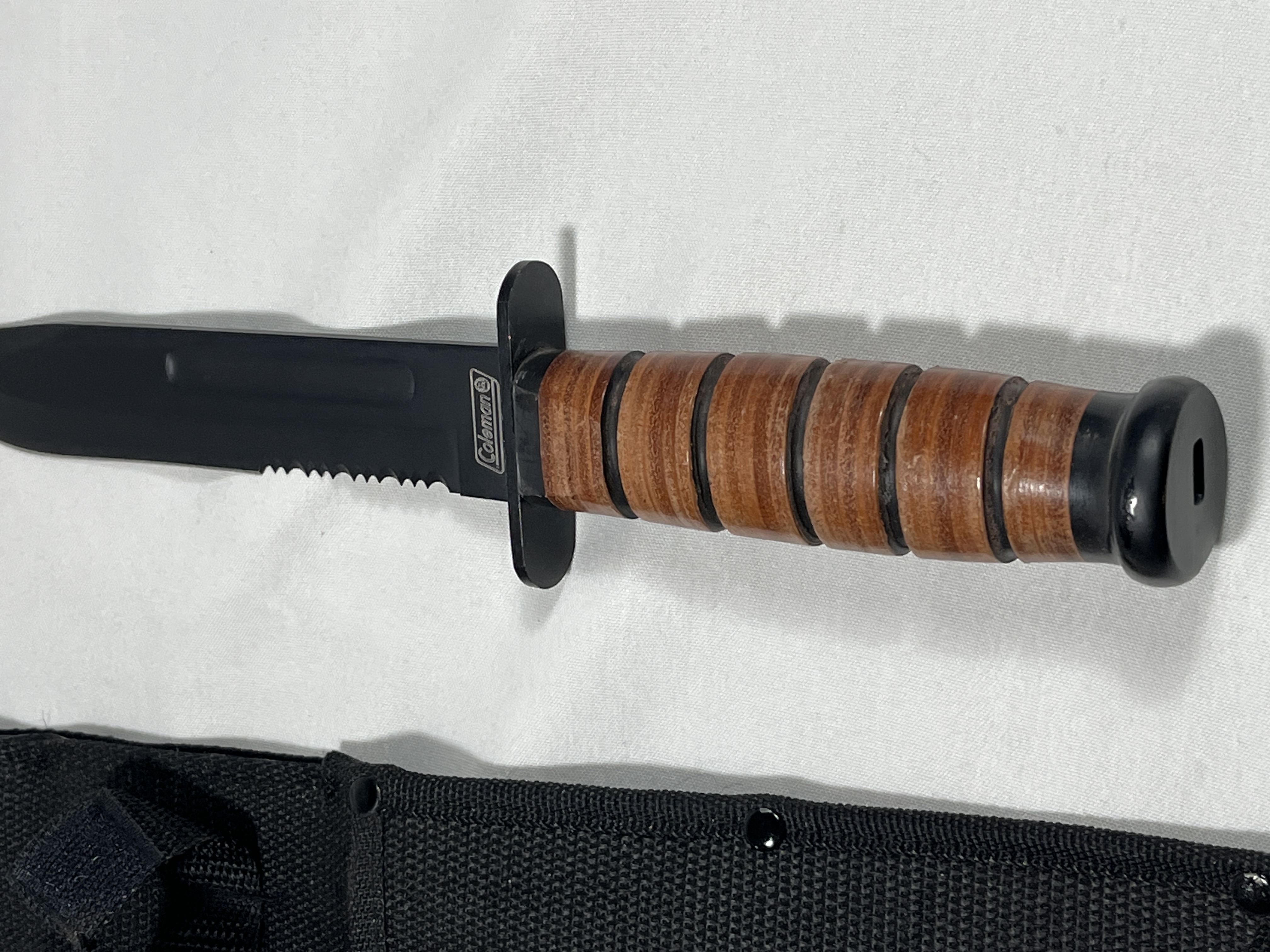 Coleman fixed-blade fighting knife modeled after the USMC Mark 2 pattern, contemporary production. Blade length: 7 inches.