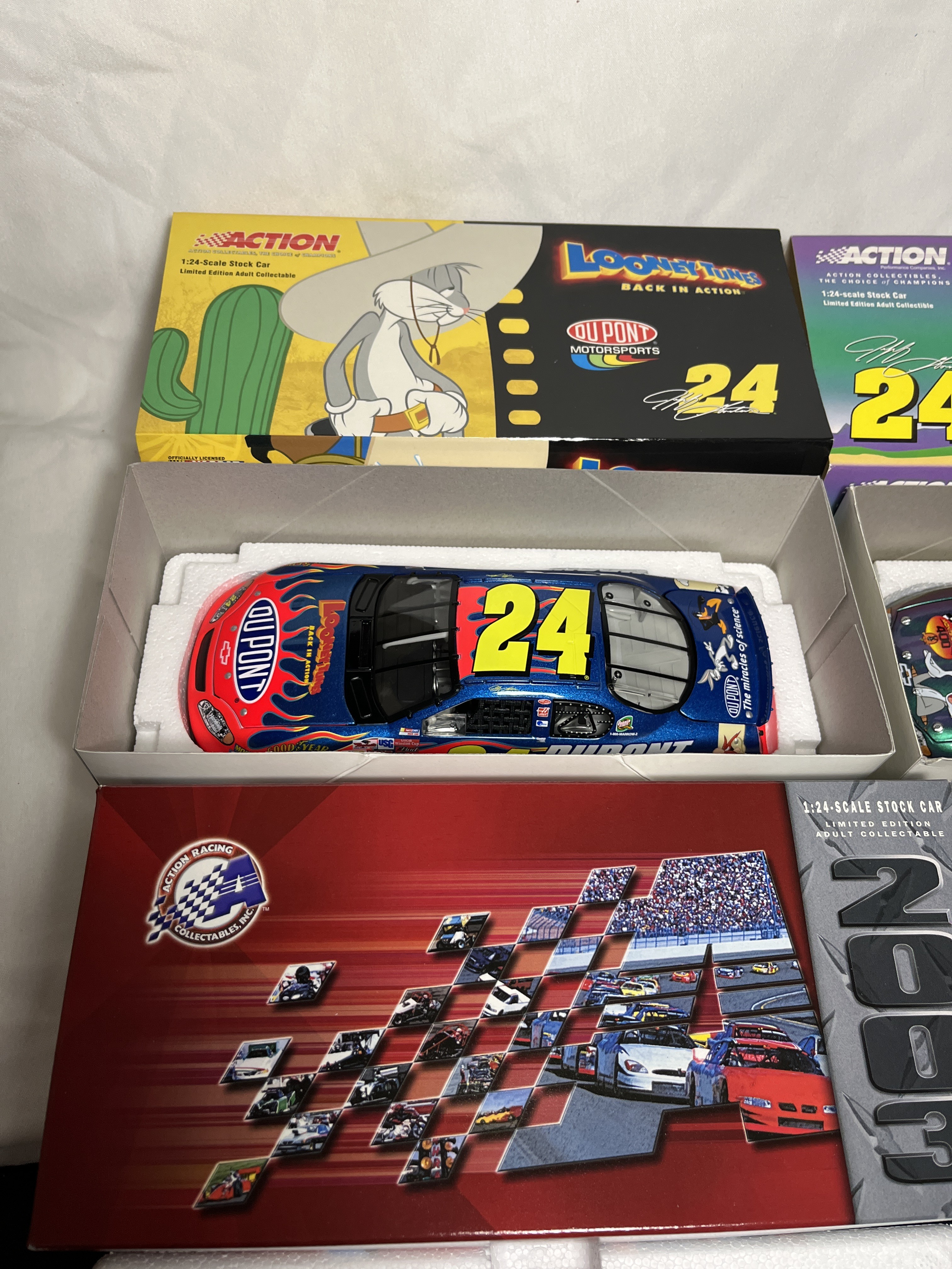 Diecast cars in original packaging, 1:24 scale