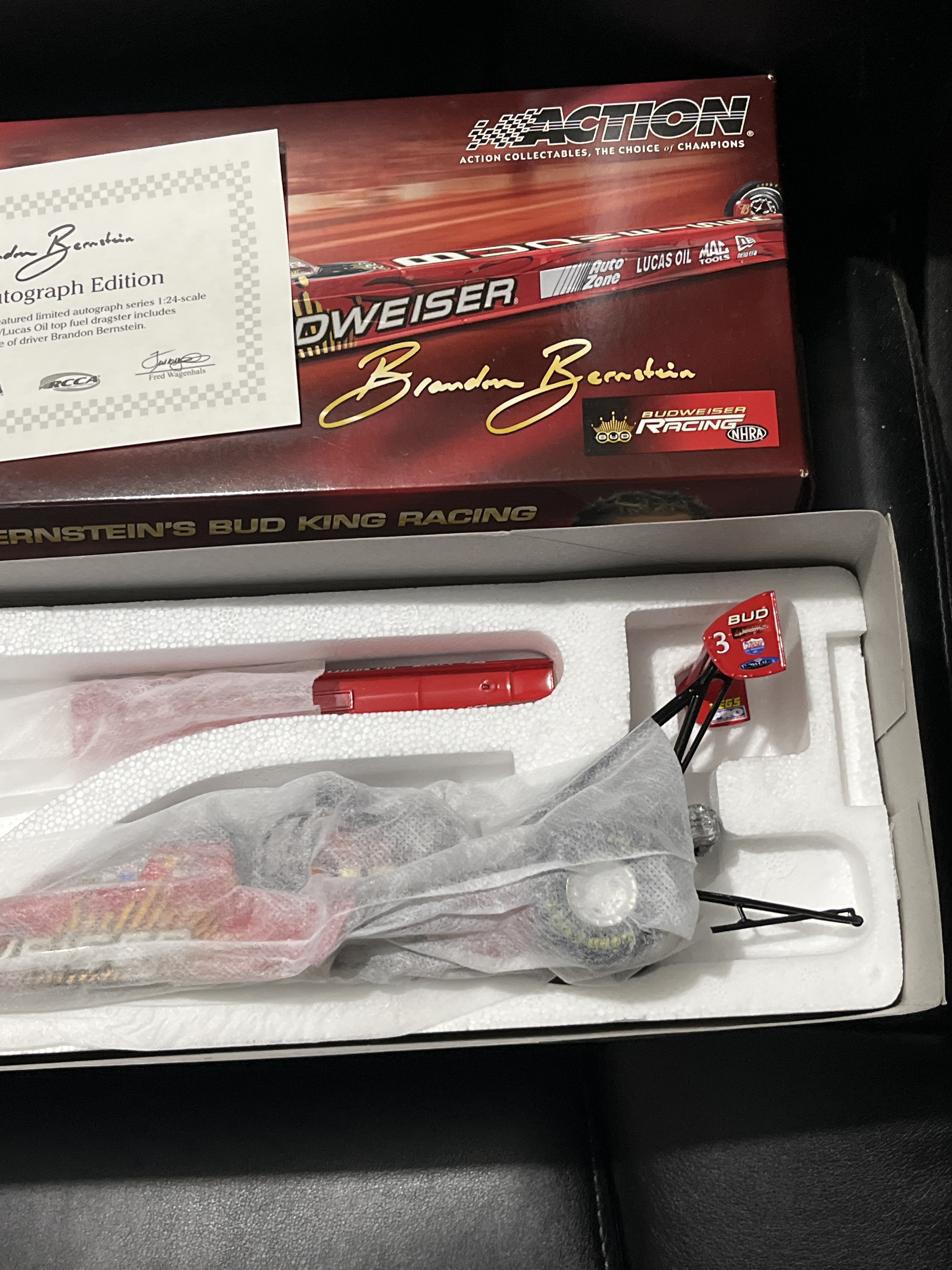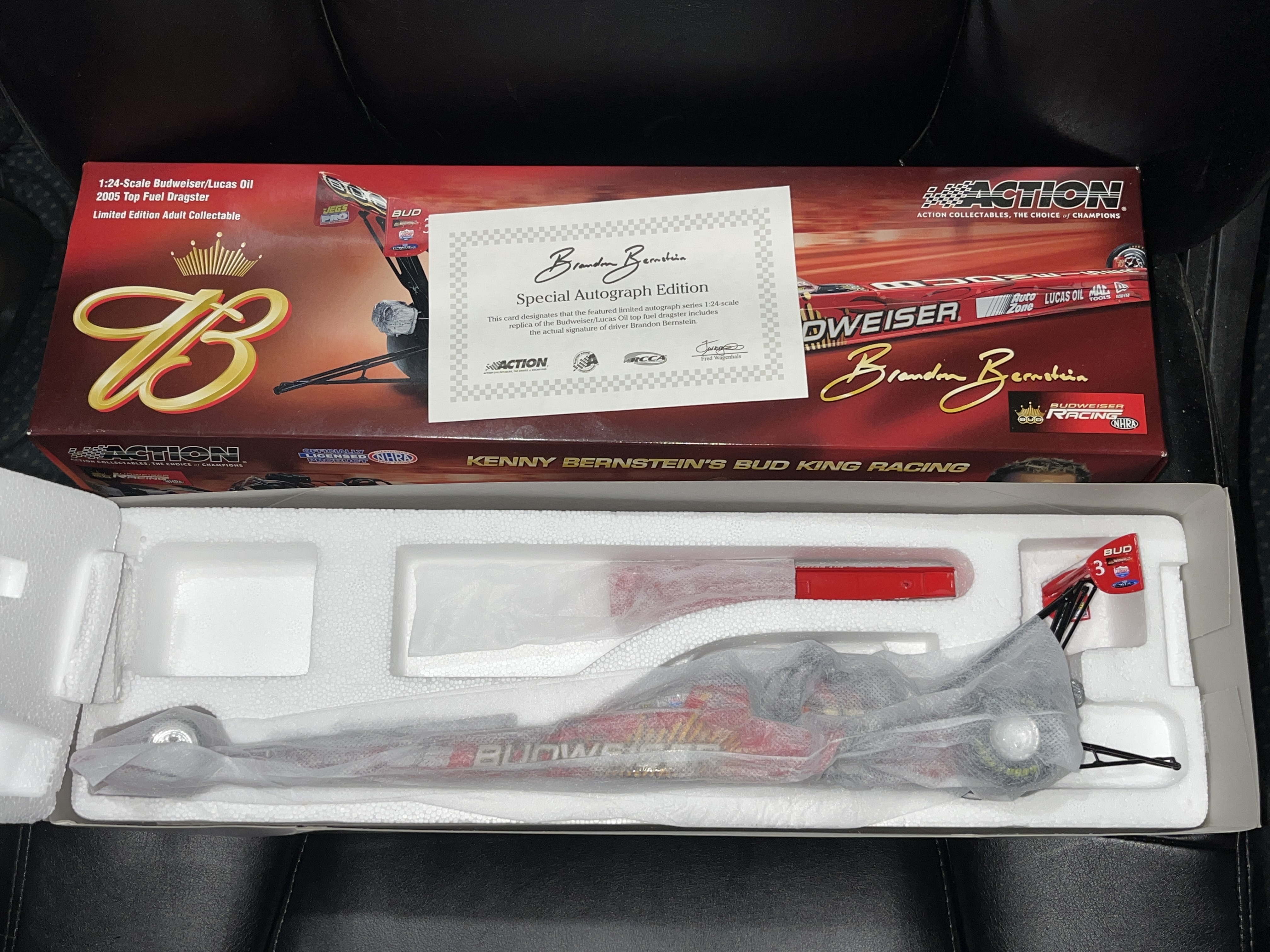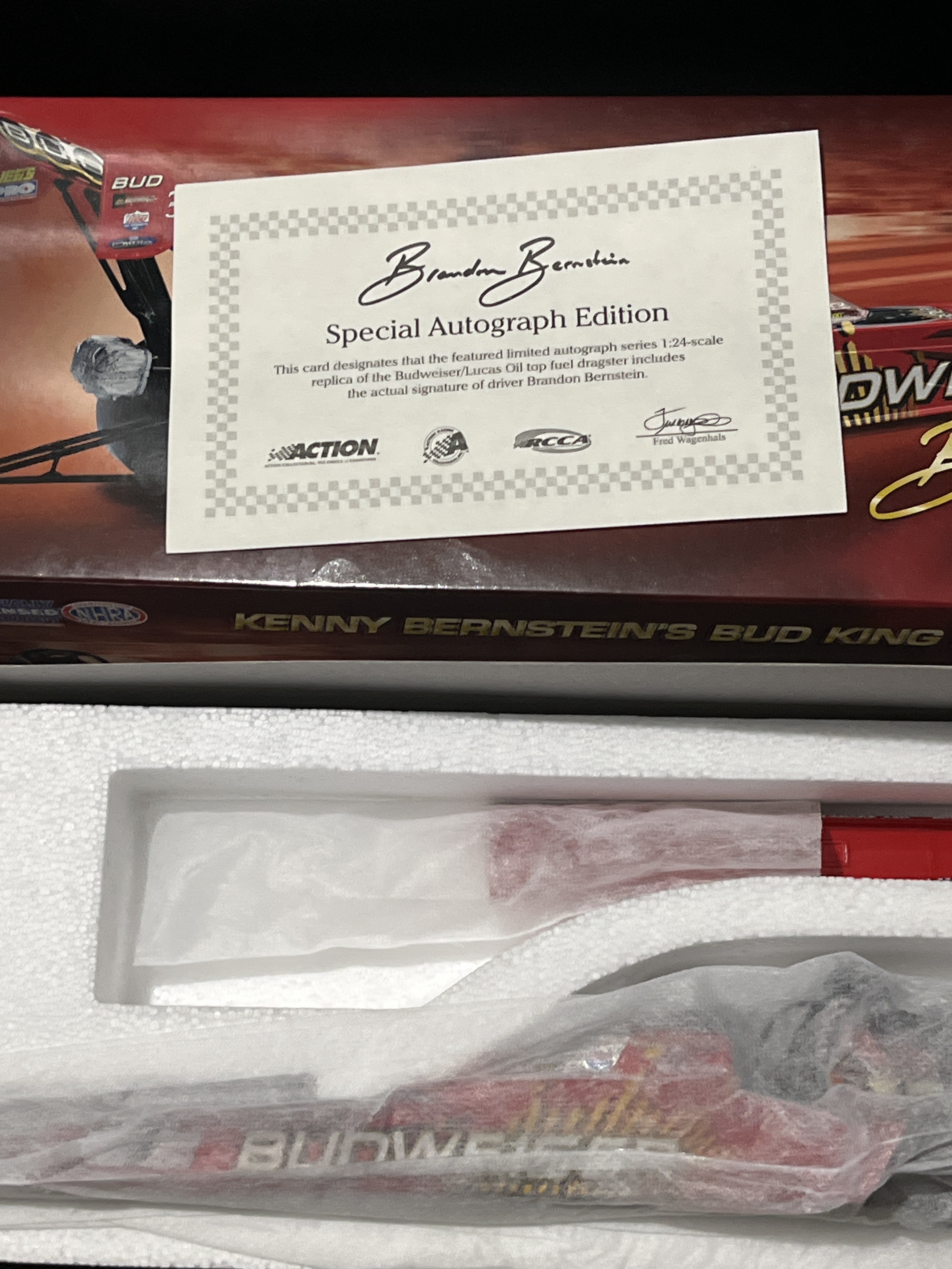 In Original packaging, 1:24 Die-cast Drag Racer in very good condition, looks to have never been taken out of package