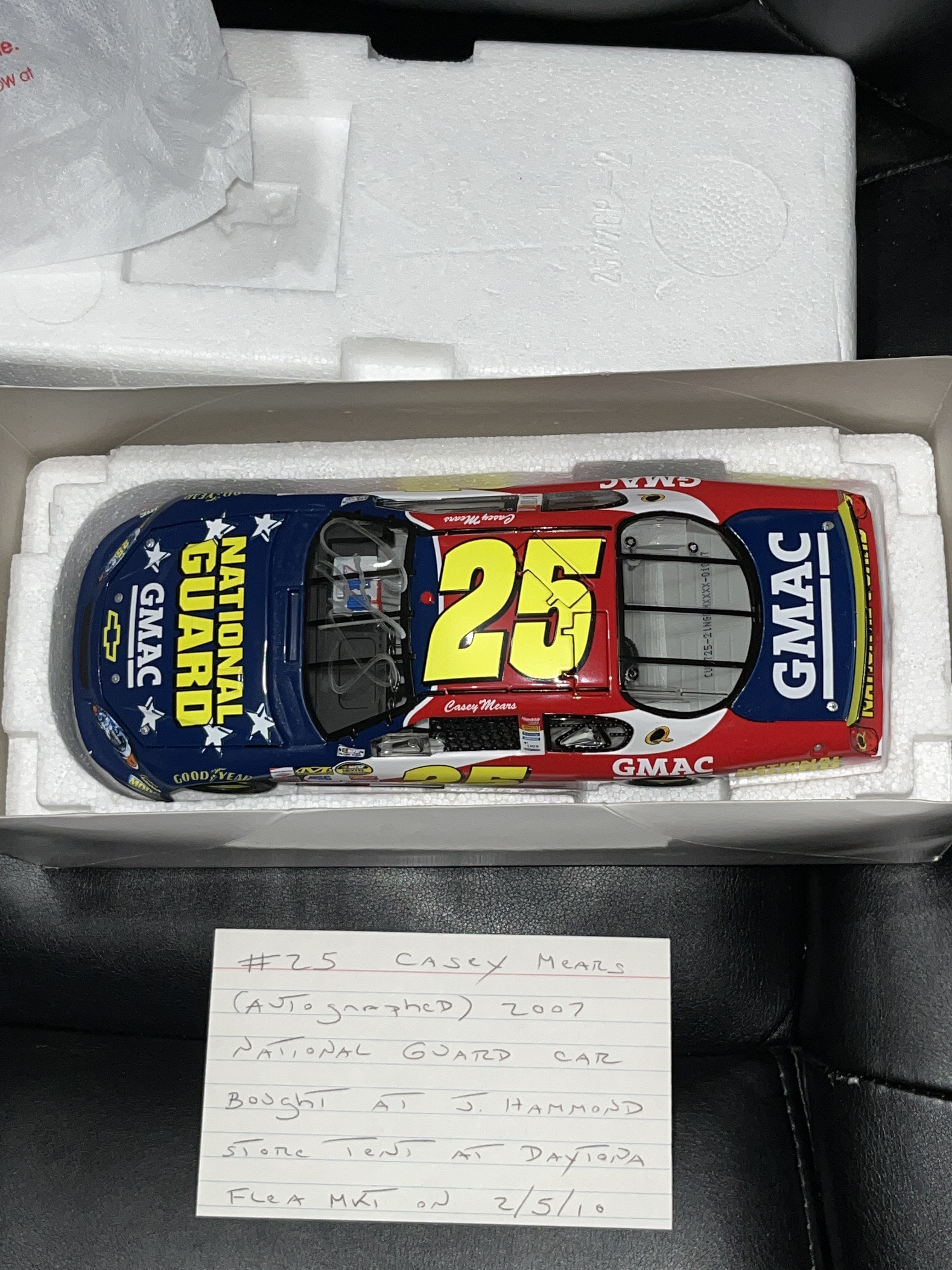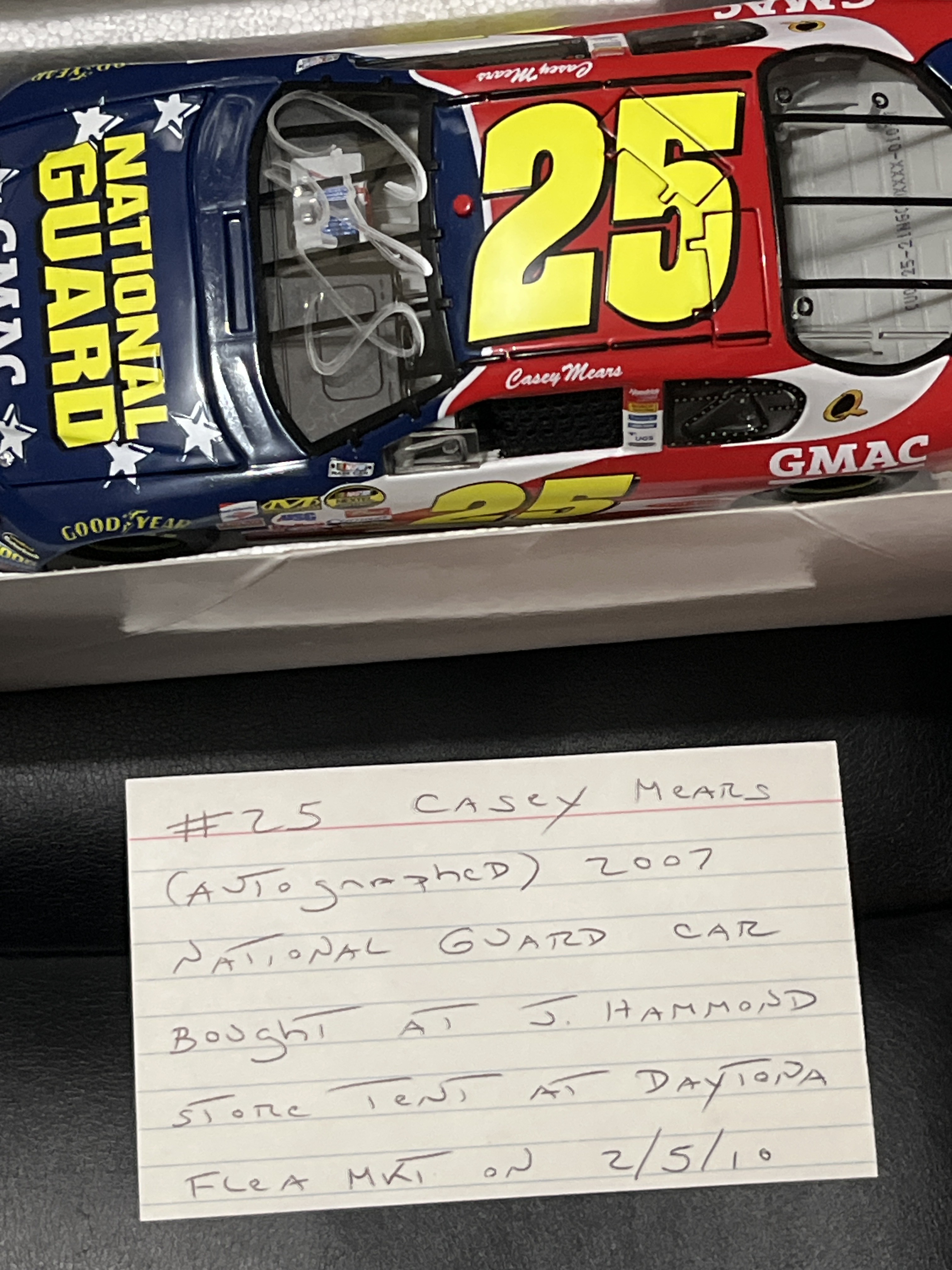 1:24 die cast in original box, #25 National guard/Limited edition, Card inside box states that this die-cast was bought at J Hammond store tent at Daytona Flea Market on 2/5/10.